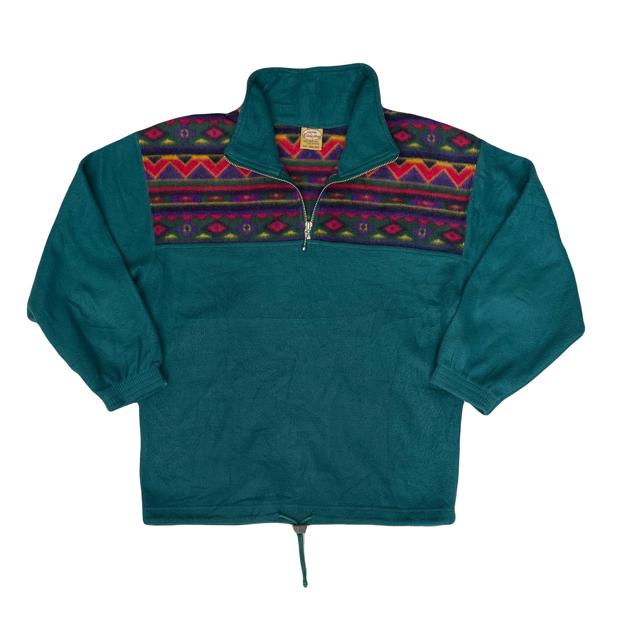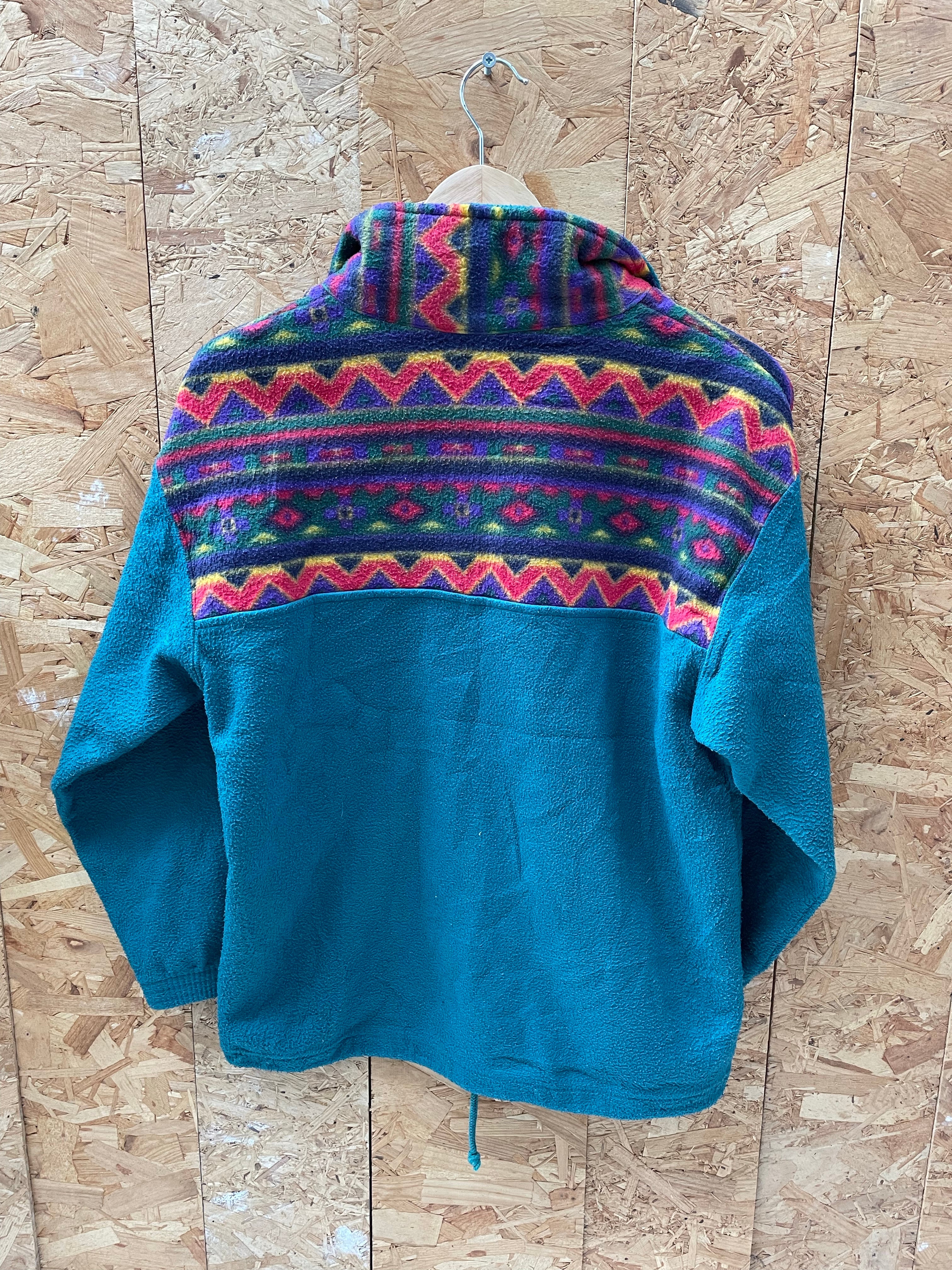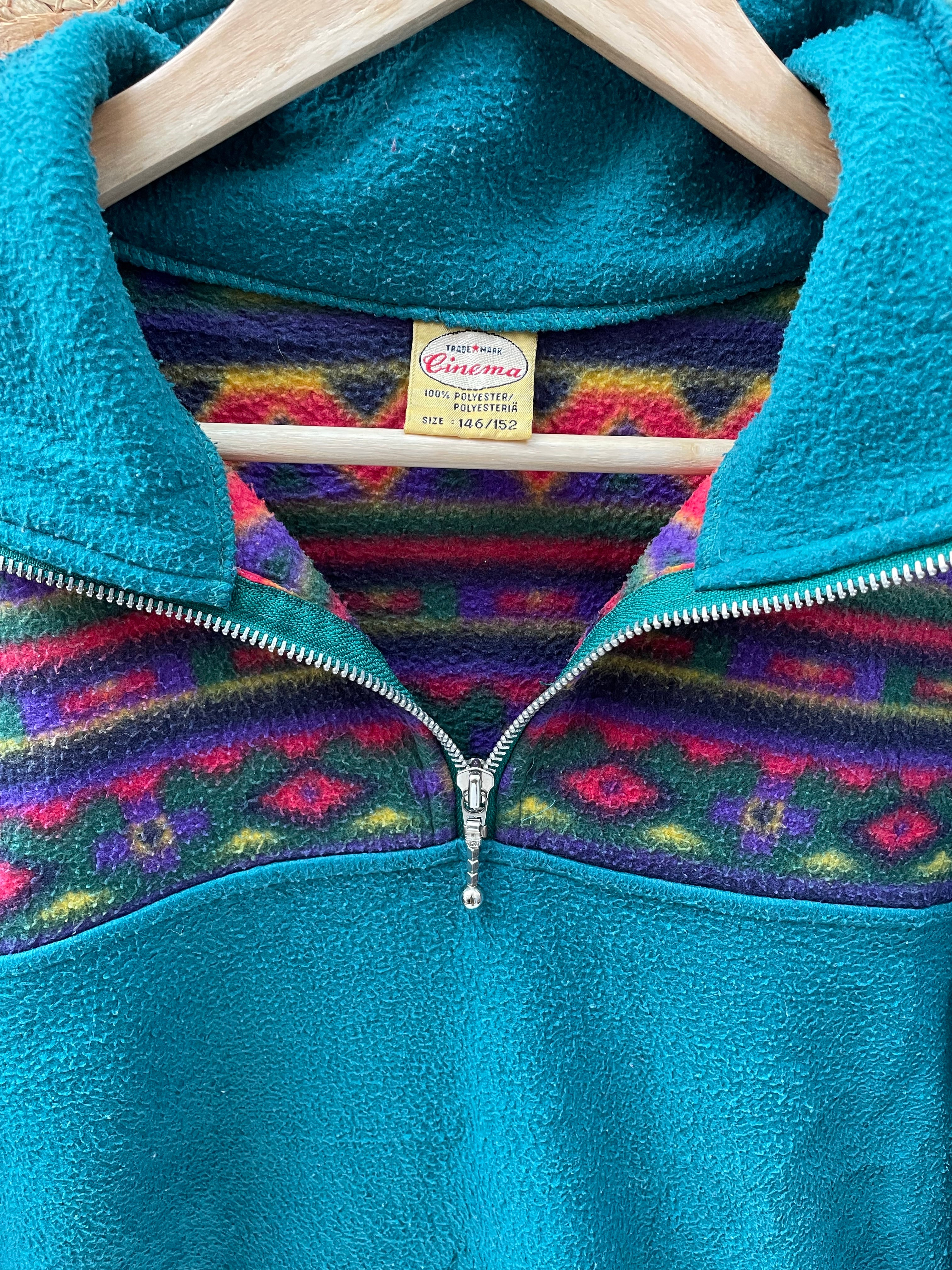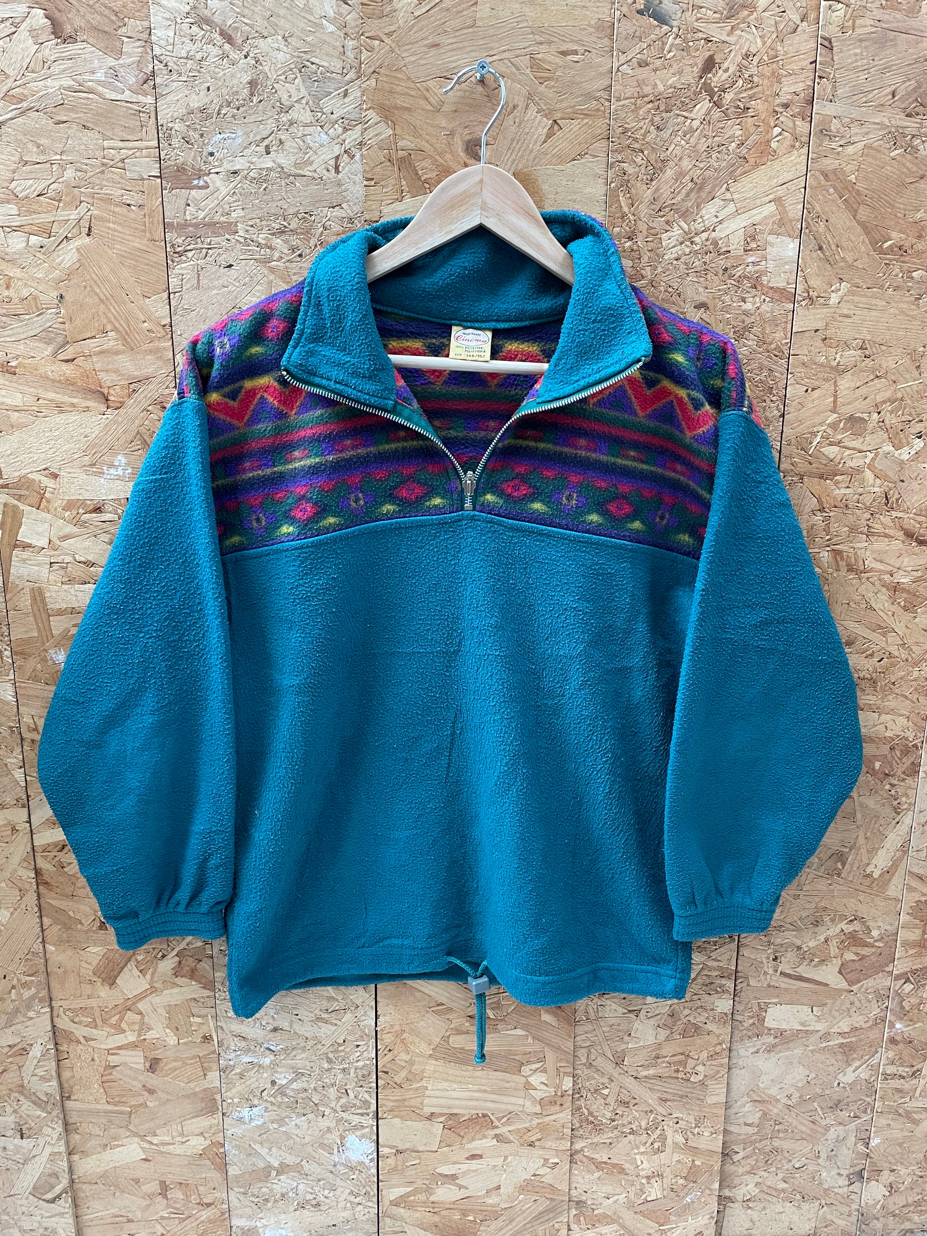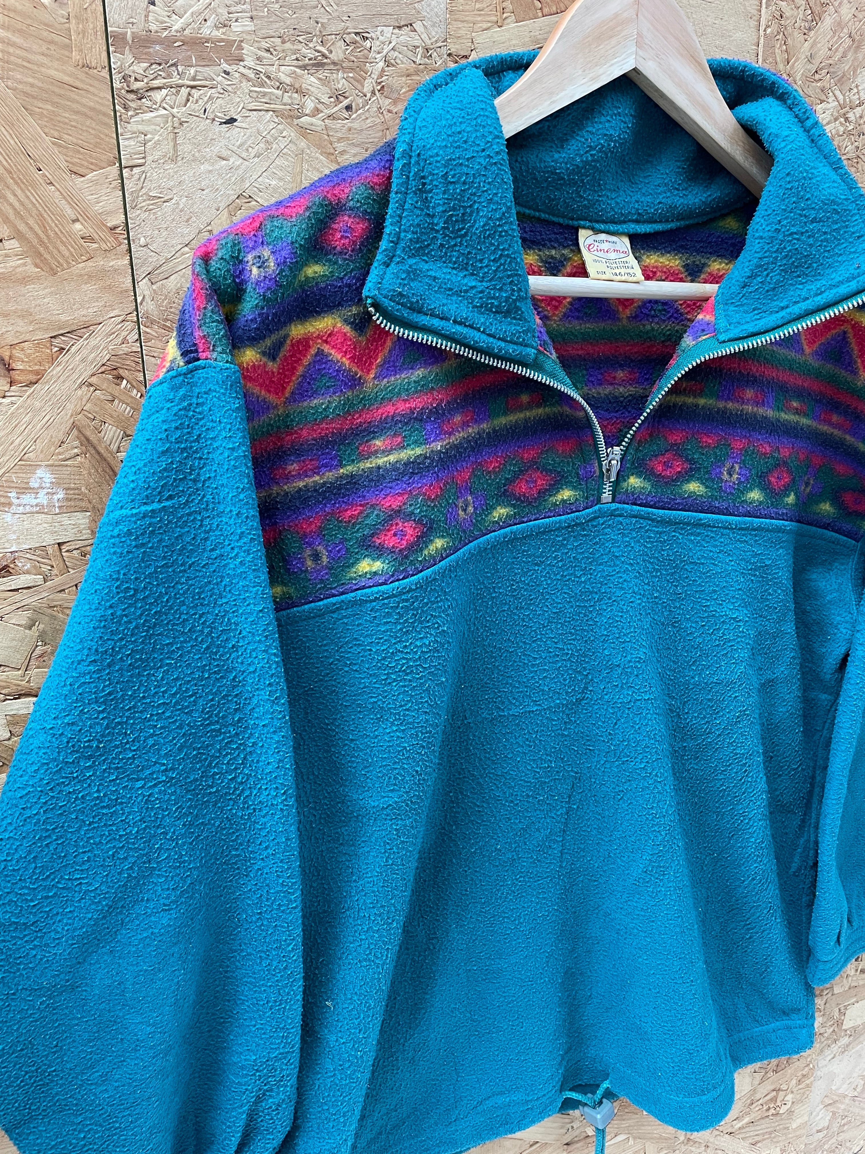 Vintage 90s turquoise block panel crazy print fleece size medium by Cinema
