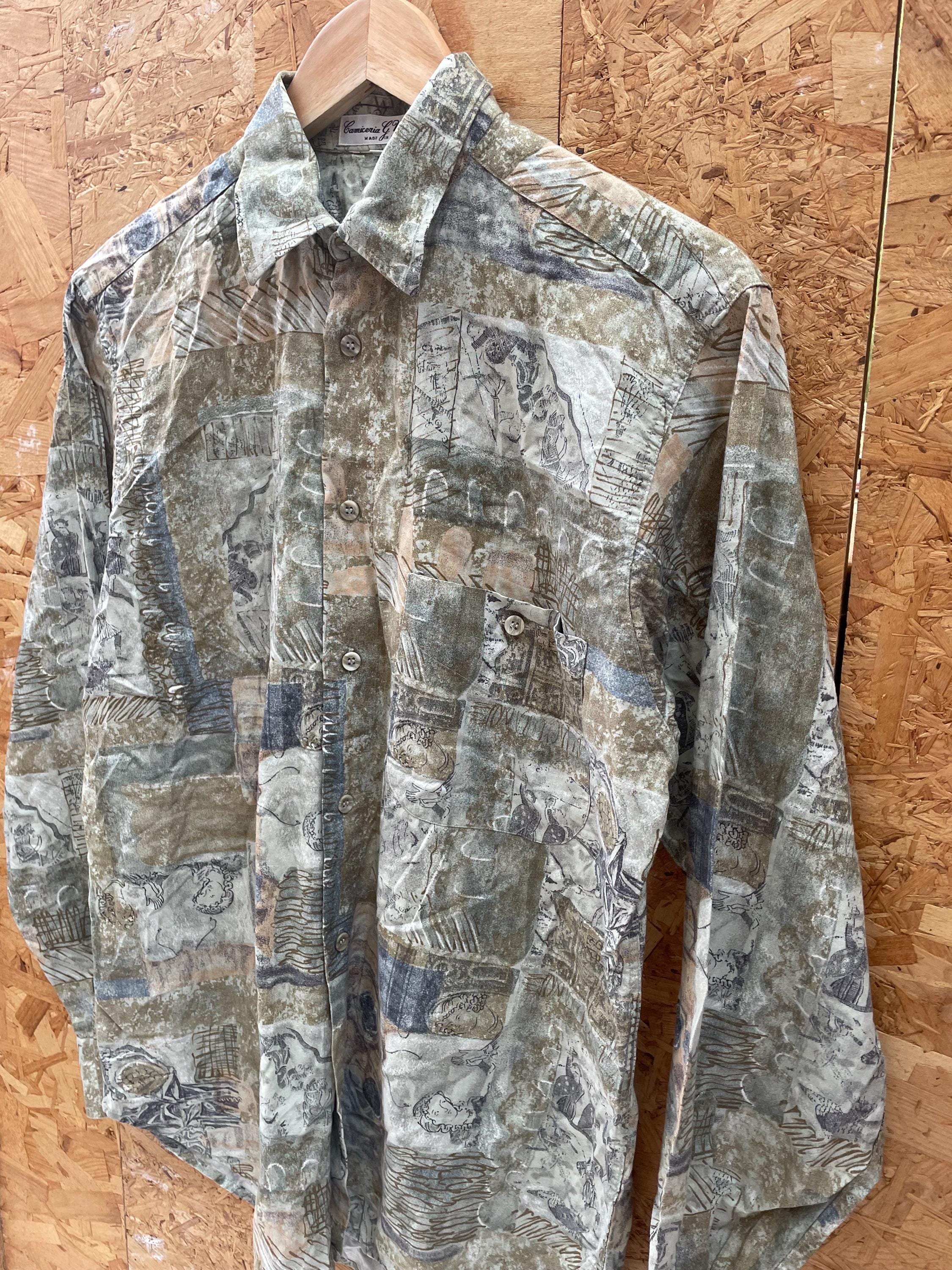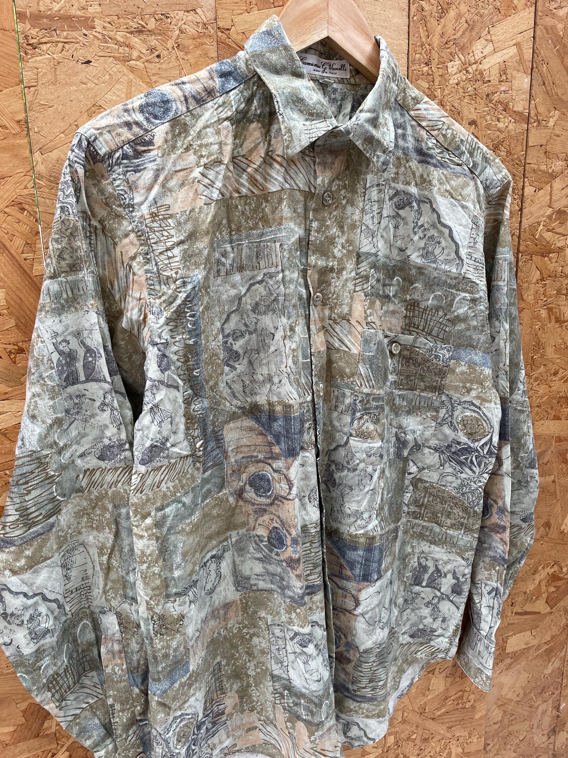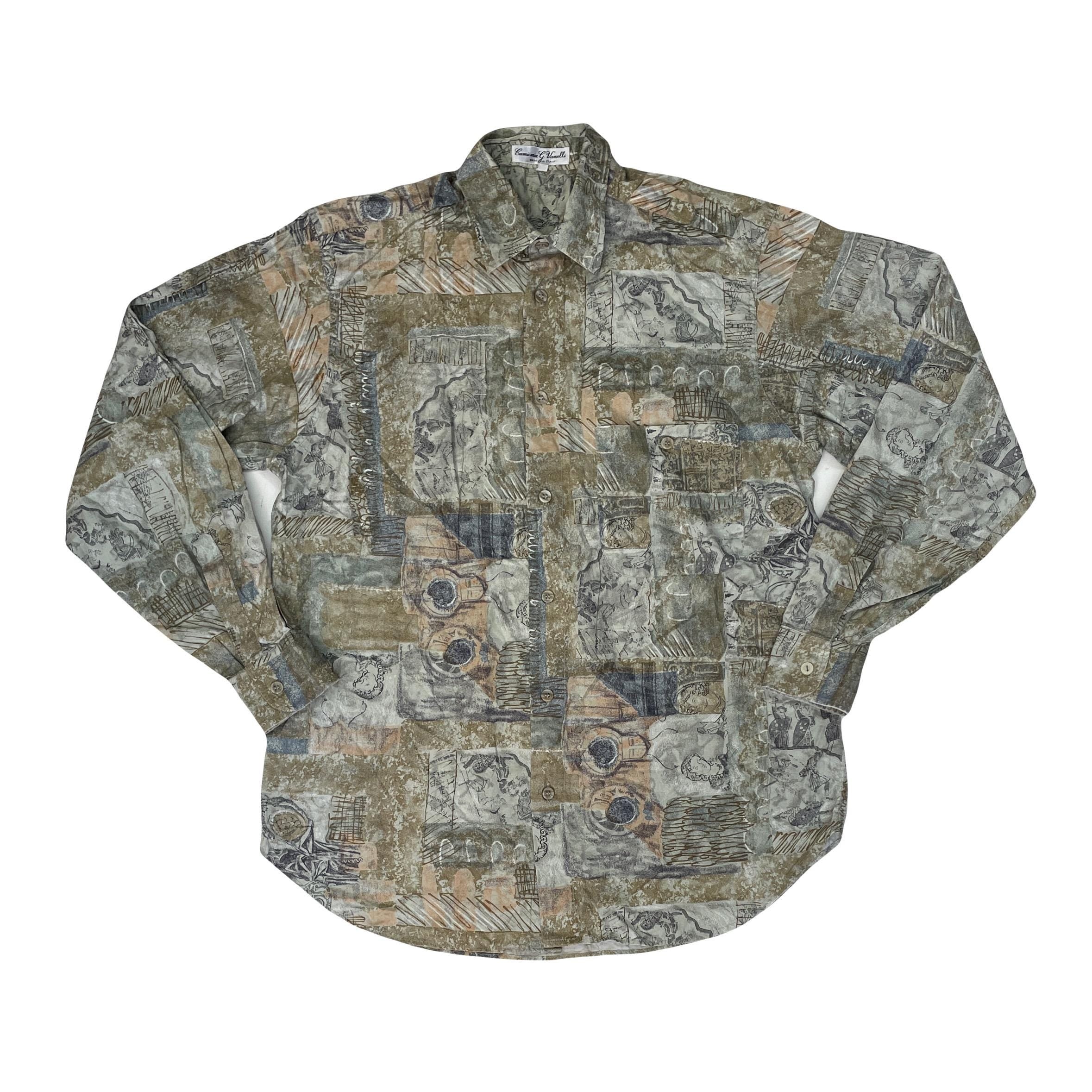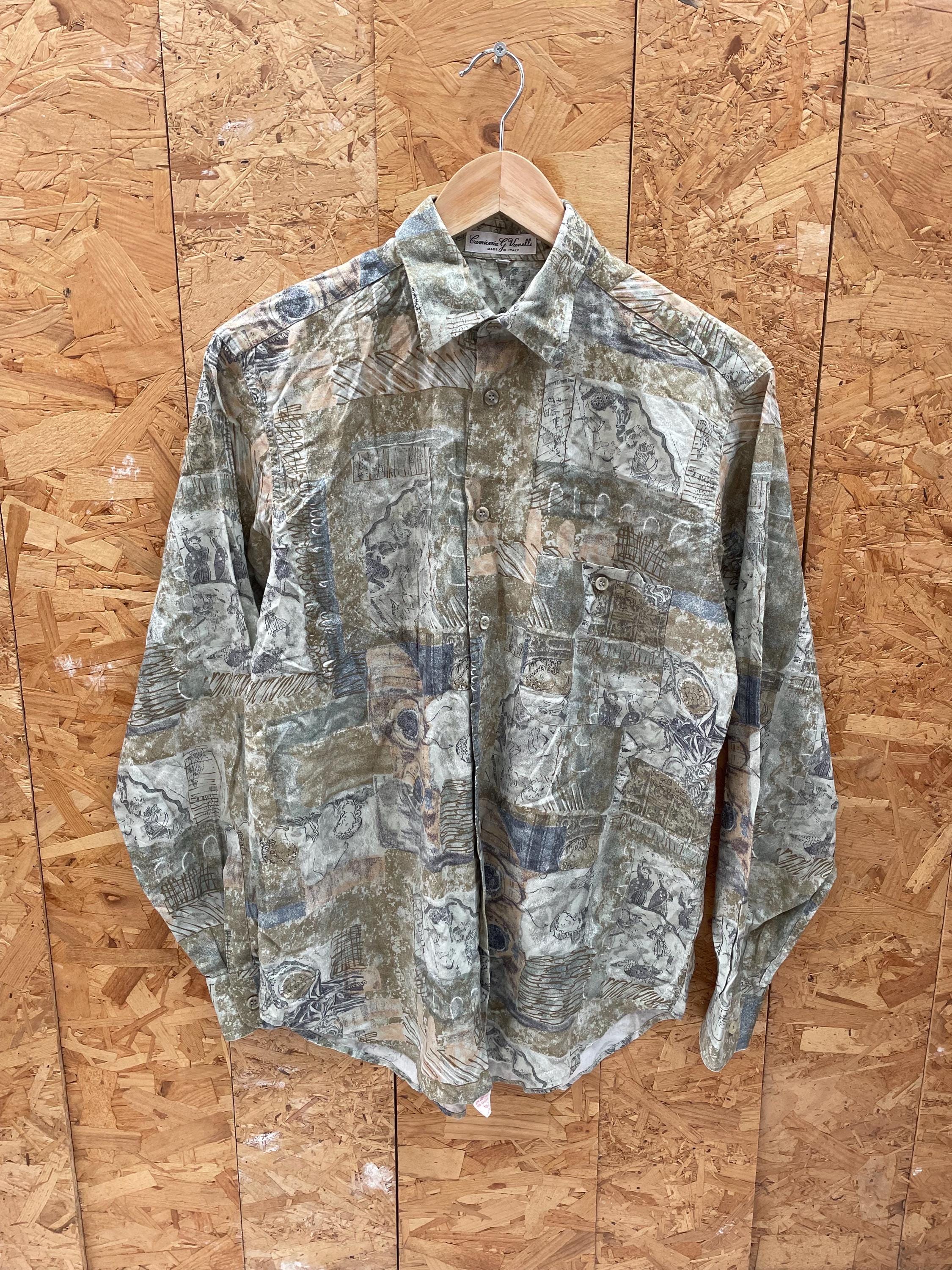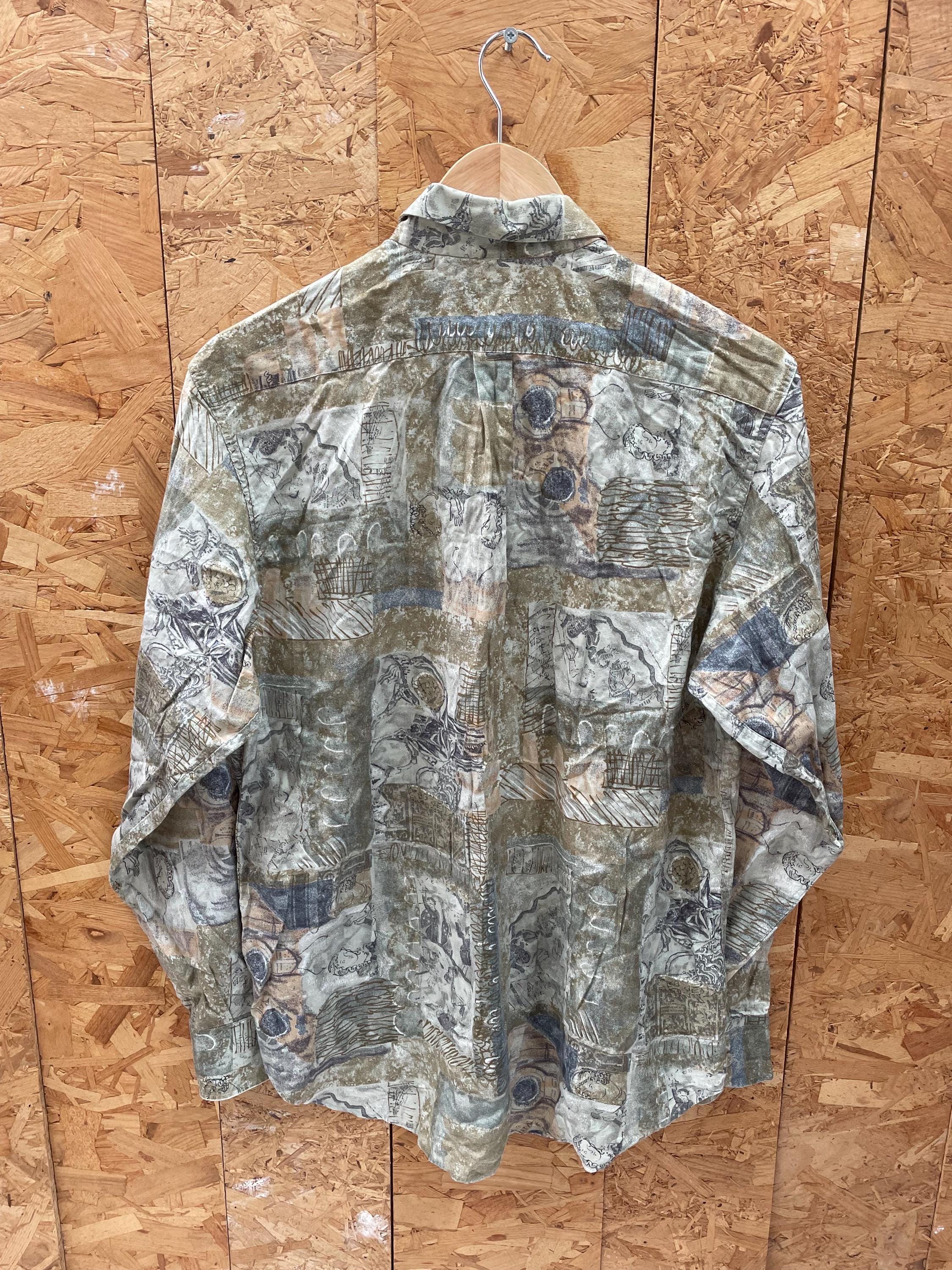 Vintage 90s ugly abstract shapes grungy green sketchbook pattern long sleeve shirt size small by G. Vanelli
