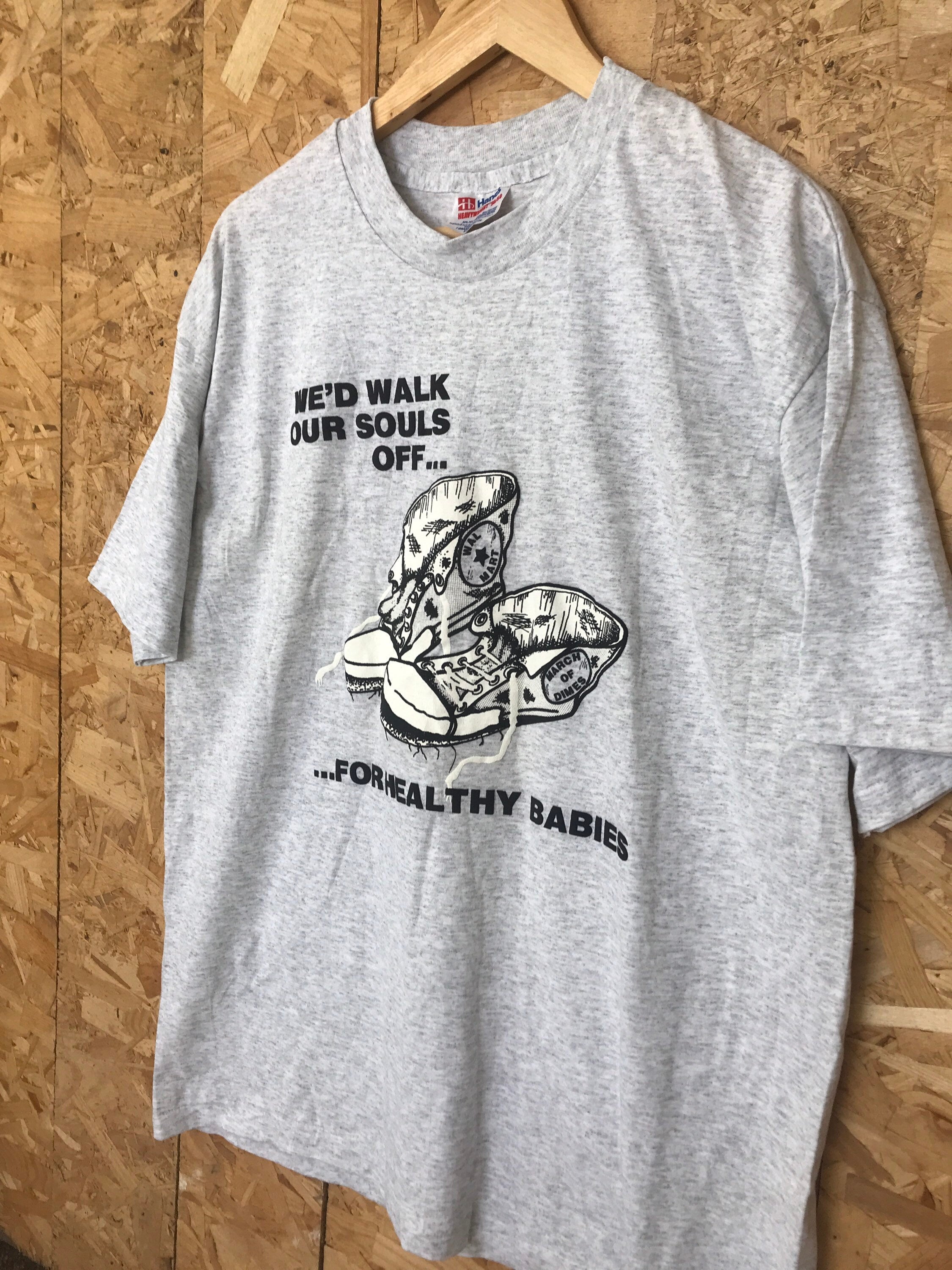 Vintage 90s USA March of Dimes charity walk marathon quirky souvenir grey t shirt size extra large
