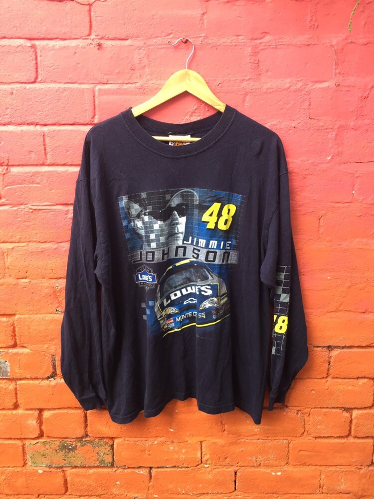 Vintage 90s USA navy blue NASCAR Jimmie Johnson lowes souvenir long sleeve slouchy oversized t shirt size XL