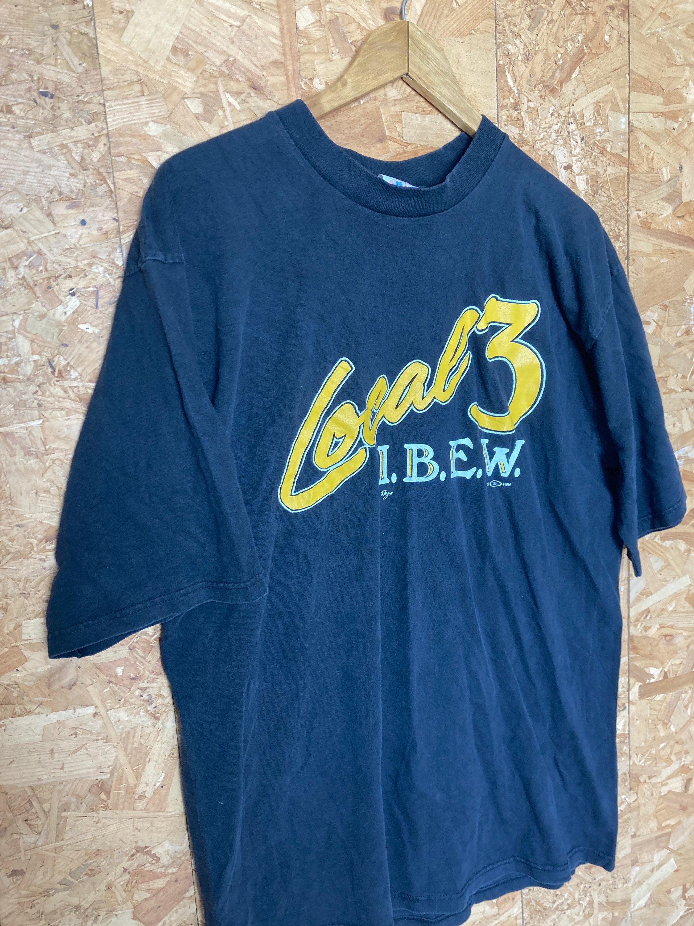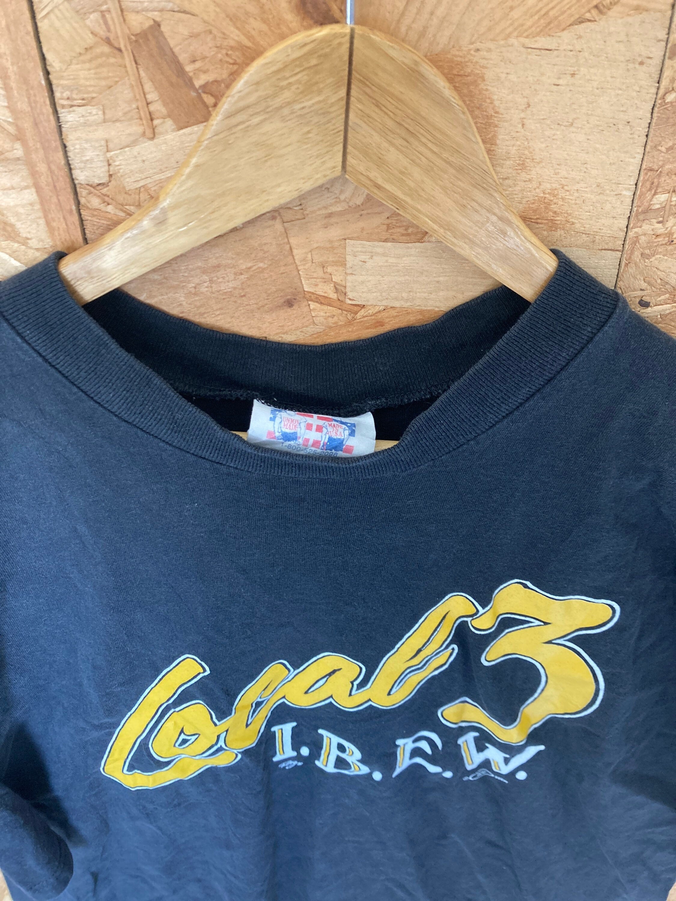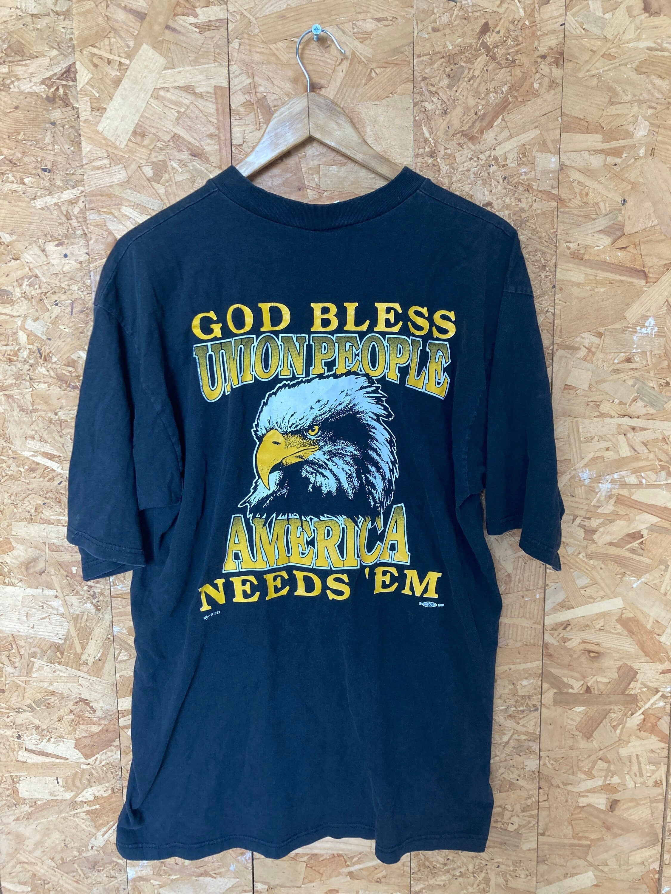 Vintage 90s USA Union leader Local 3 American Eagle print black & yellow t shirt size XL