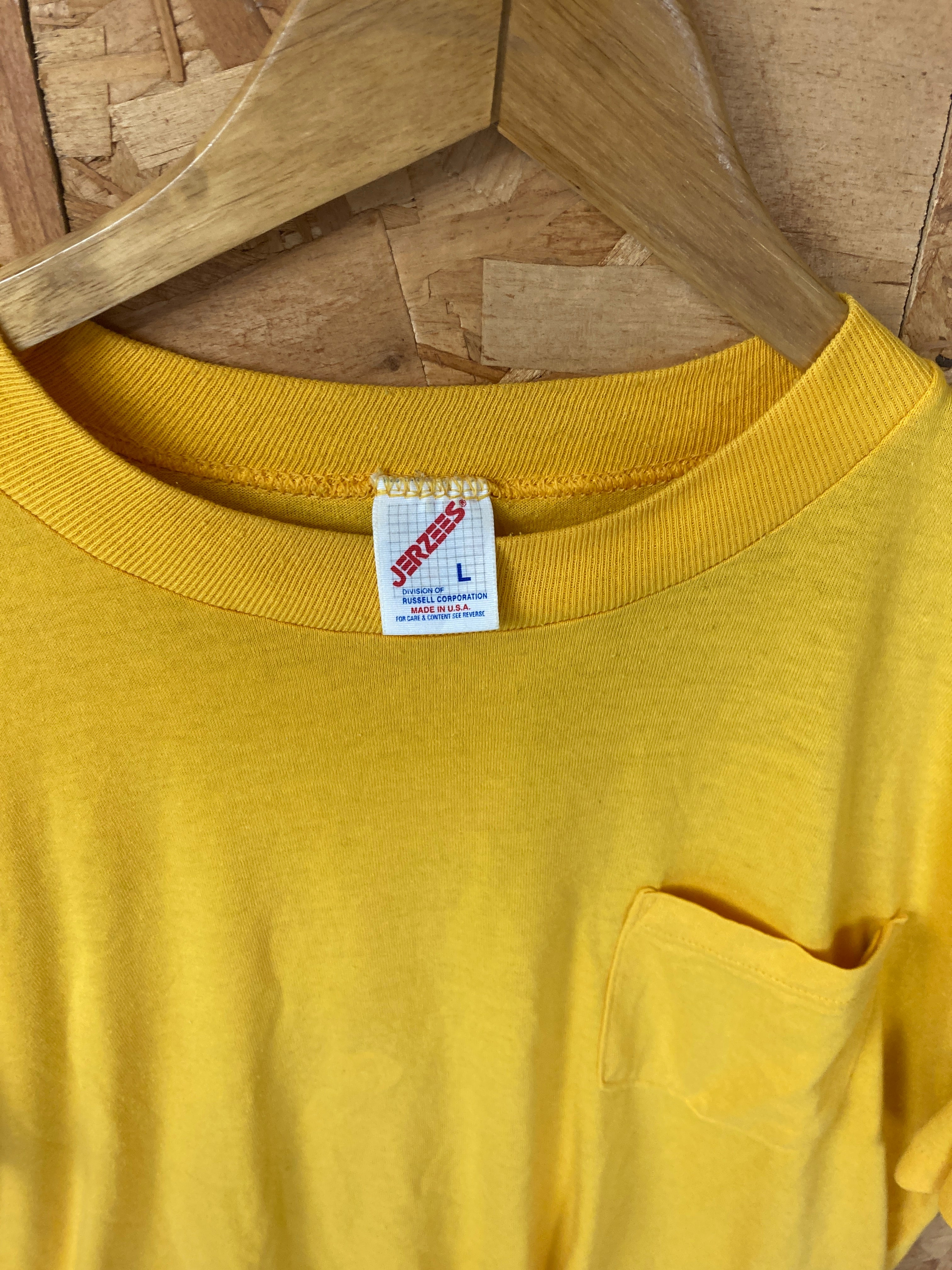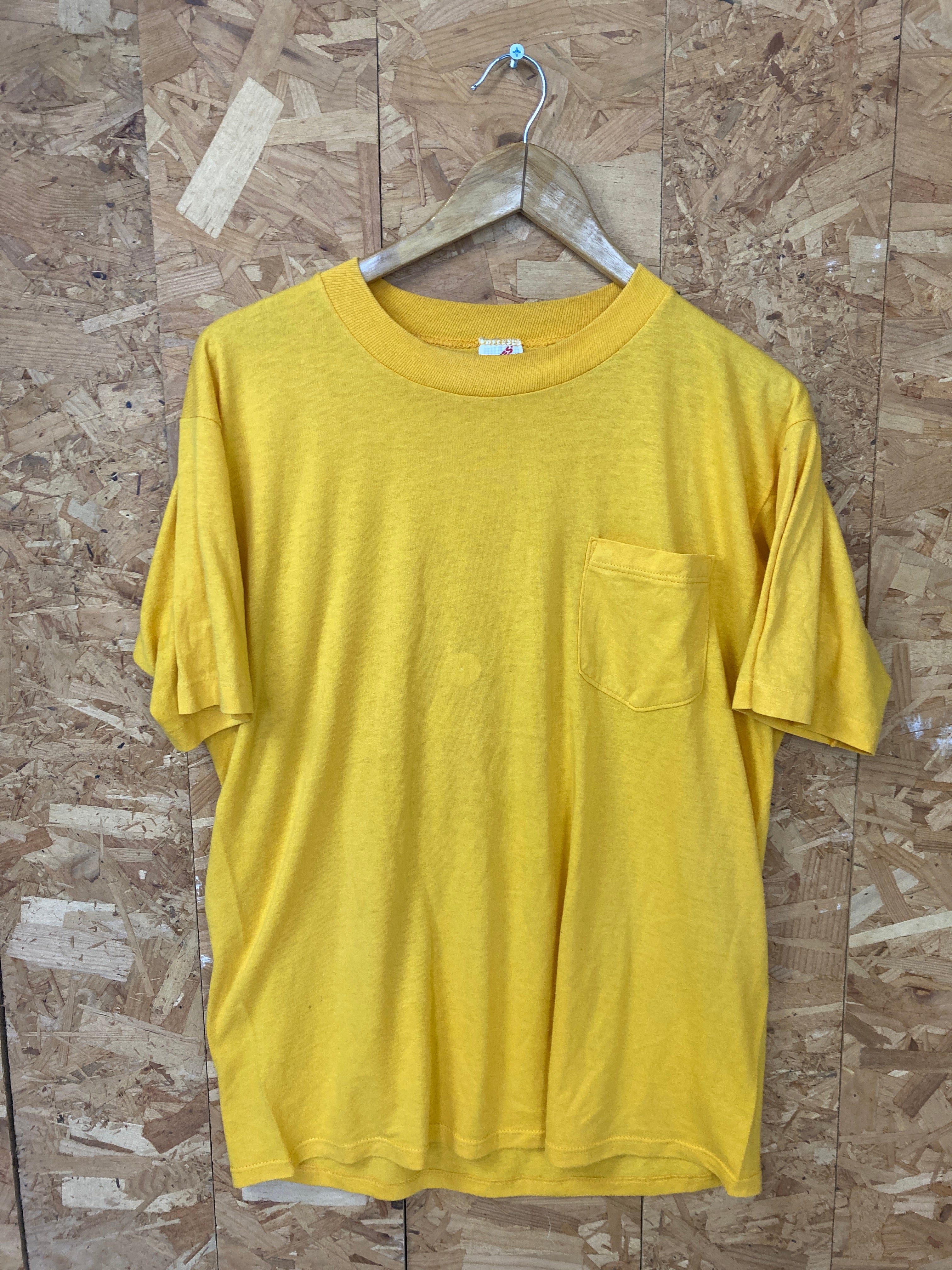 Vintage 90s yellow single pocket Kewin Paper Co souvenir t-shirt size large