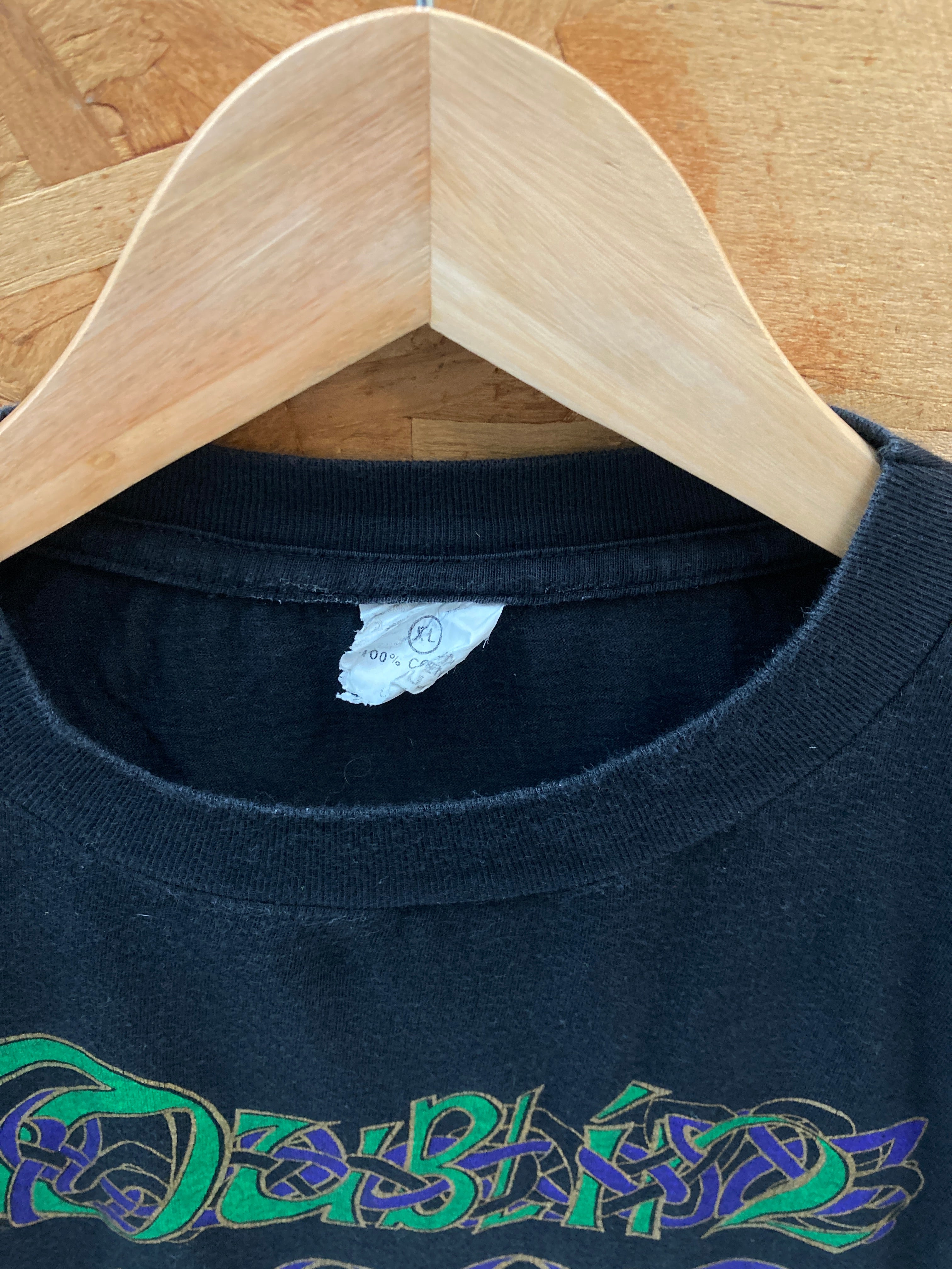 Vintage 93 Dublin Celtic folk art souvenir black green purple gold t-shirt size XL