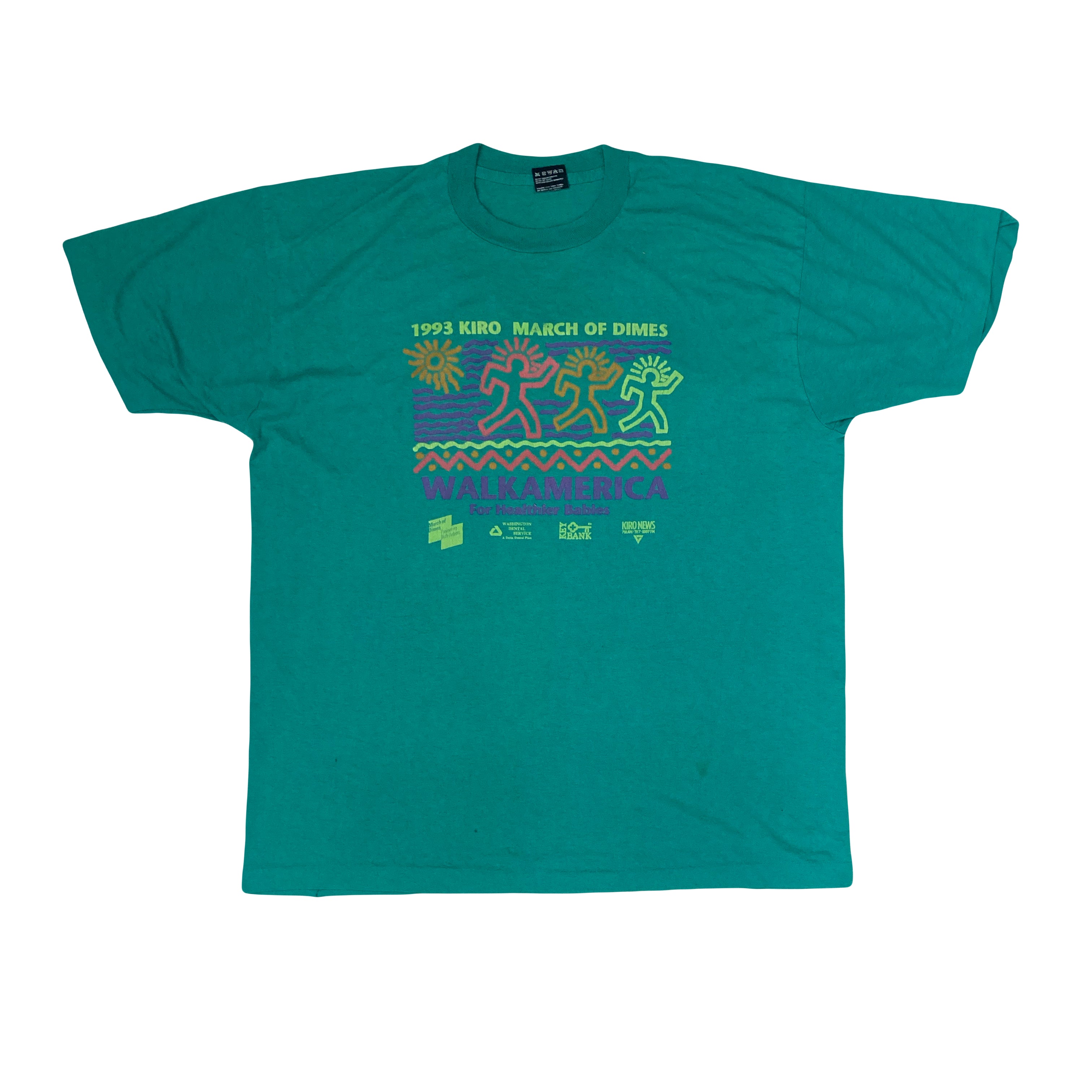 Vintage 93 turquoise March of the dimes marathon fun run single stitch t-shirt size XL by Fruit of the loom