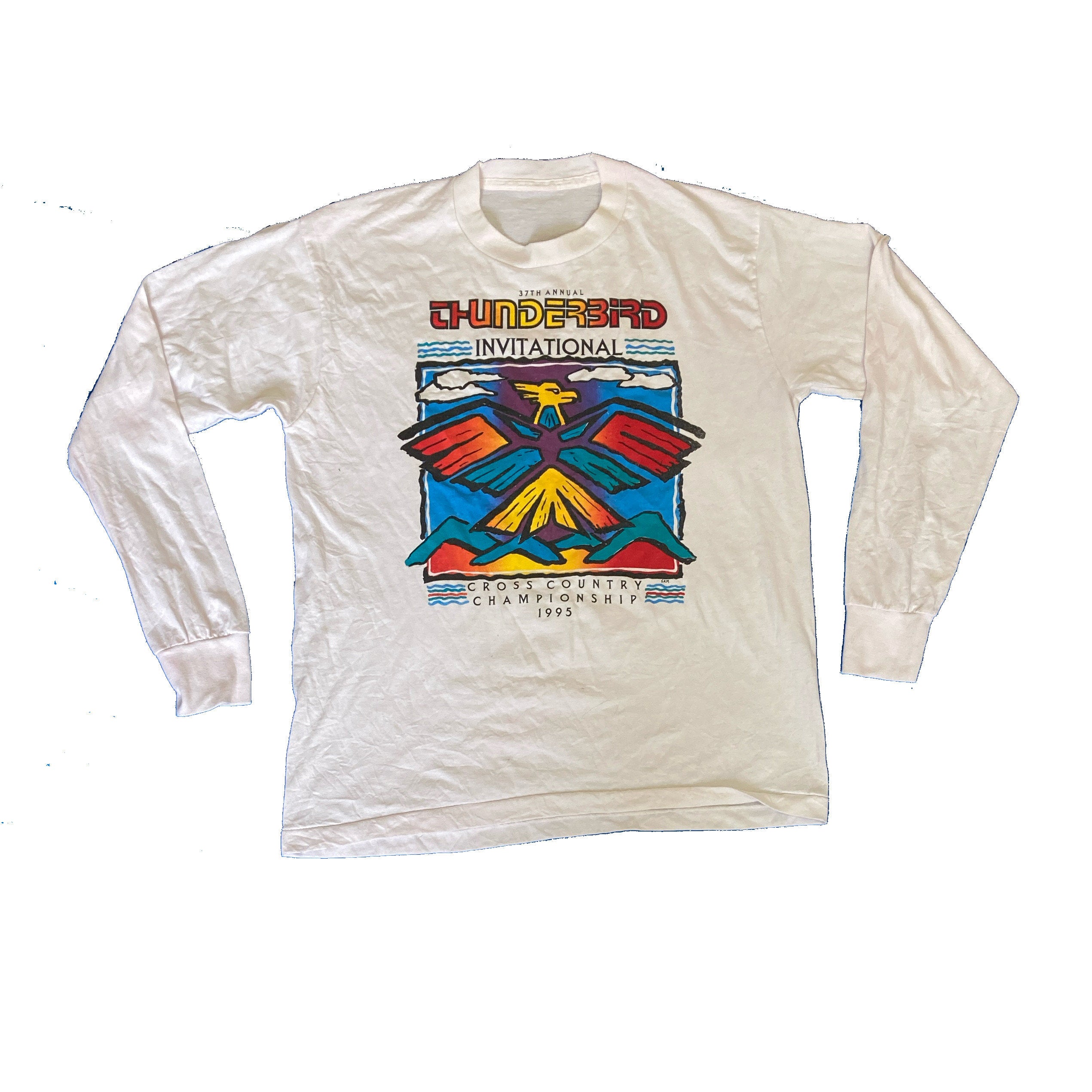 Vintage 95 37th annual thunderbird invitational Native American USA white long sleeve t-shirt size medium