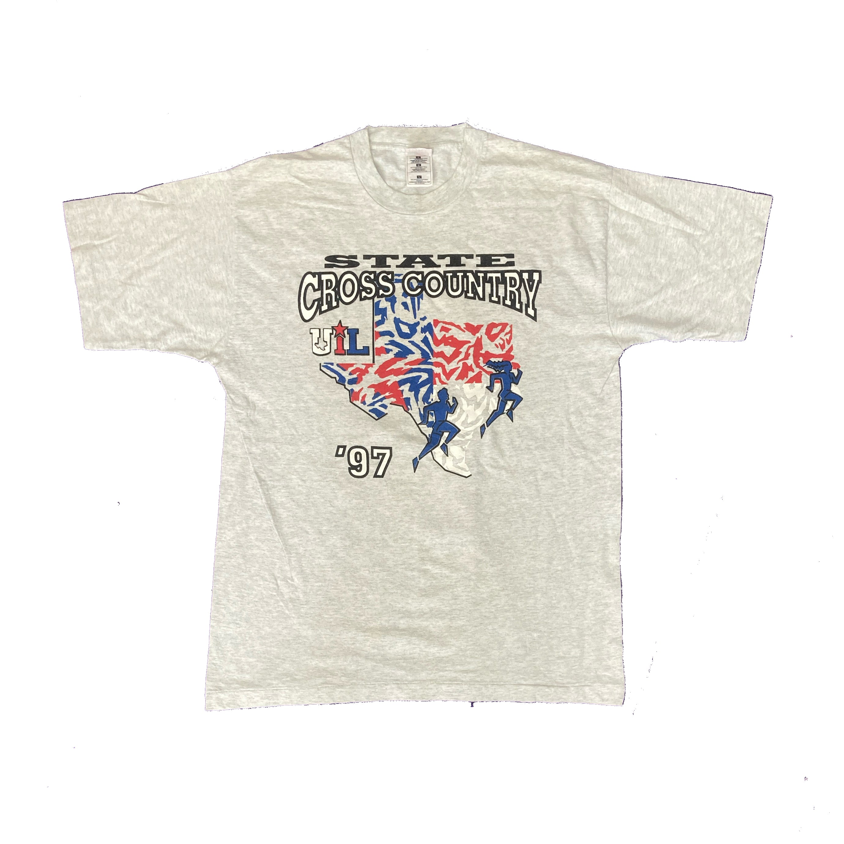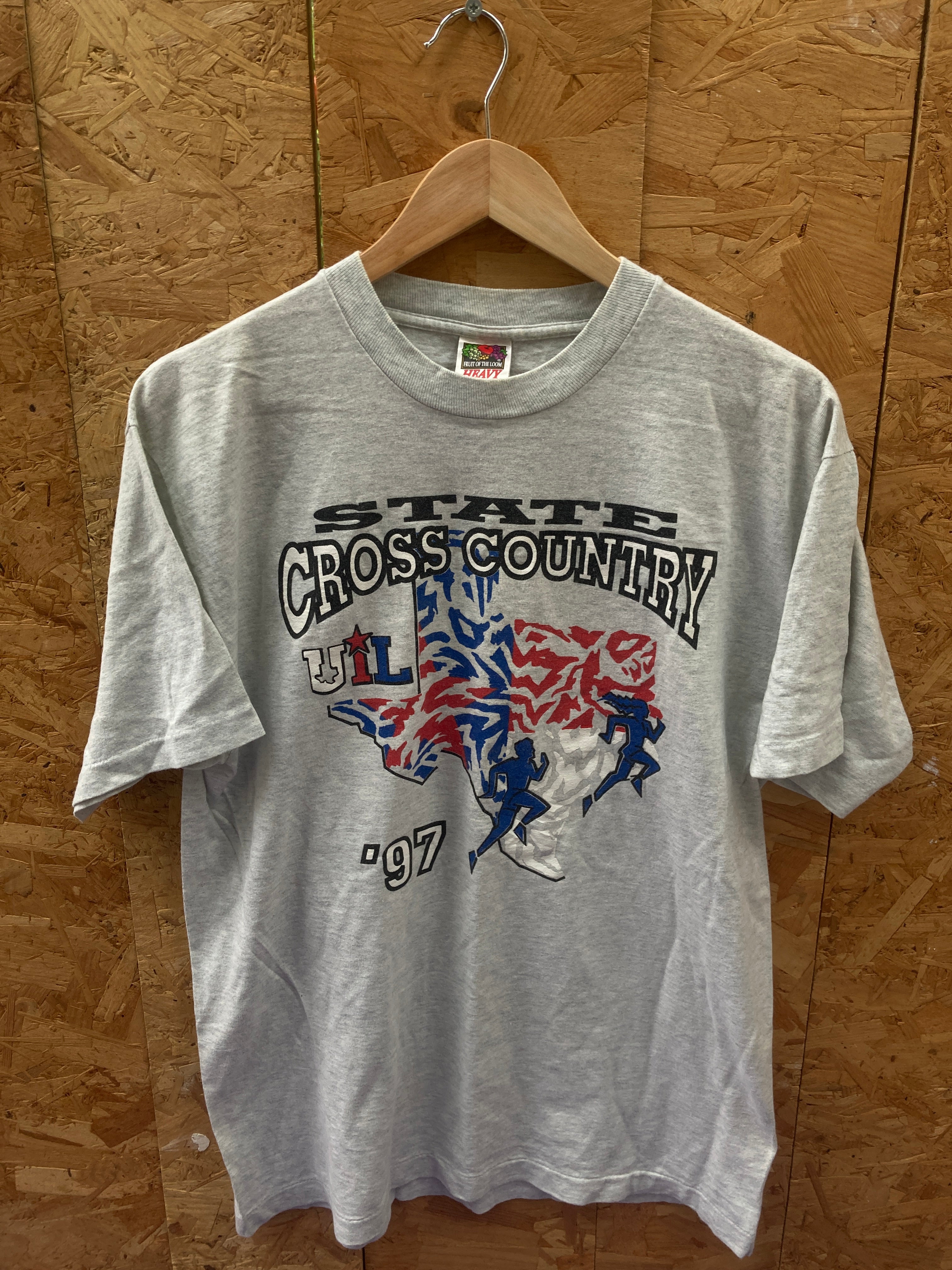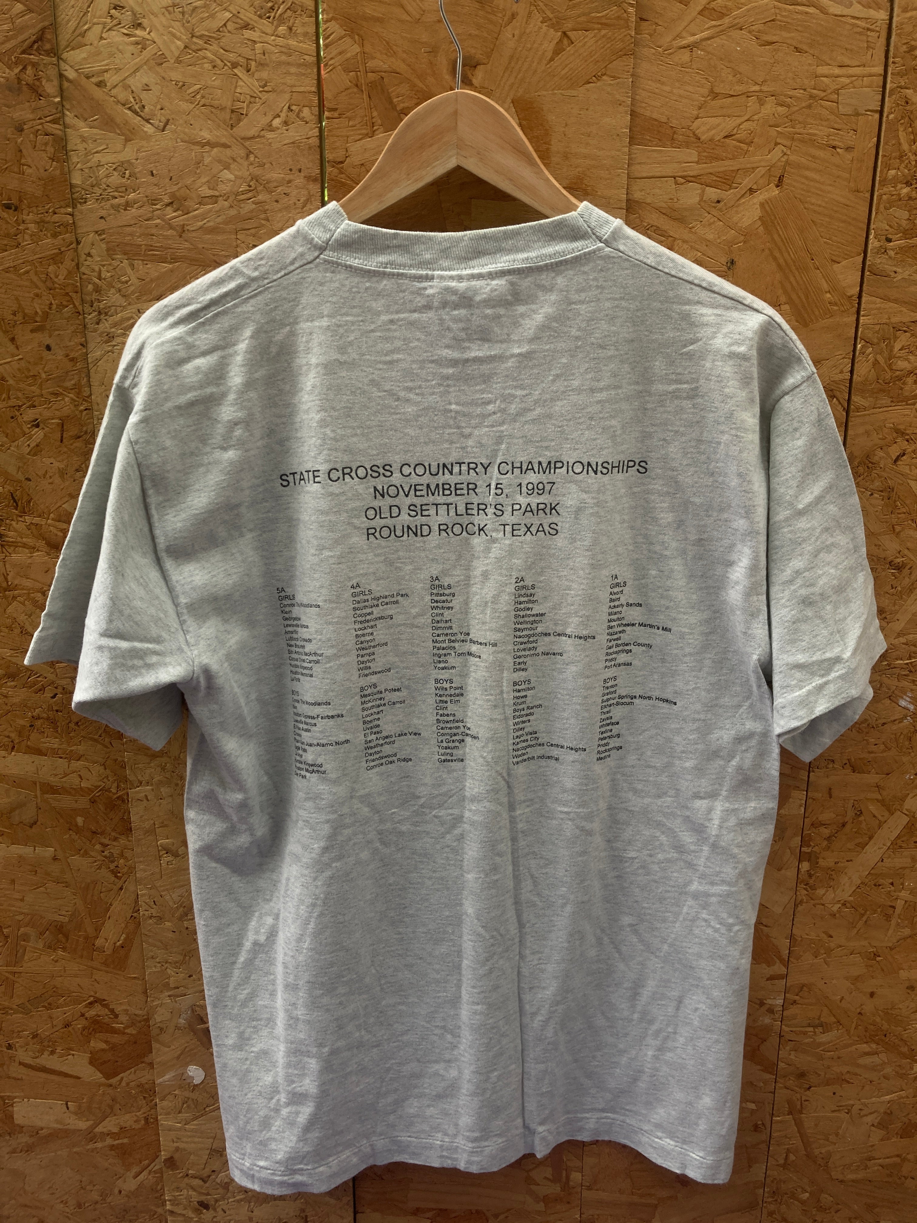 Vintage 97 State Cross Country Run souvenir single stitch grey t-shirt size large, double side print on Fruit of the loom