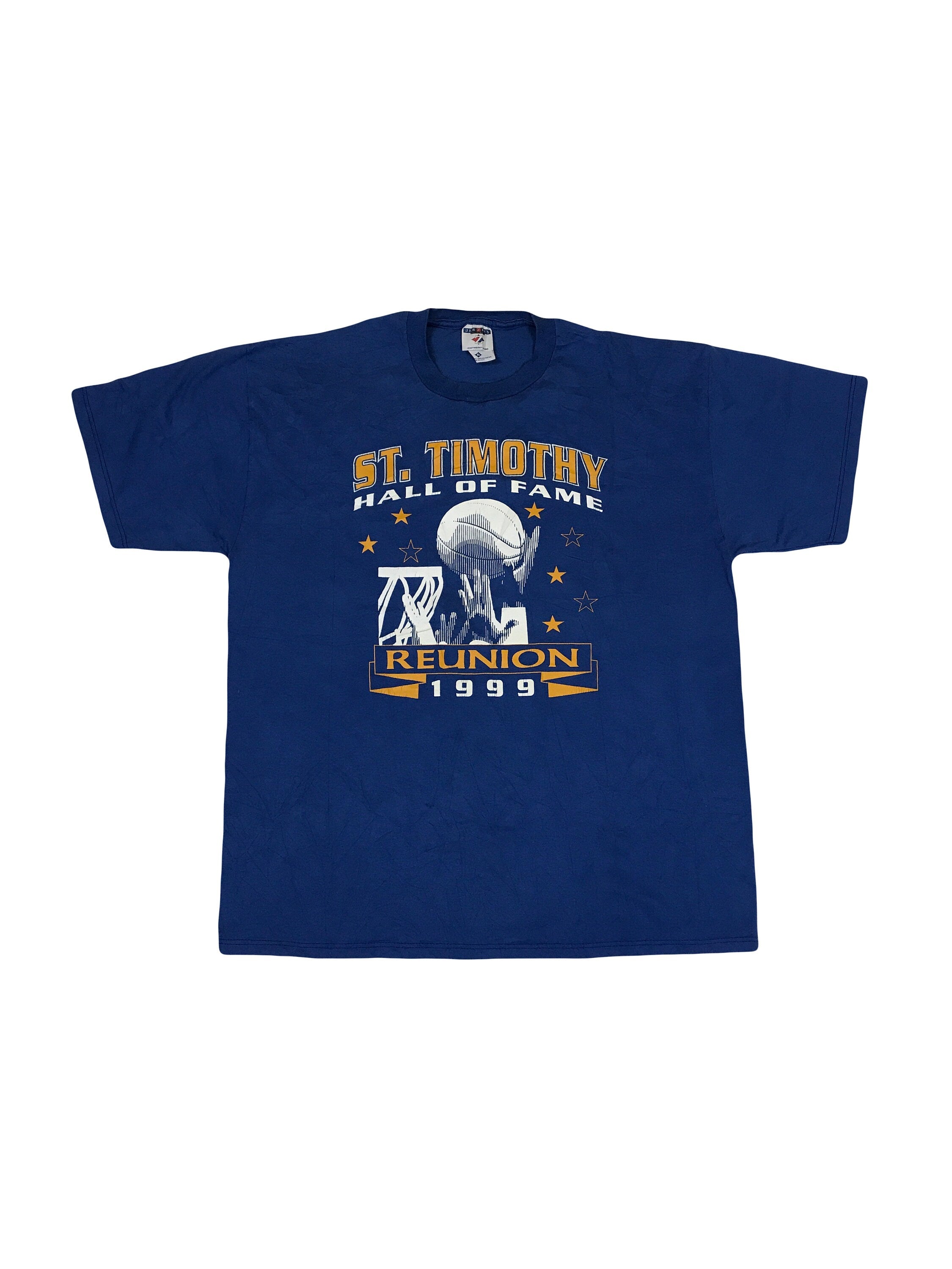 Vintage 99' St Timothy Ohio USA college sports basketball reunion team souvenir blue t-shirt size X-large