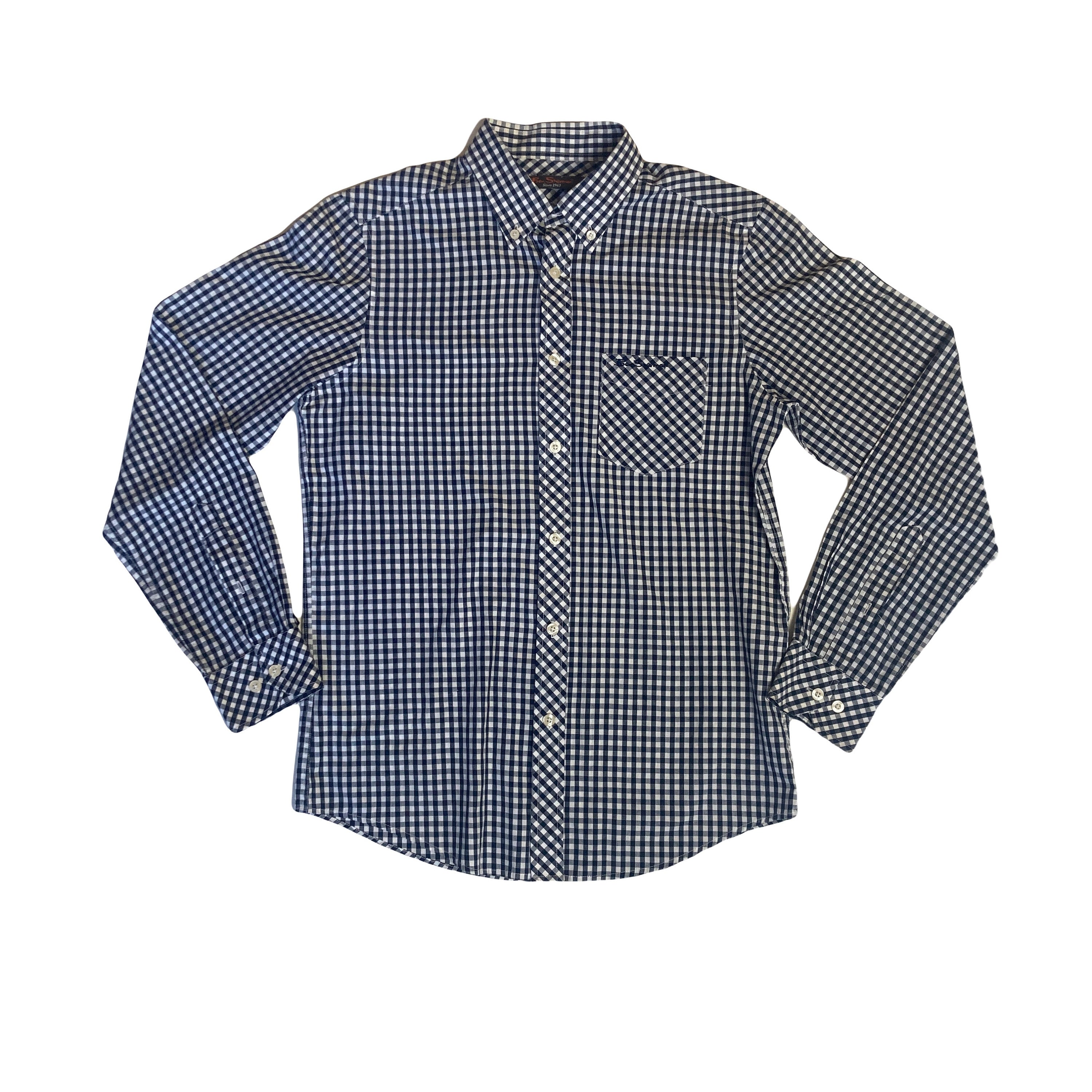 Vintage Ben Sherman black white gingham check long sleeve Mod skinhead retro punk shirt size small
