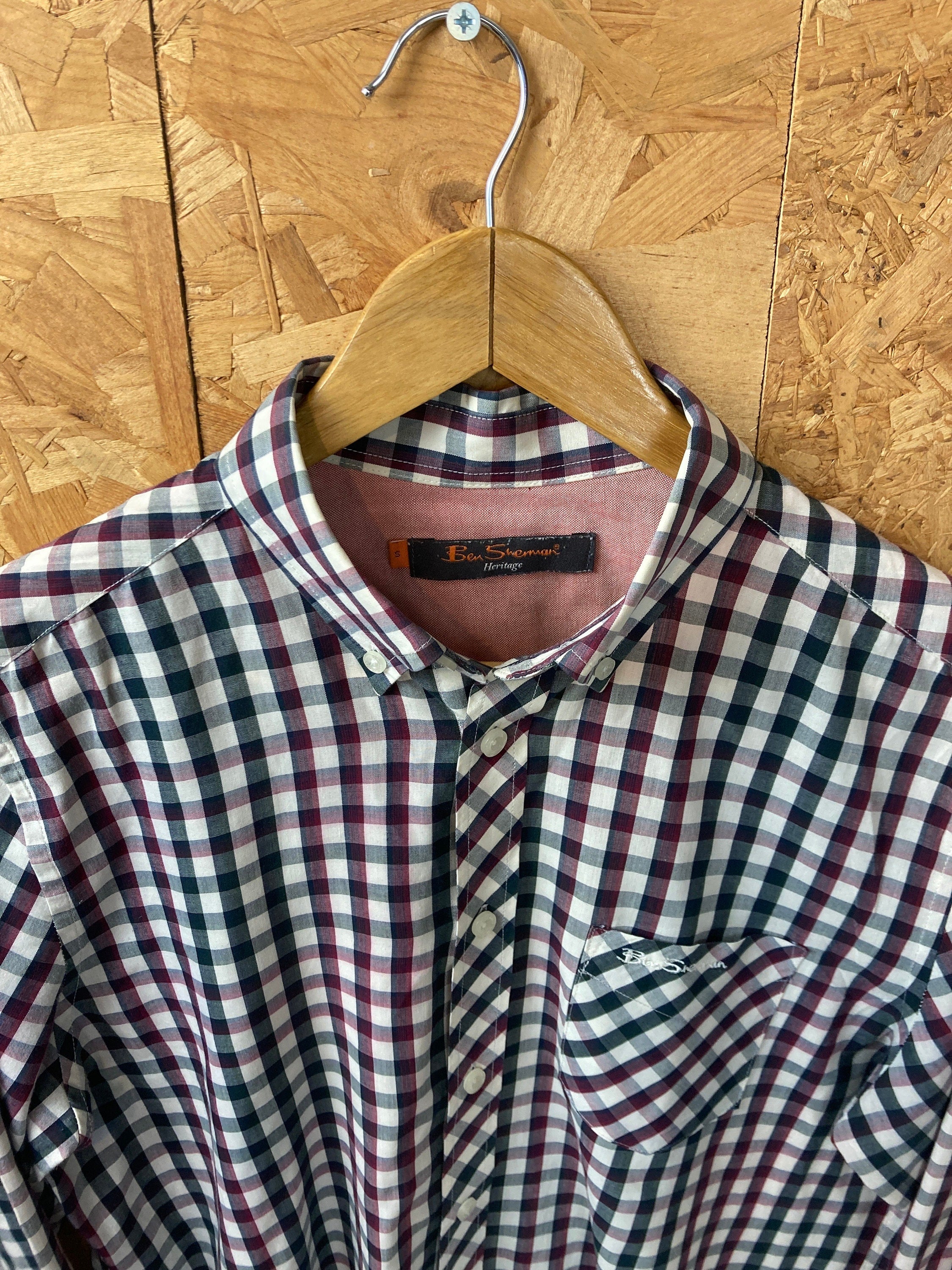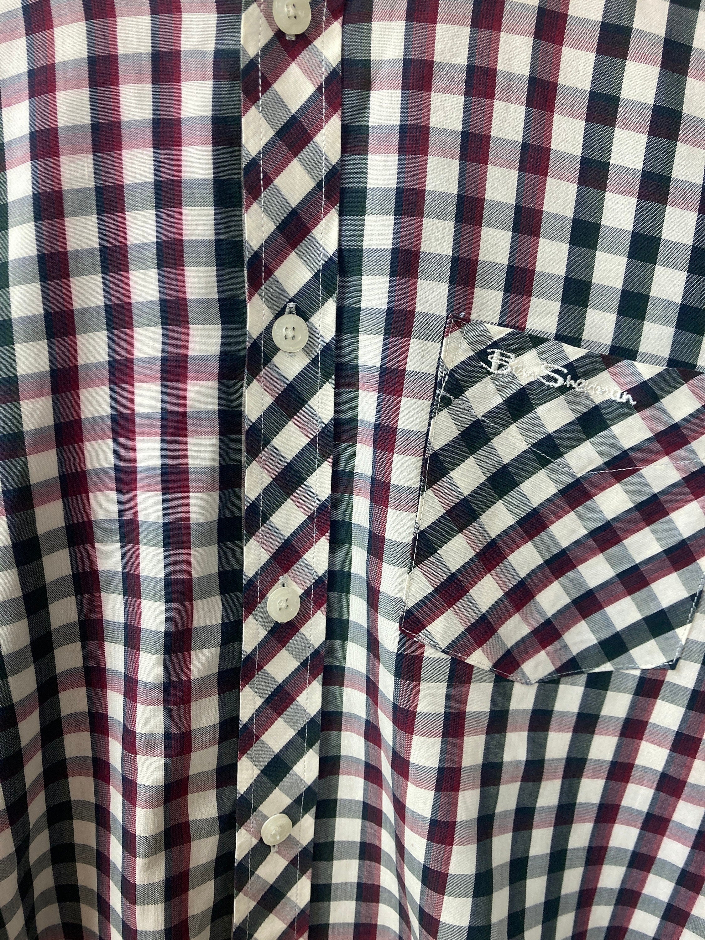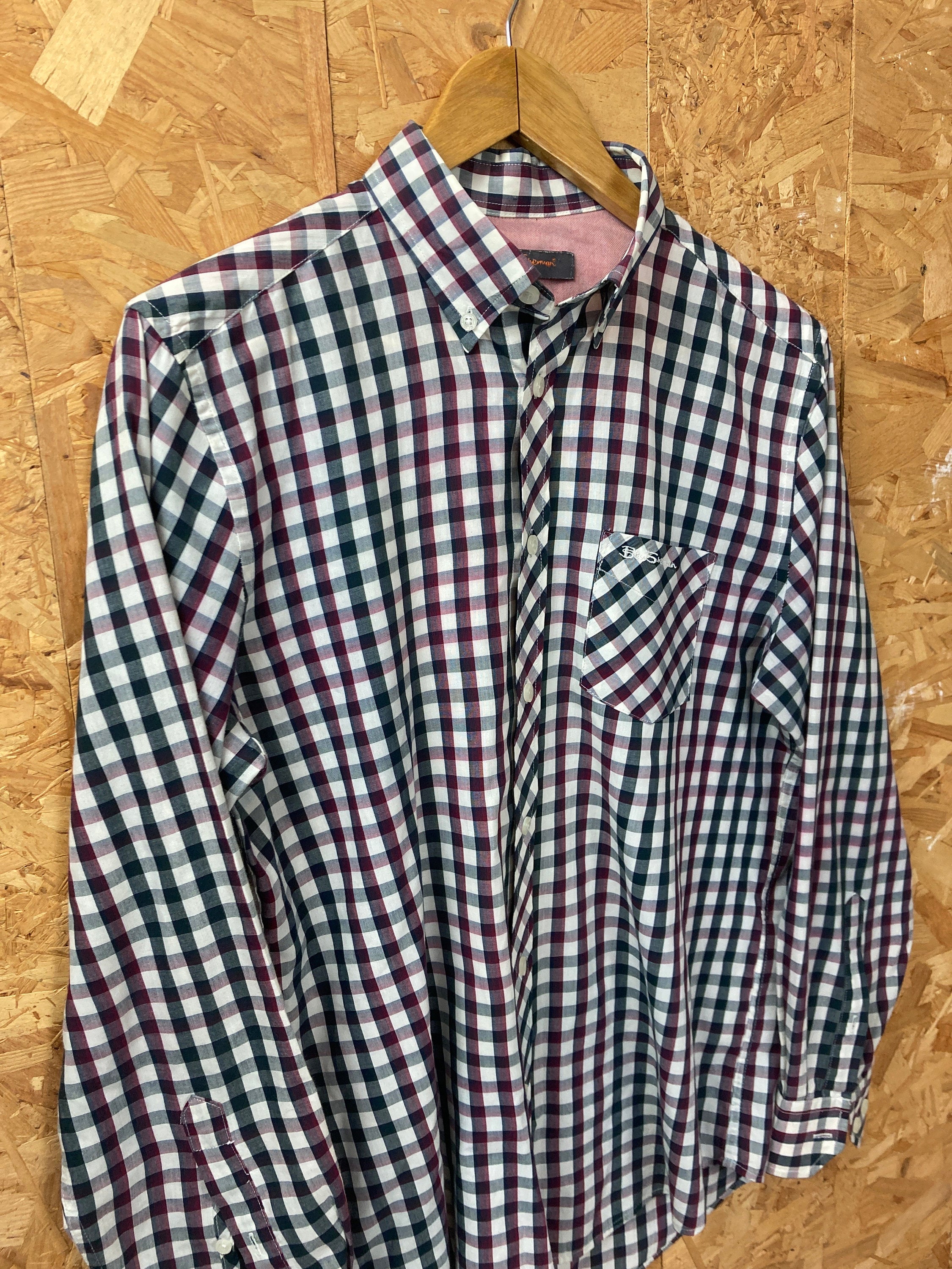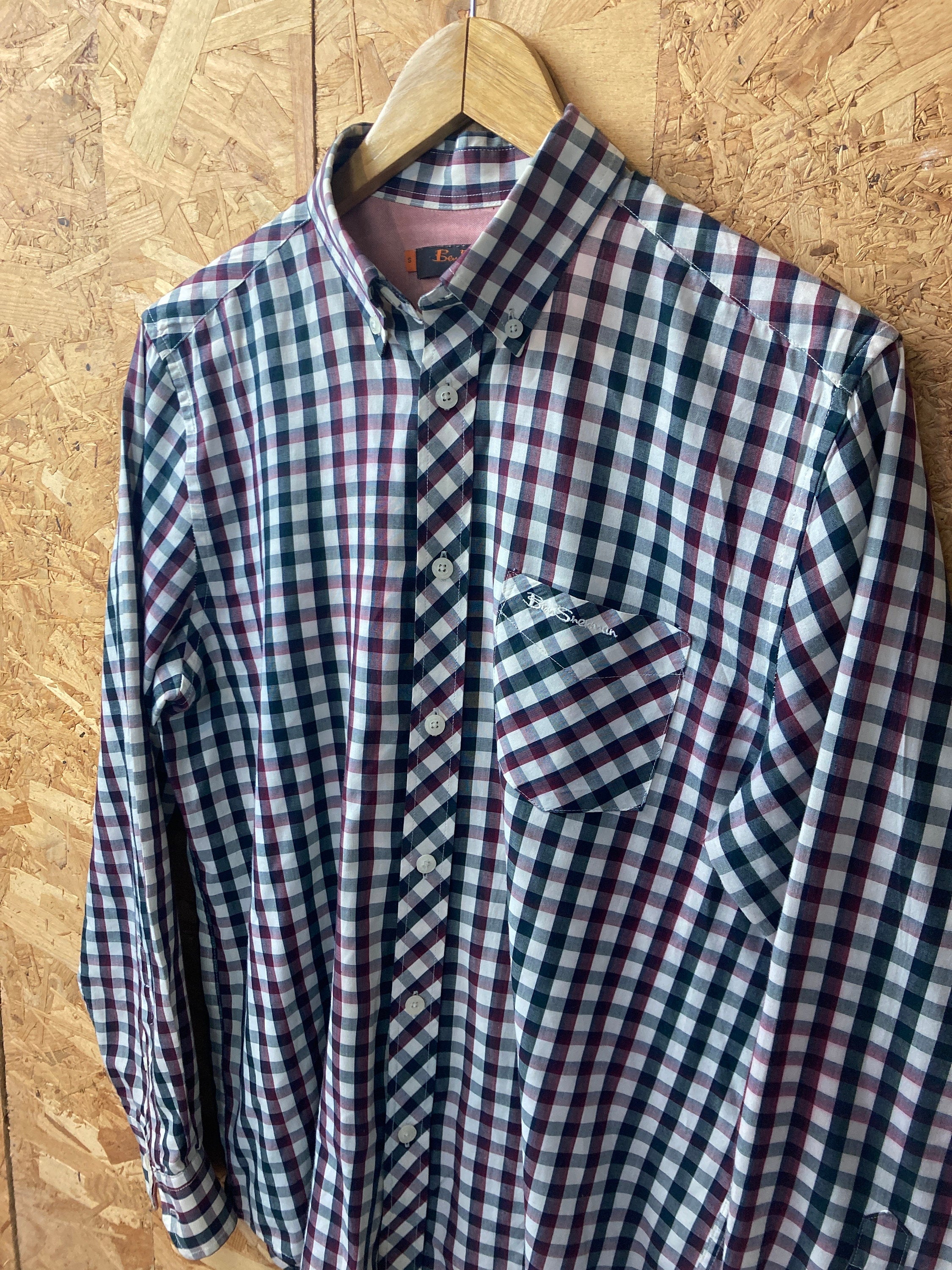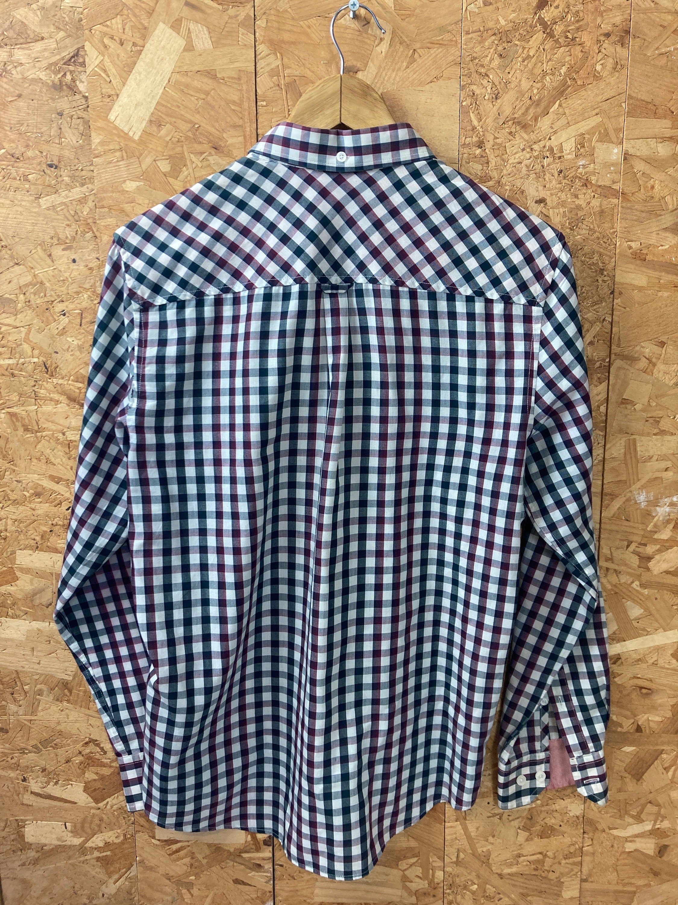Vintage Ben Sherman burgundy black tablecloth check long sleeve Mod skinhead retro punk shirt size small