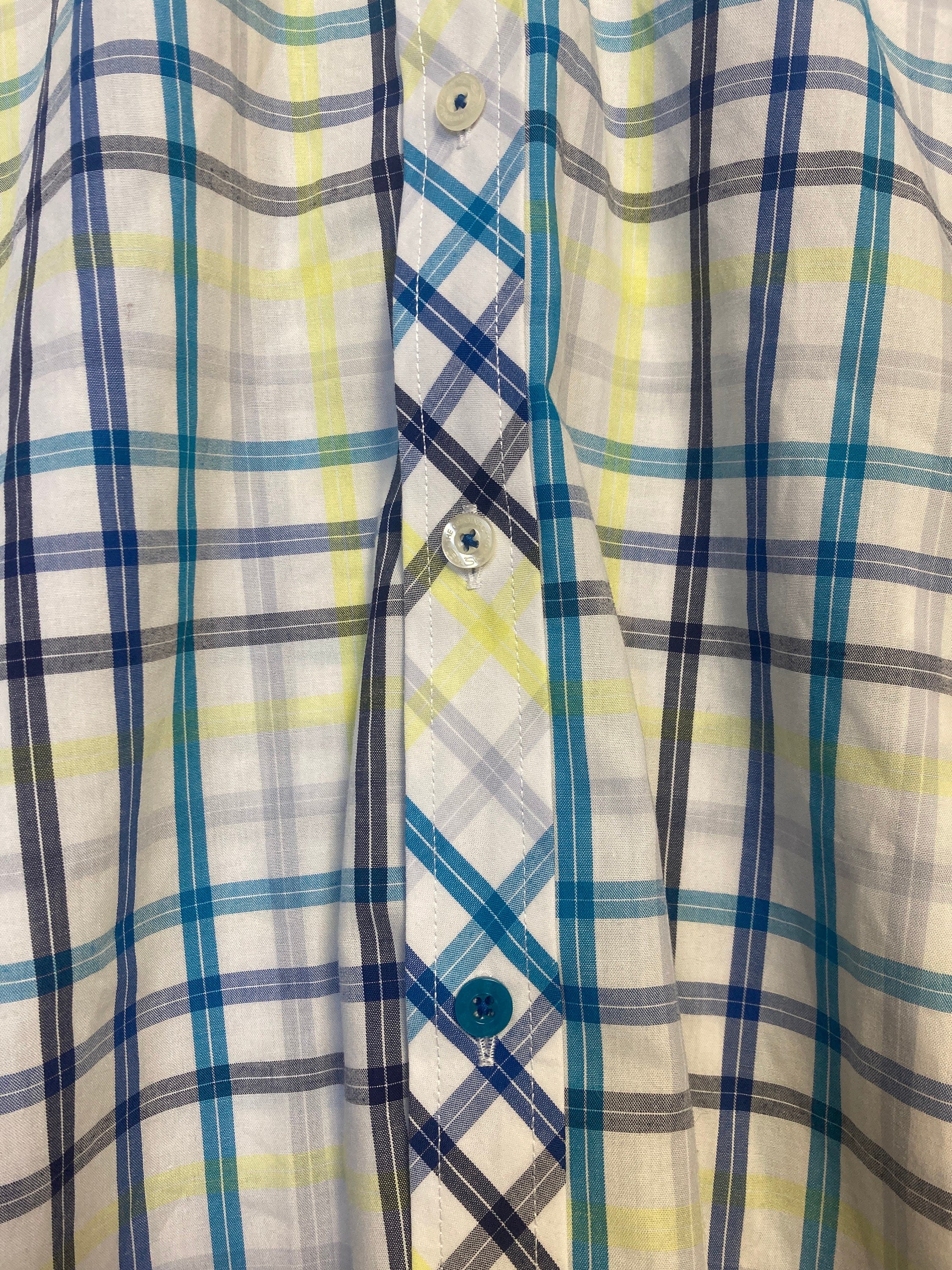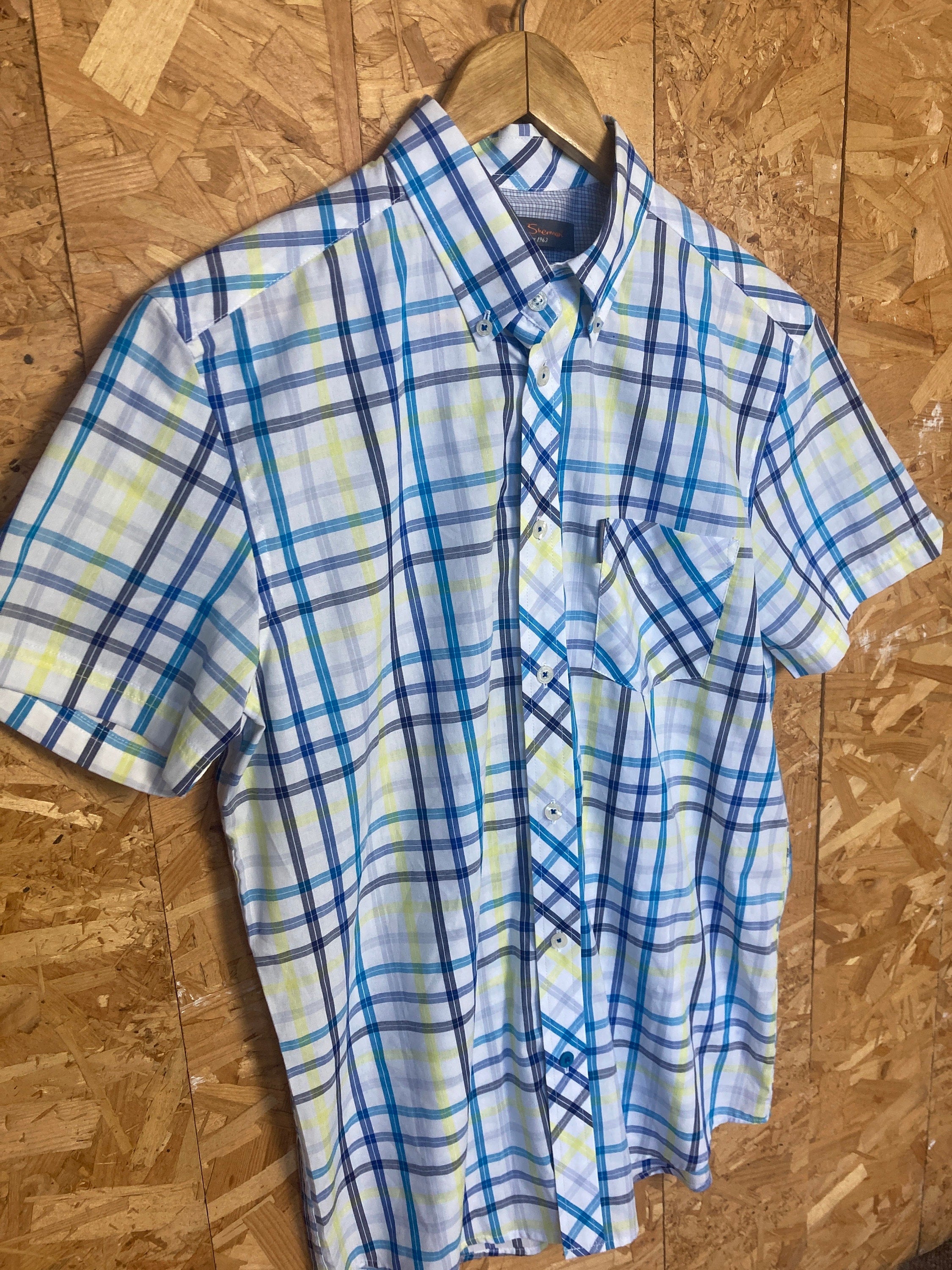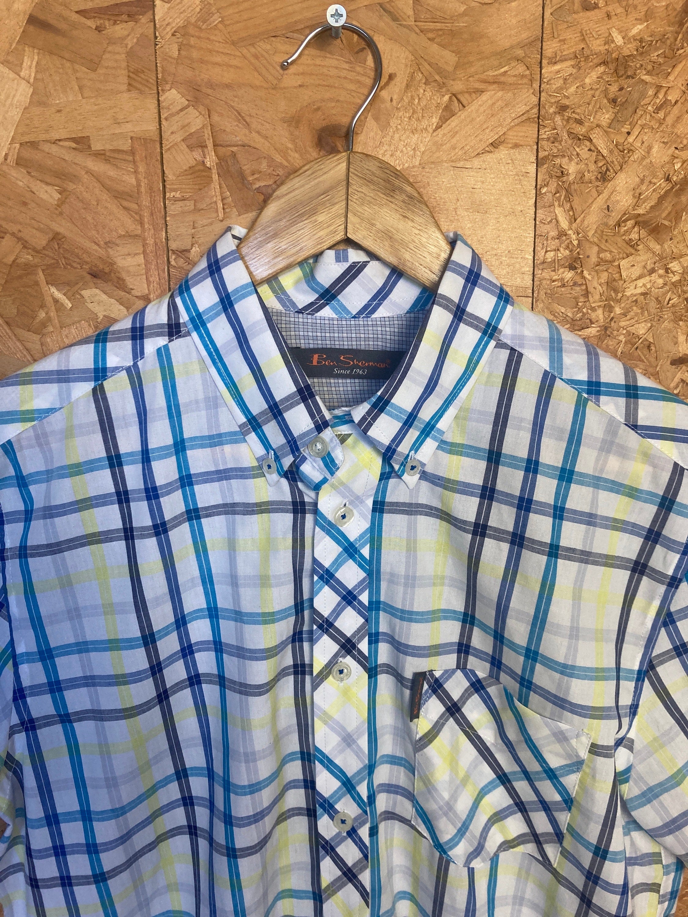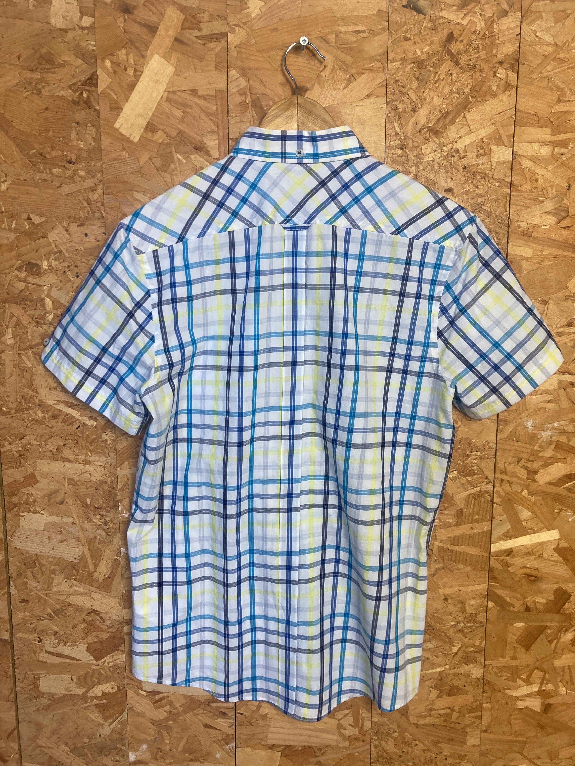 Vintage Ben Sherman light blue yellow white tablecloth fine check short sleeve Mod skinhead retro punk shirt size small