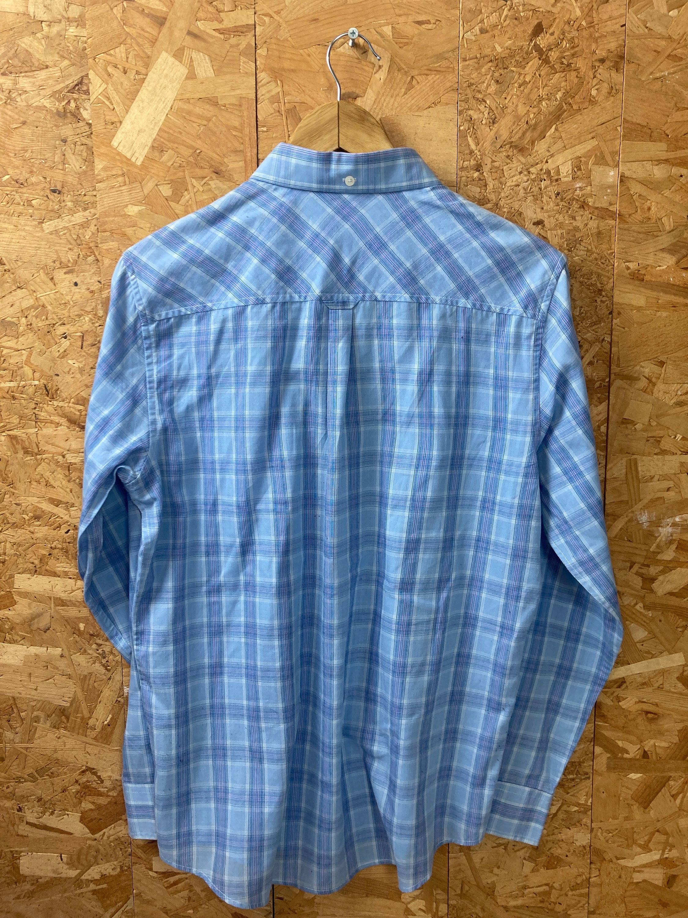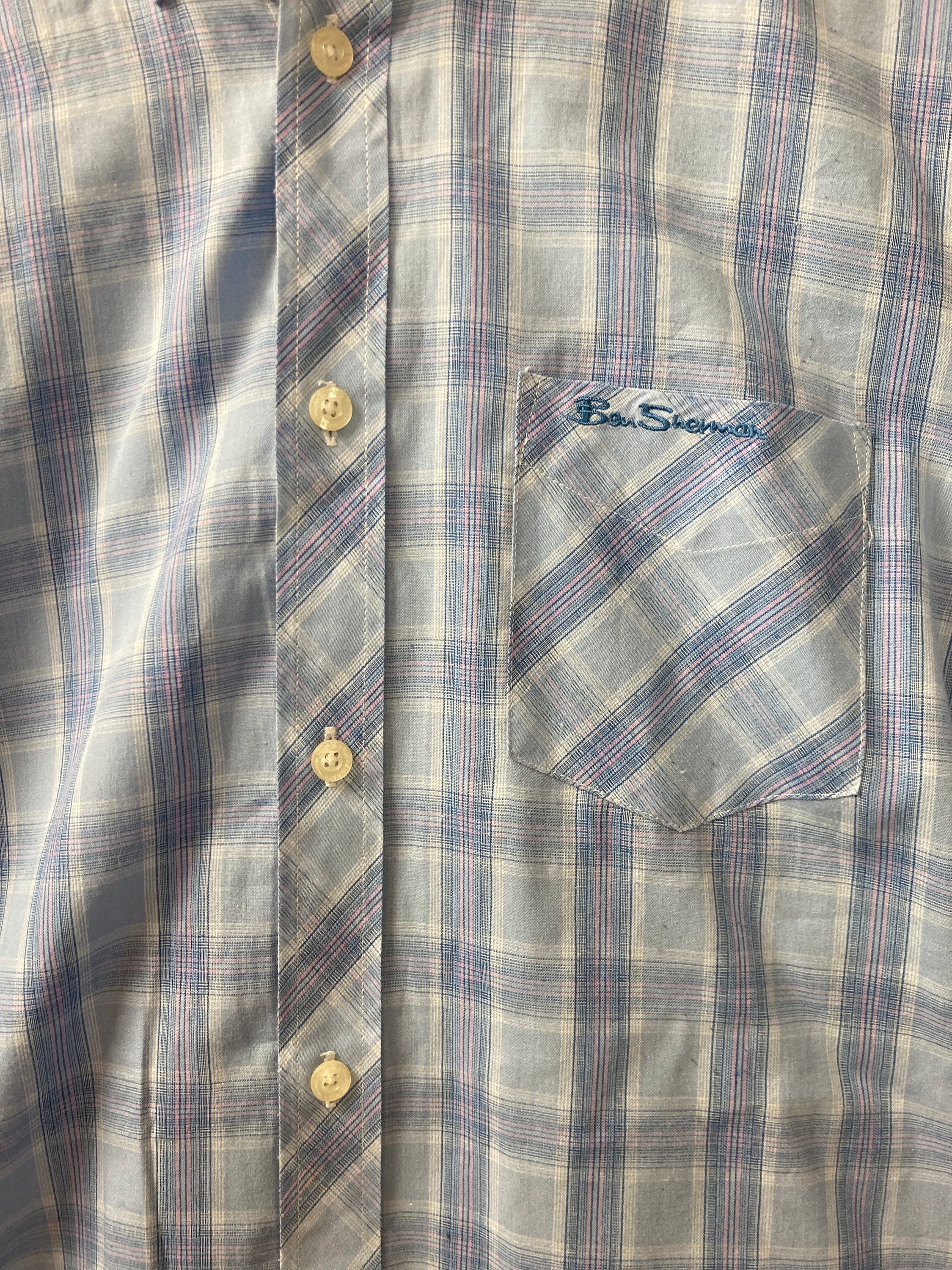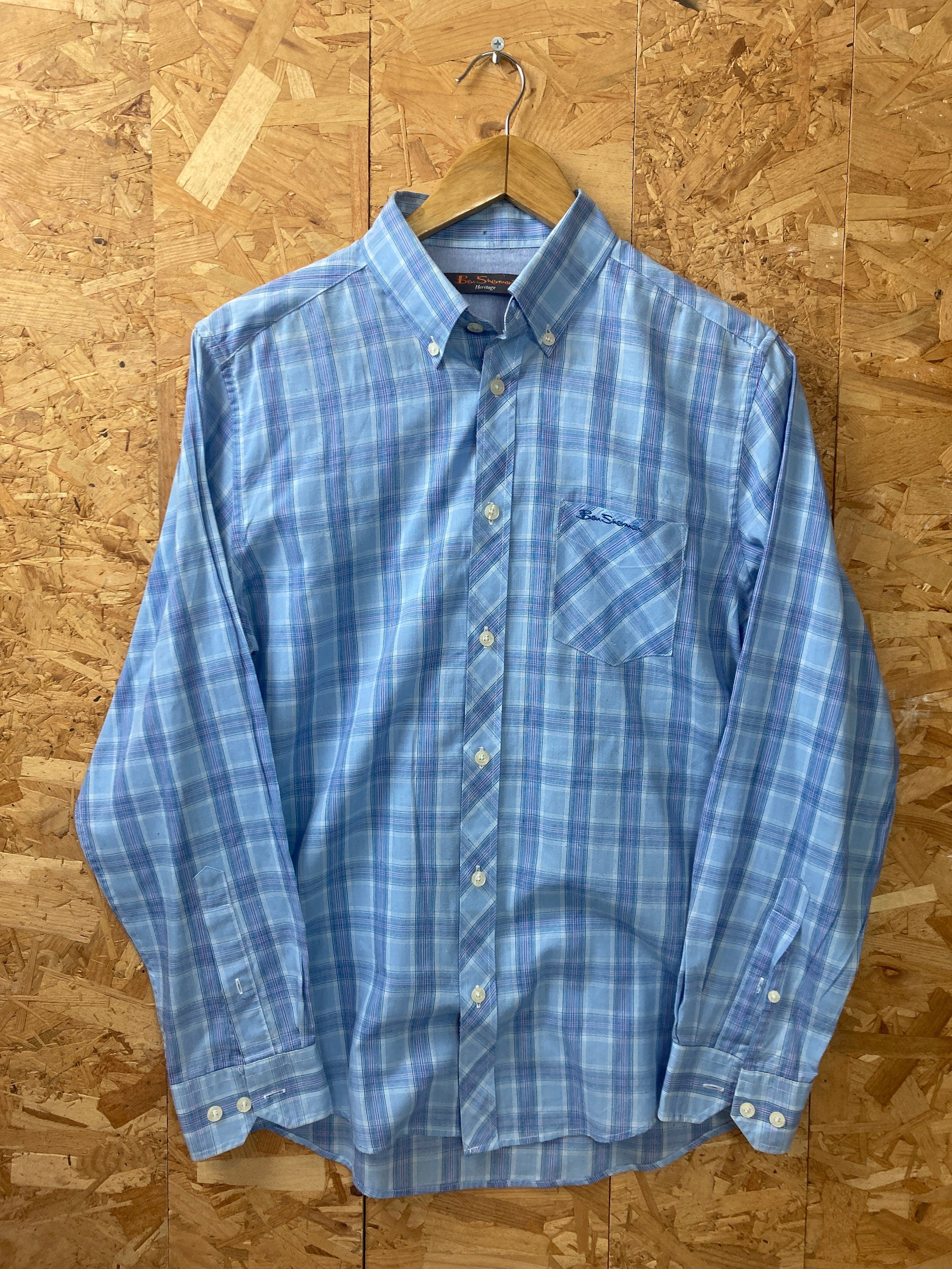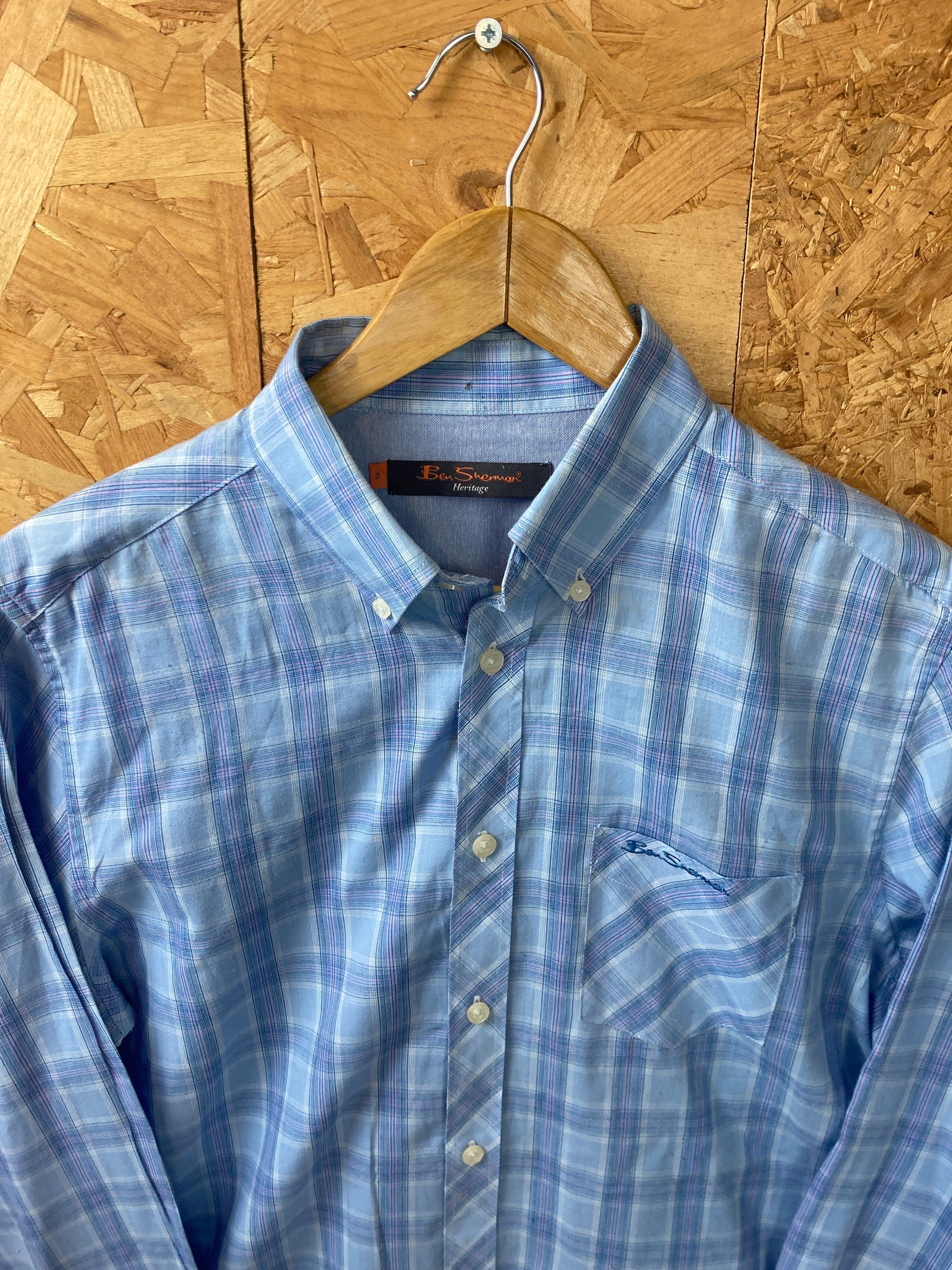 Vintage Ben Sherman mid light blue tablecloth check long sleeve Mod skinhead retro punk shirt size small