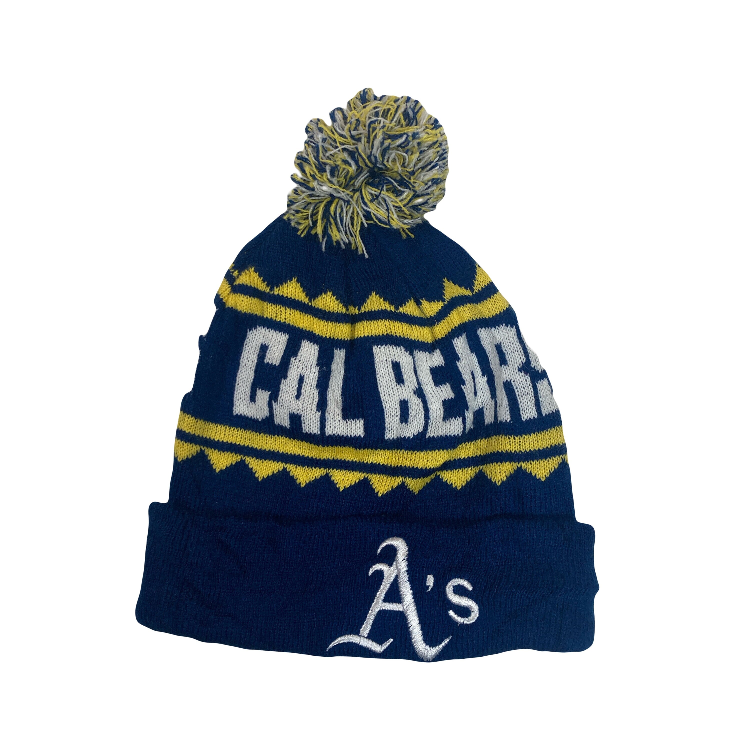 Vintage California Golden Bears football team spell out blue yellow winter beanie bobble hat