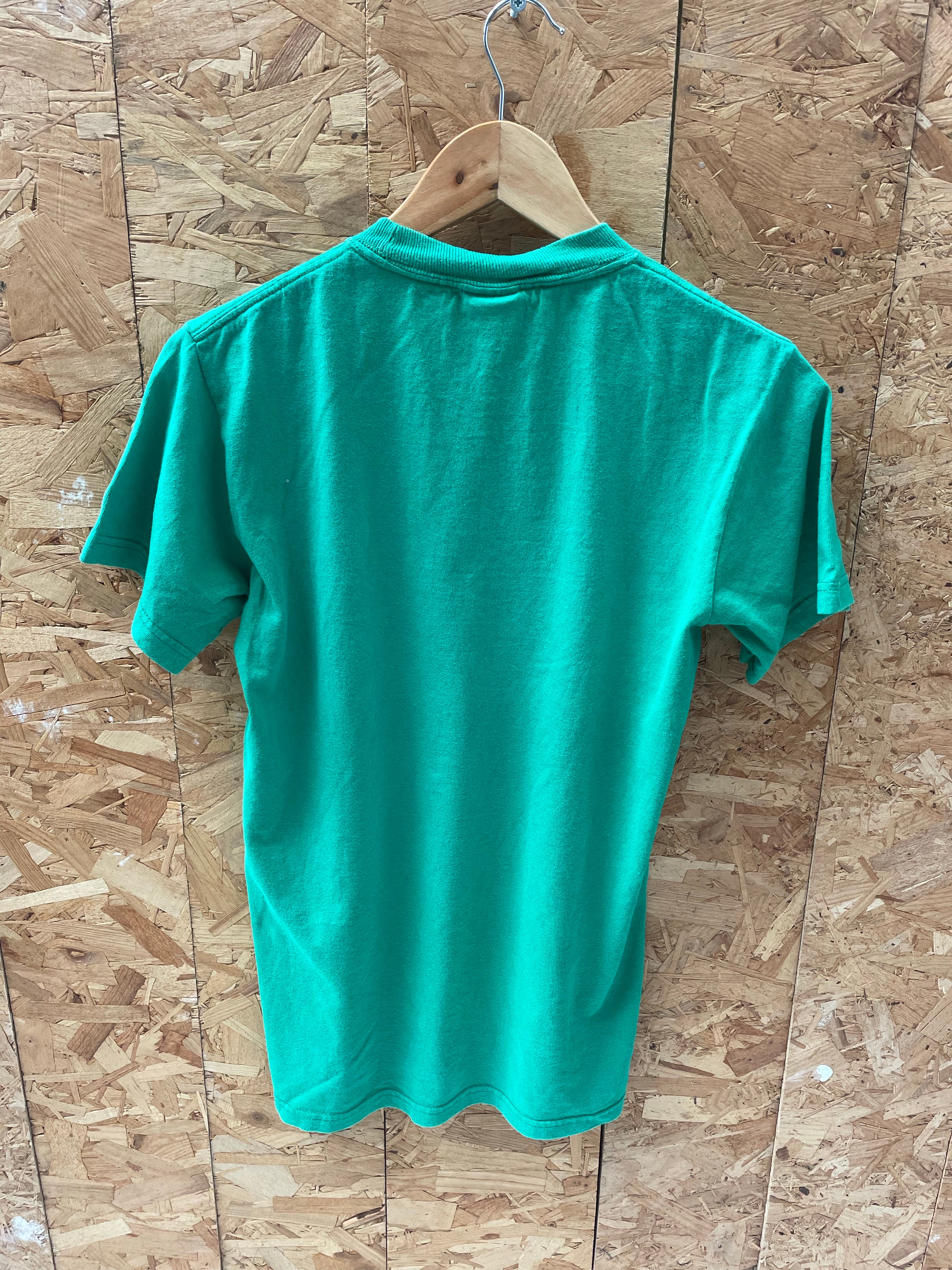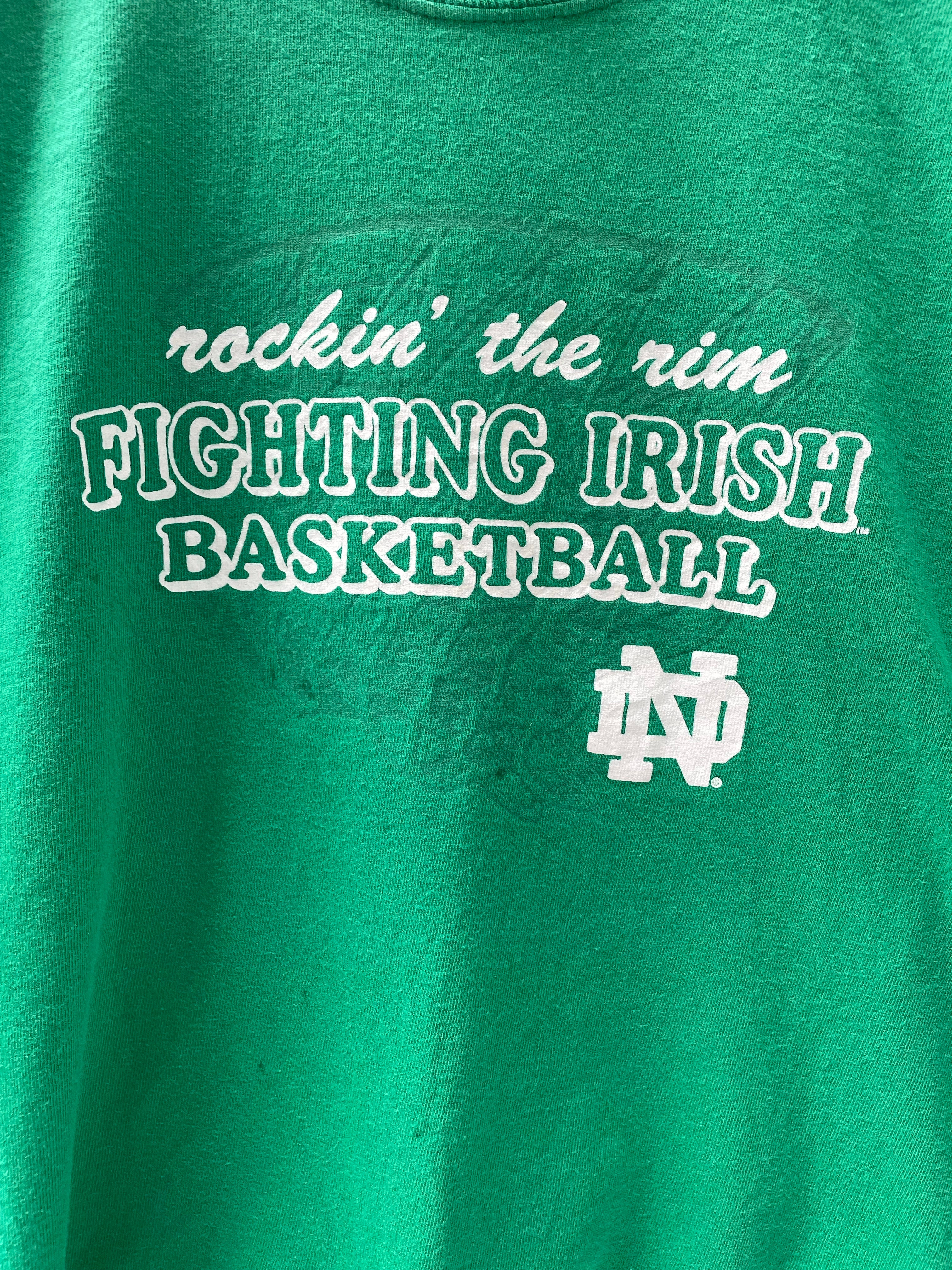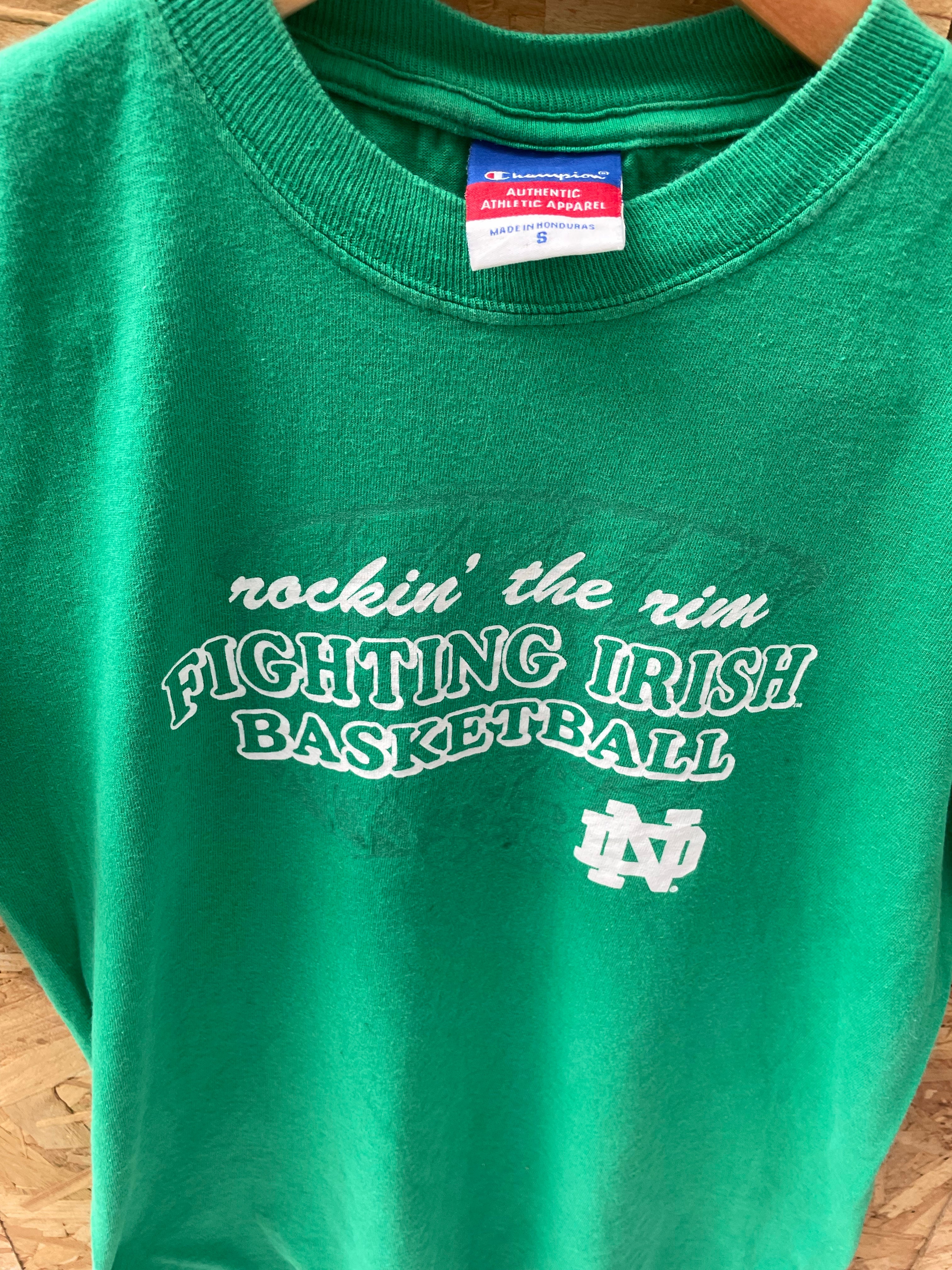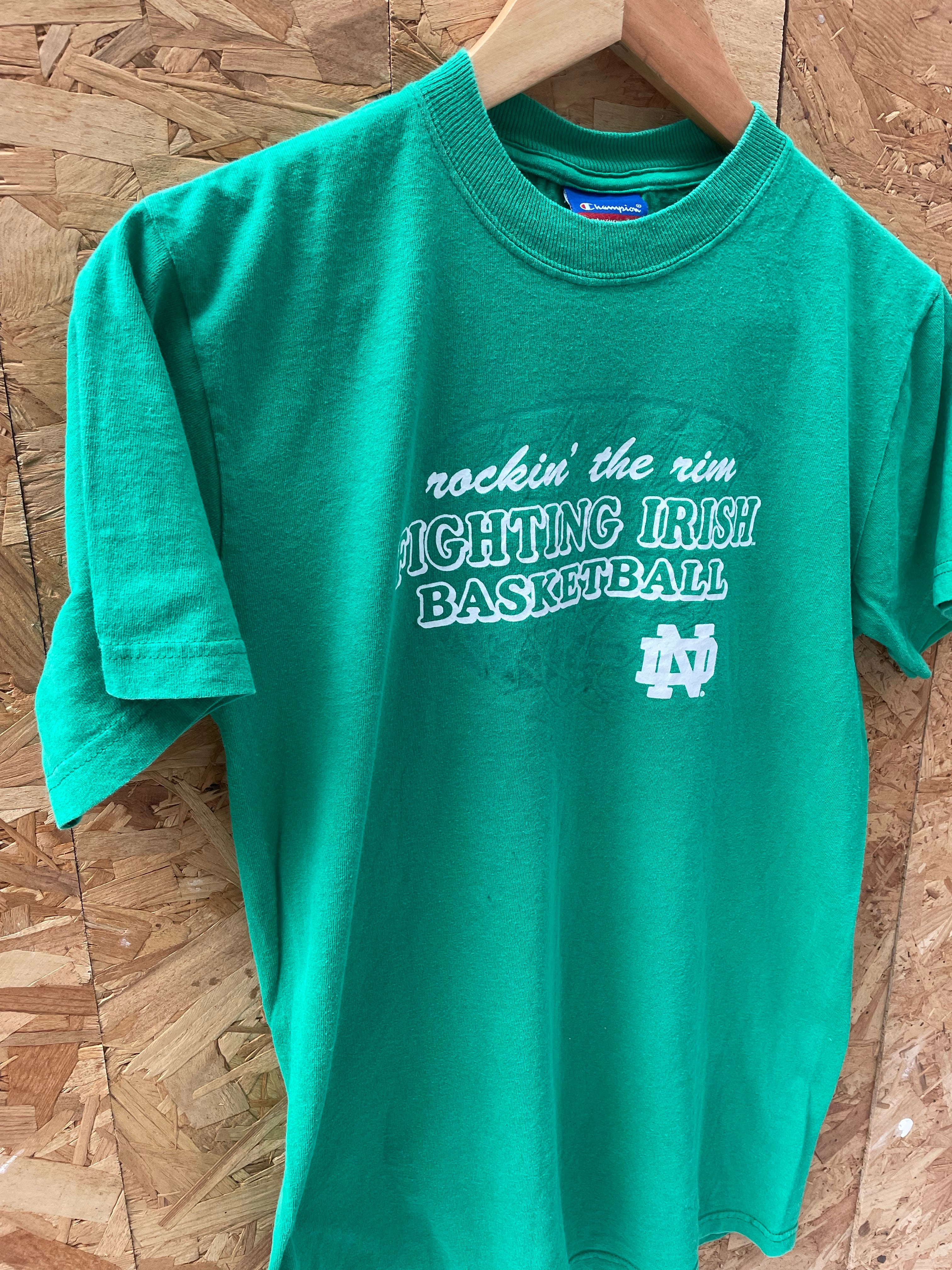 Vintage Champion Notre Dame Fighting Irish Basketball t-shirt. Green. Features a graphic on the front. Size Small. some minor ghost stains pictured
