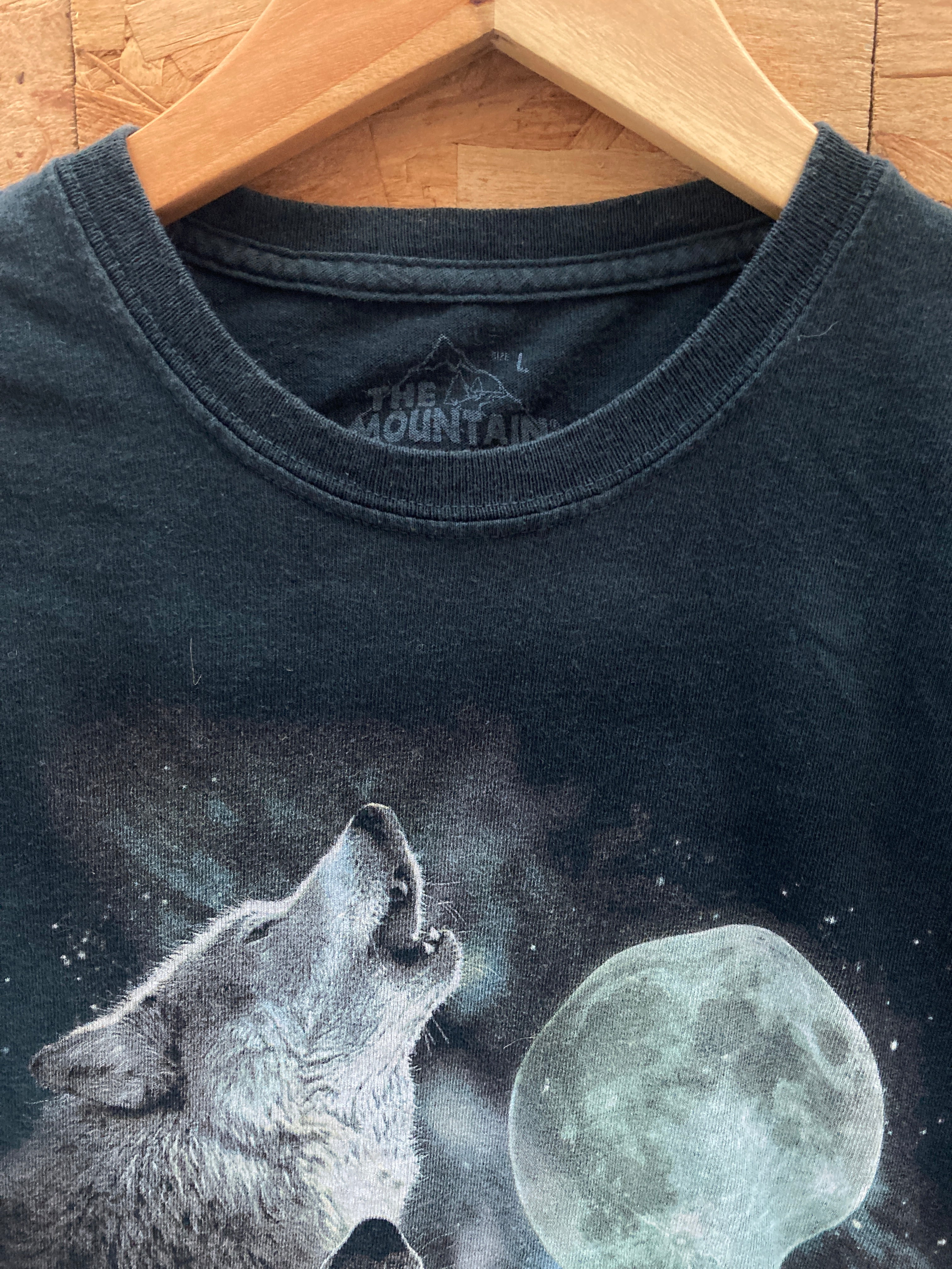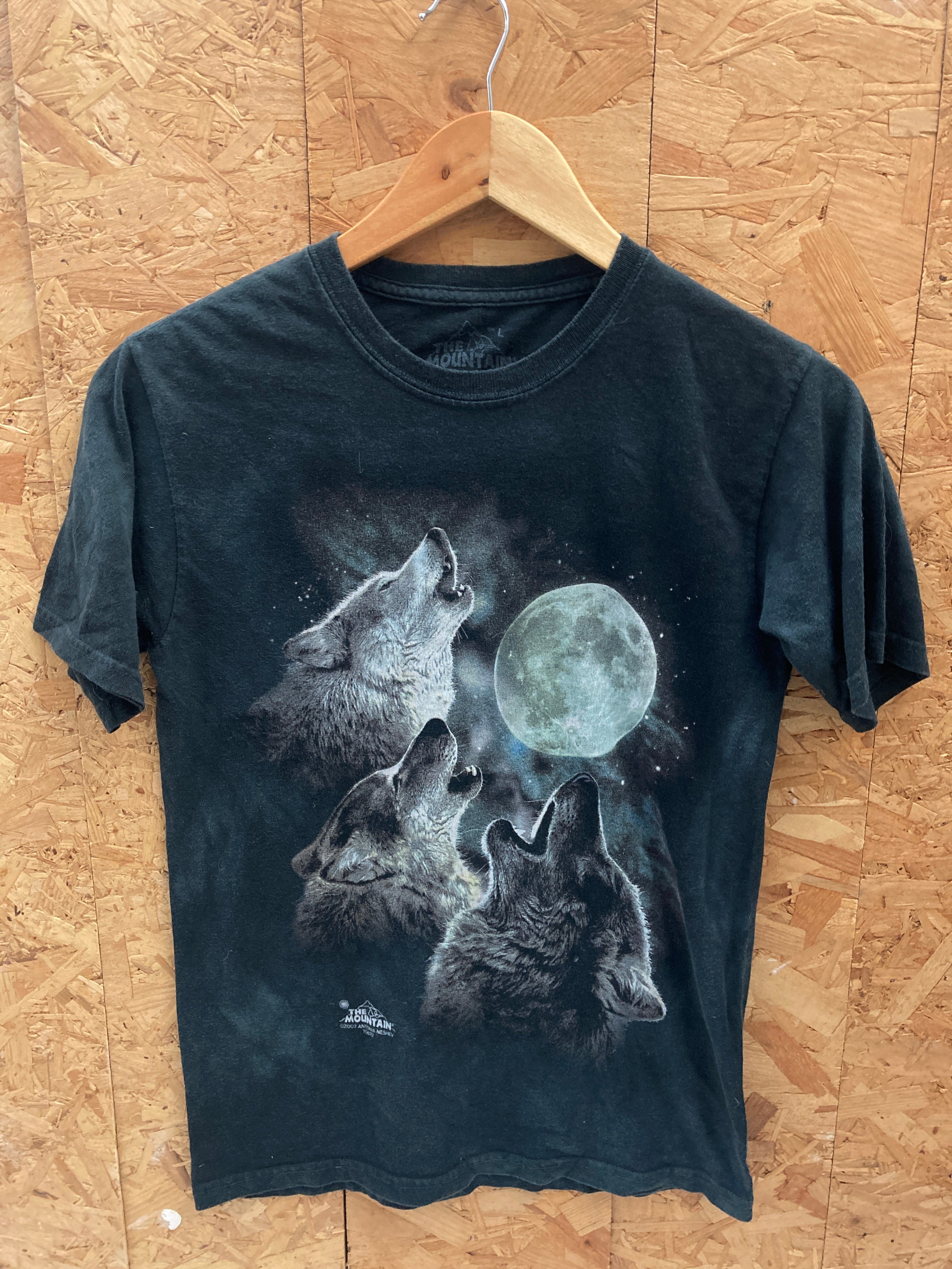 Vintage charcoal tie-dye wolf moonlight t-shirt youth size large by The Mountain - fits as adult small