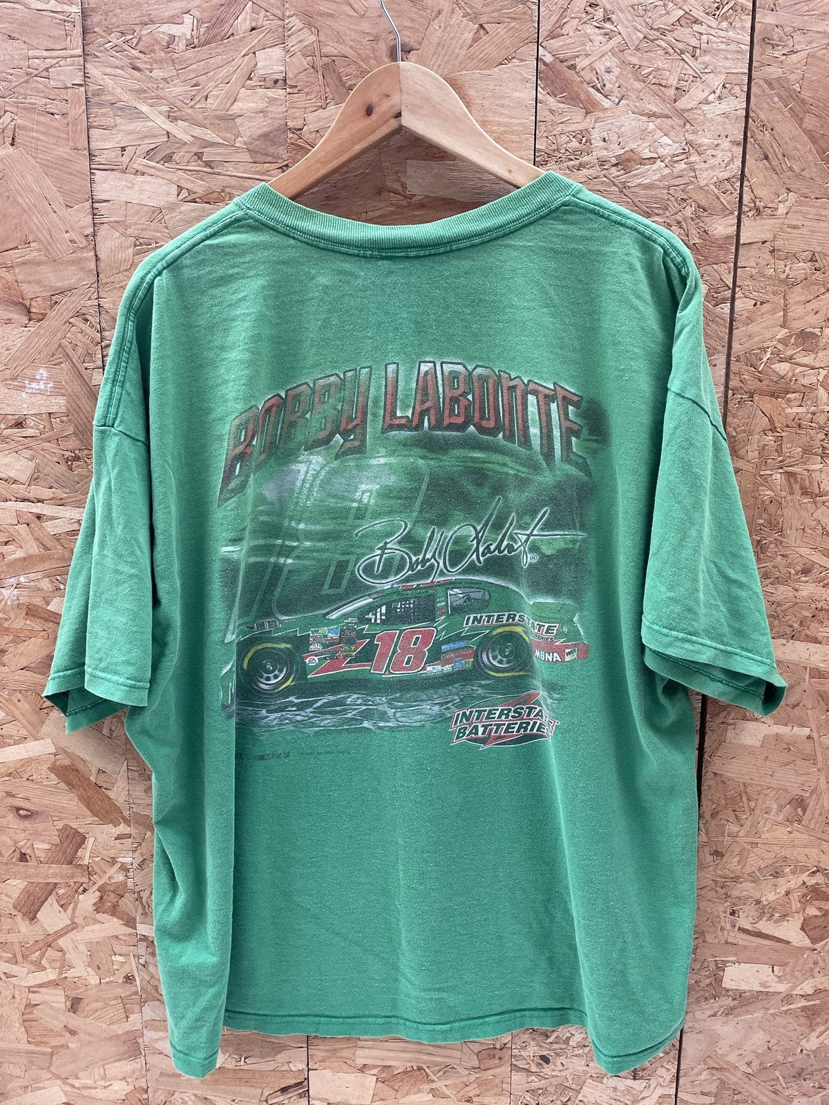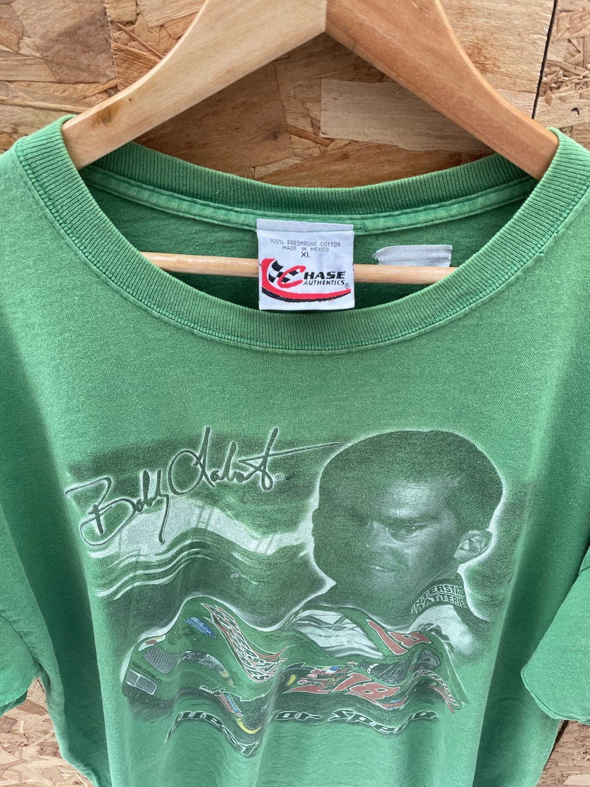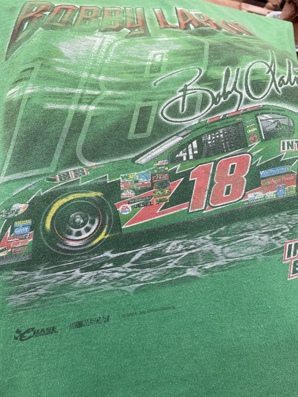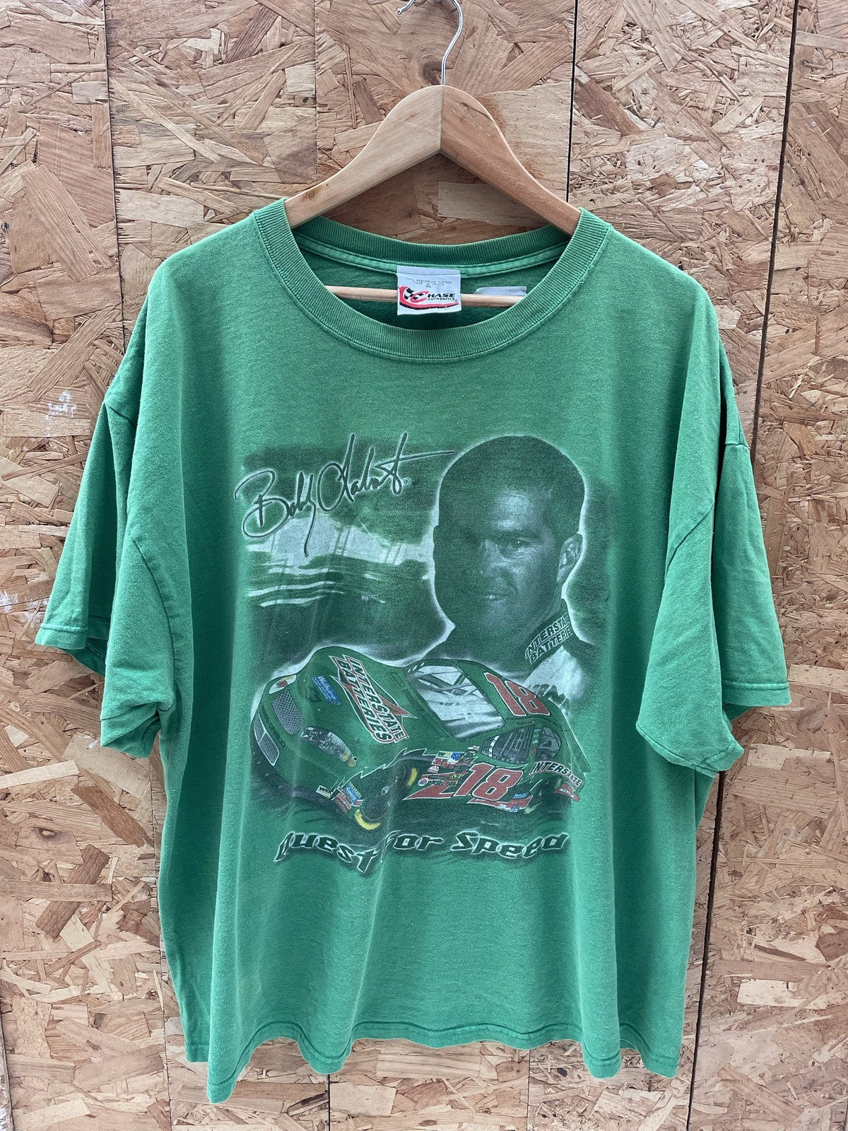 Vintage Chase Authentics t-shirt featuring NASCAR driver Bobby Labonte and his #18 car. "Quest for Speed" graphic. Made from 100% pre-shrunk cotton. A must-have for any Nascar fan!