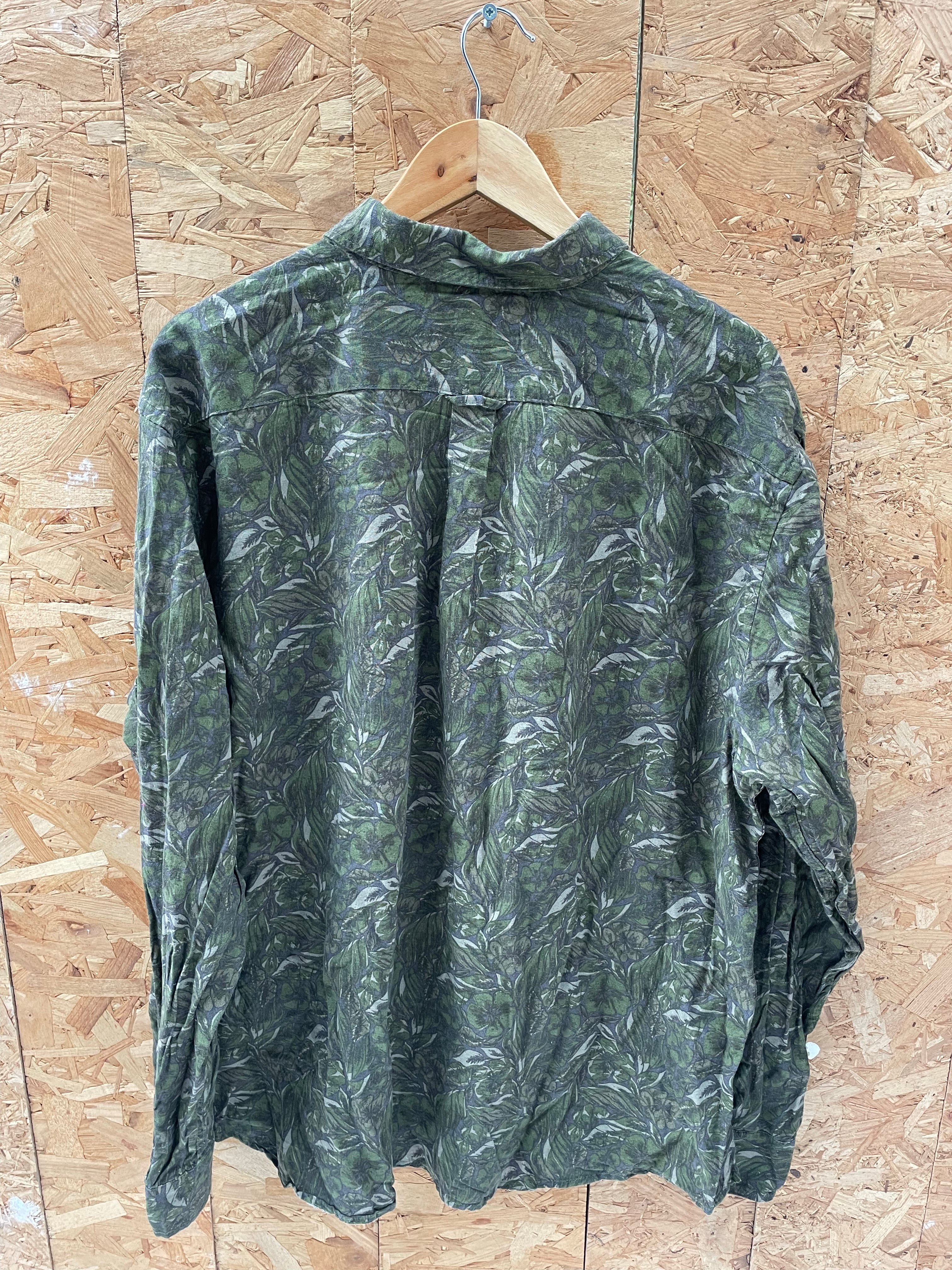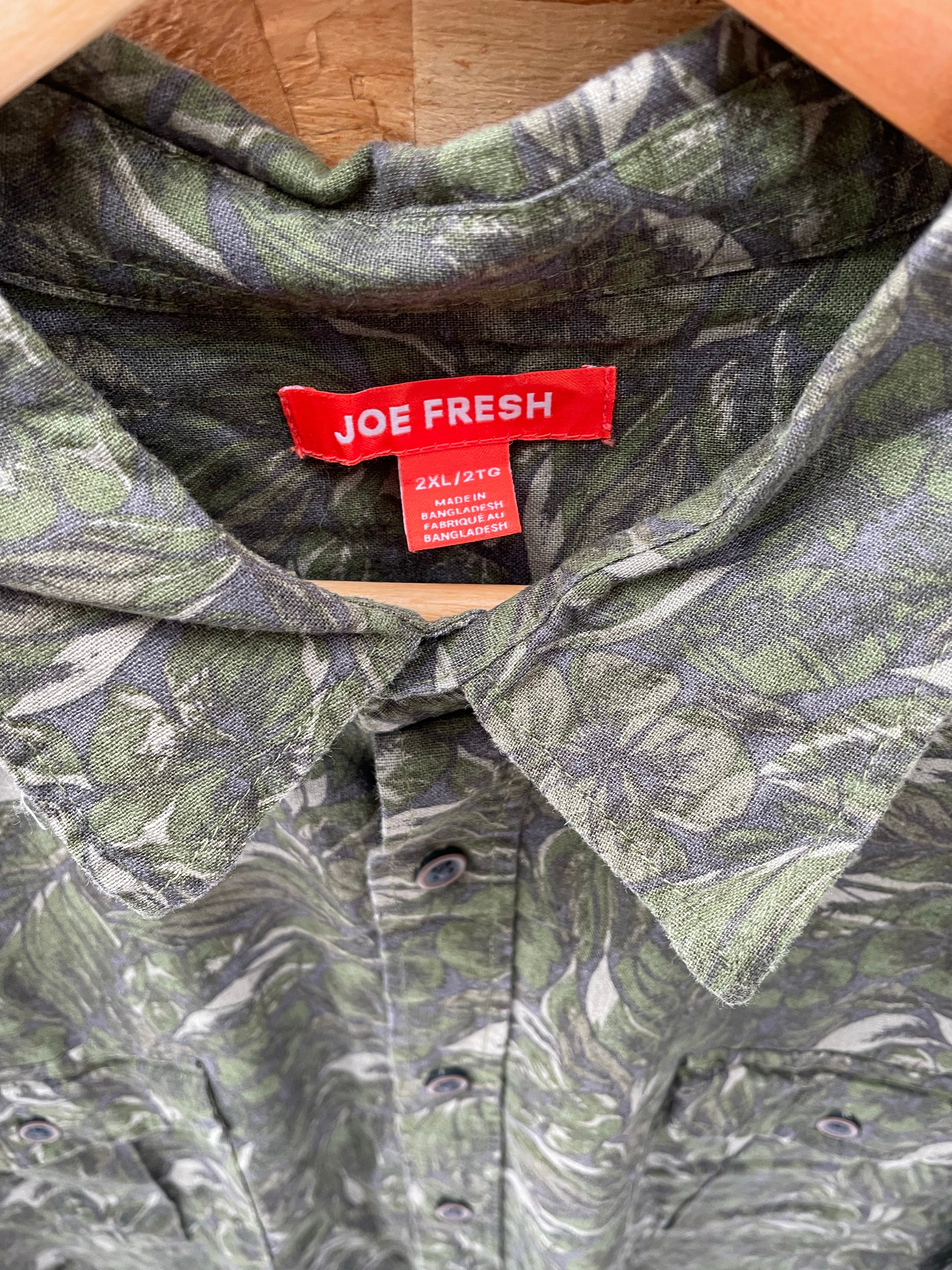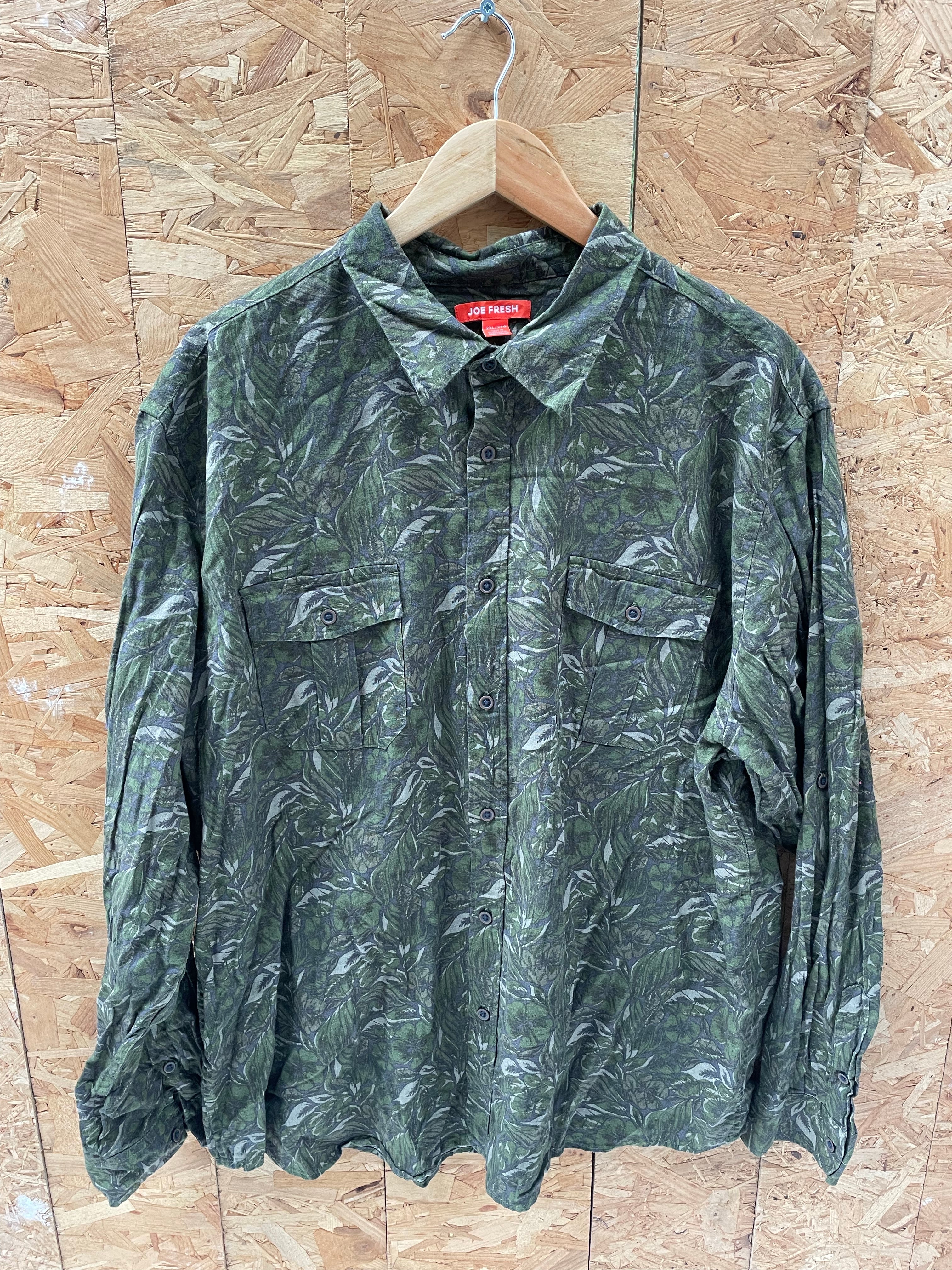 Joe Fresh men's long sleeve button-down shirt. Size 2XL. Green floral print. Excellent condition. Two chest pockets. brushed cotton Color: Green.