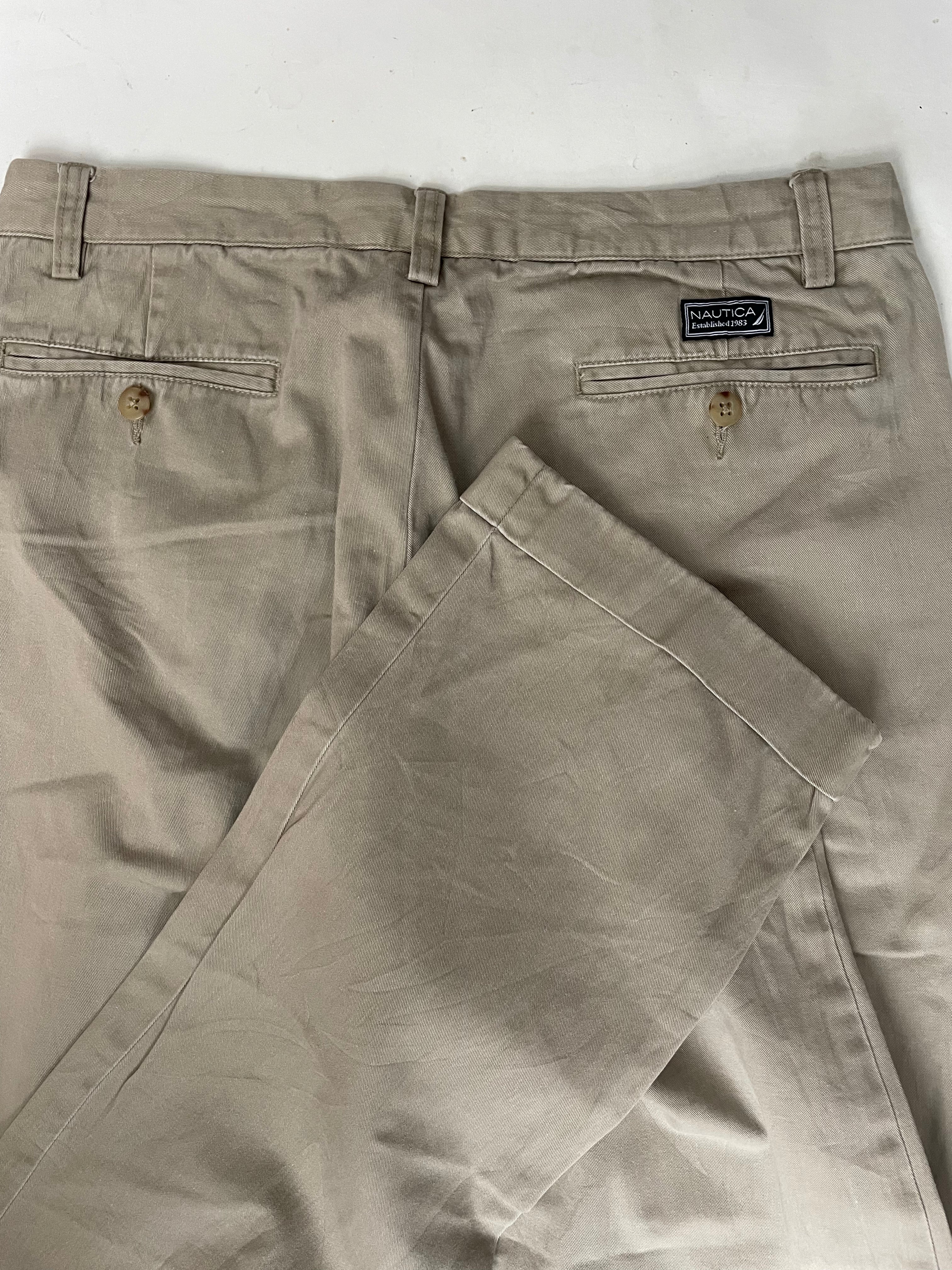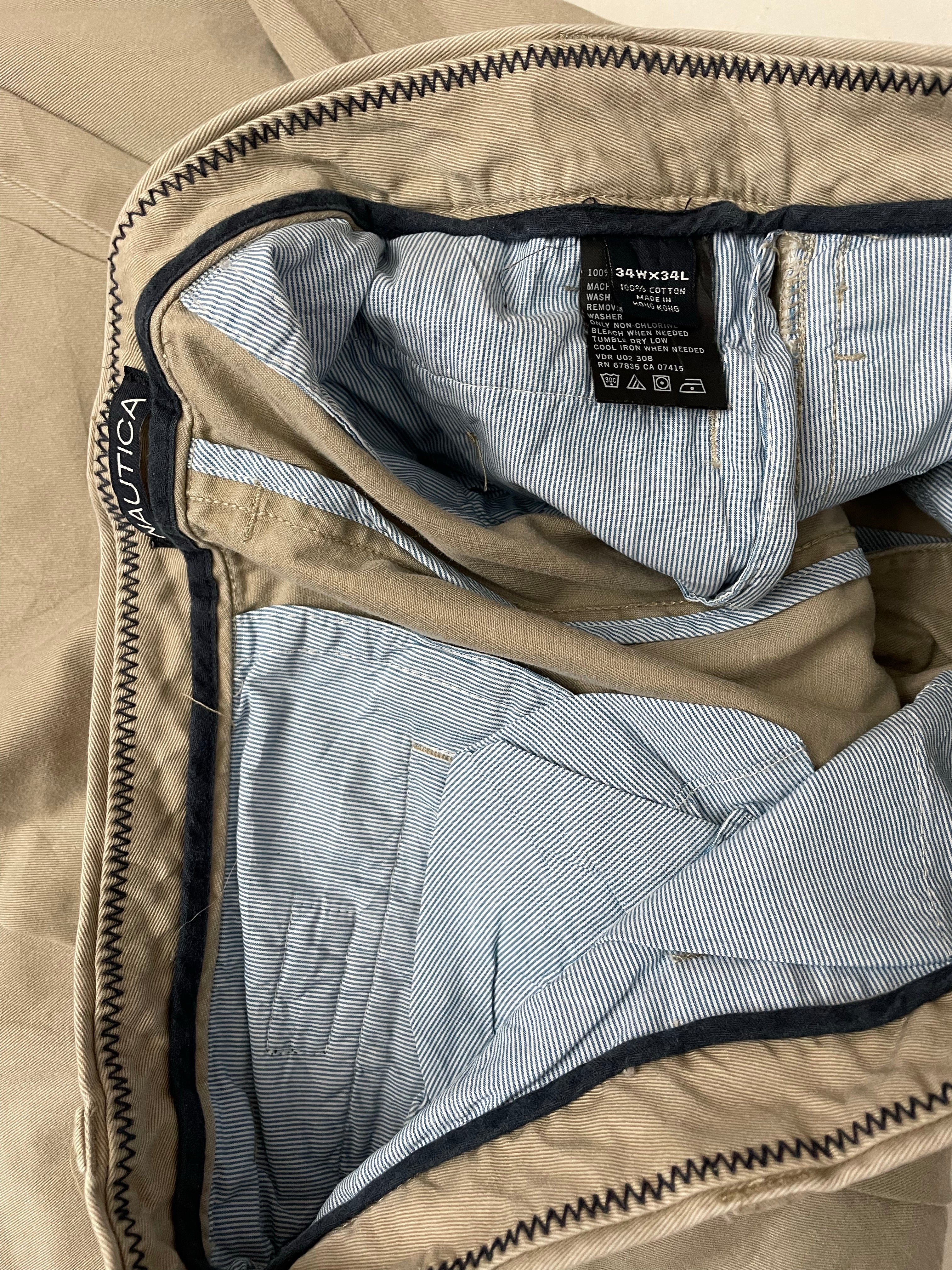 Nautica men's khaki casual pants, size 34x34. Good condition, classic style. Flat front, cuffed bottoms. Perfect for everyday wear. Color: Khaki.