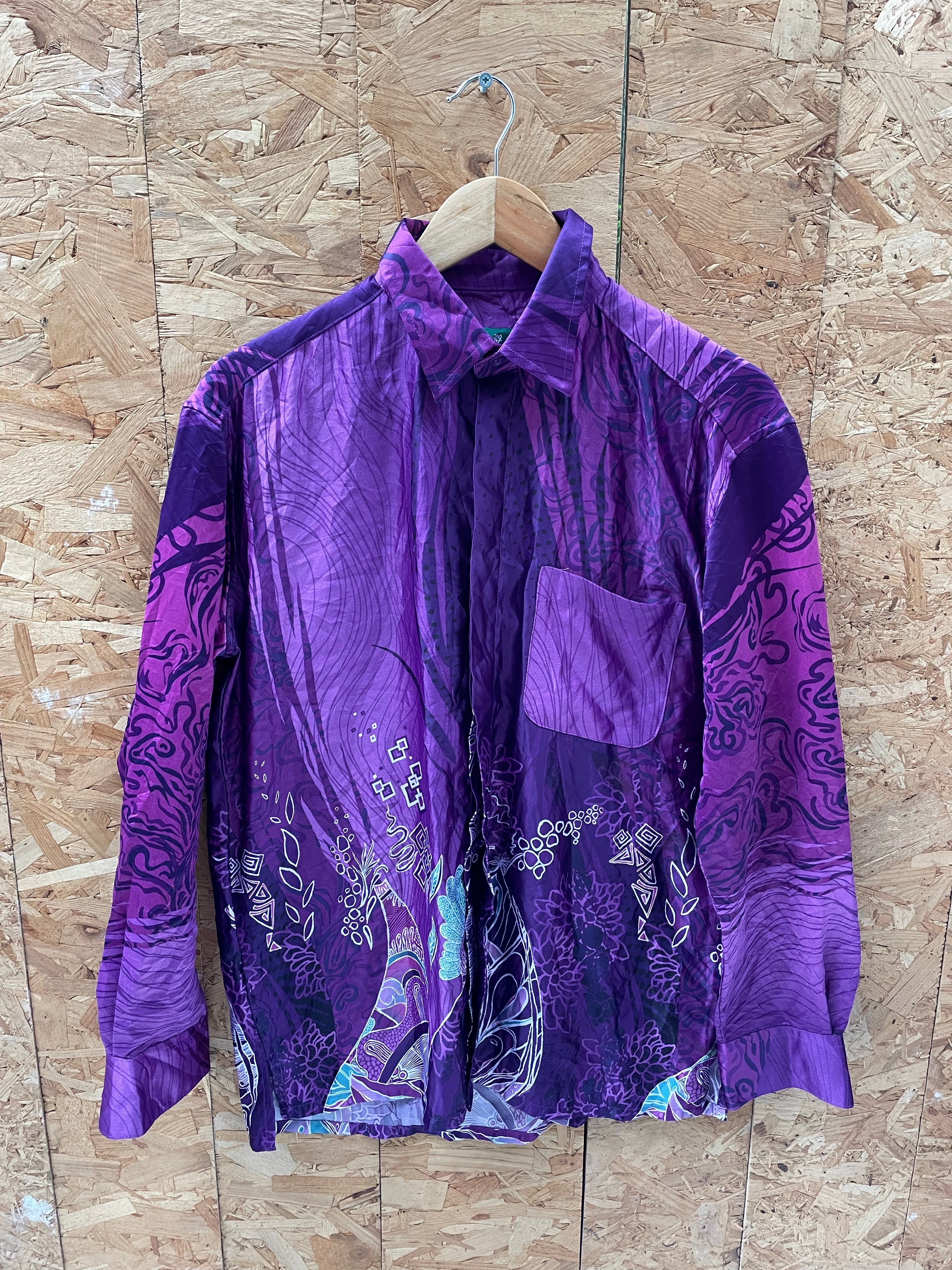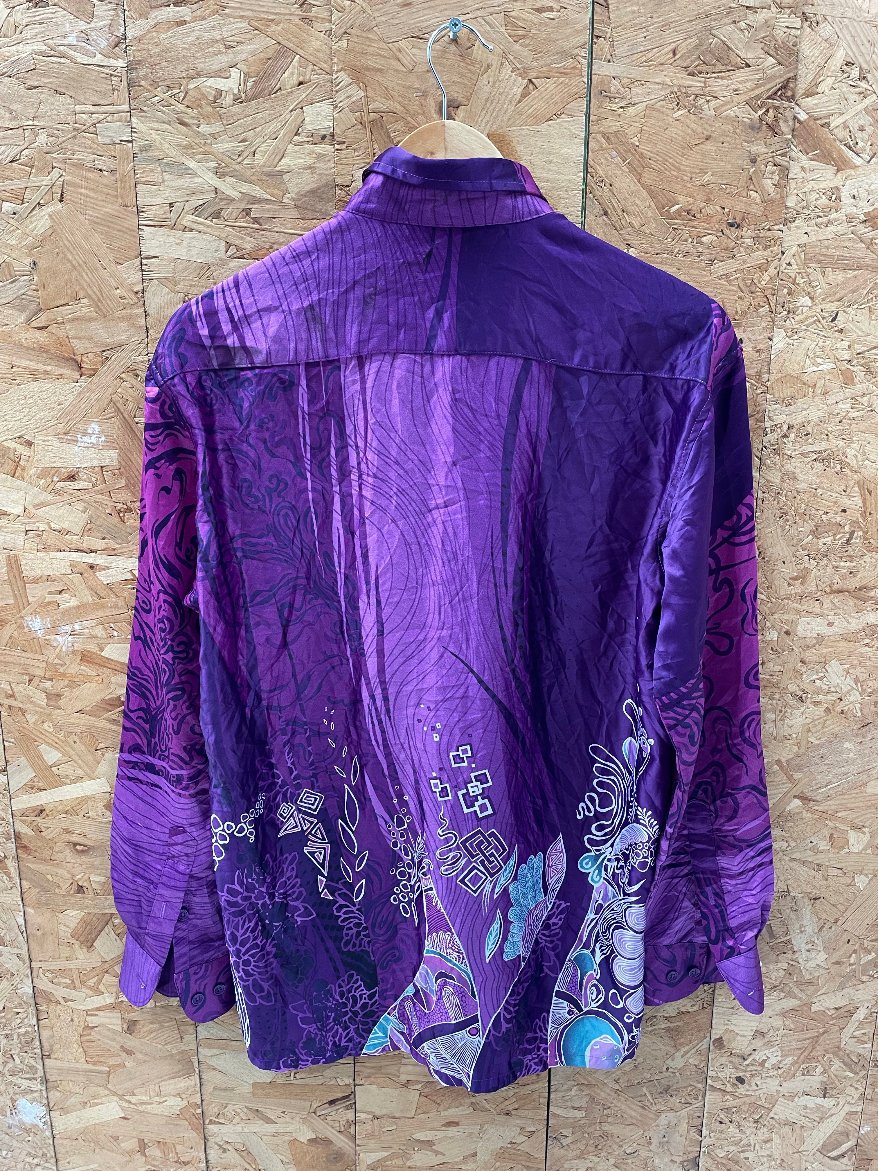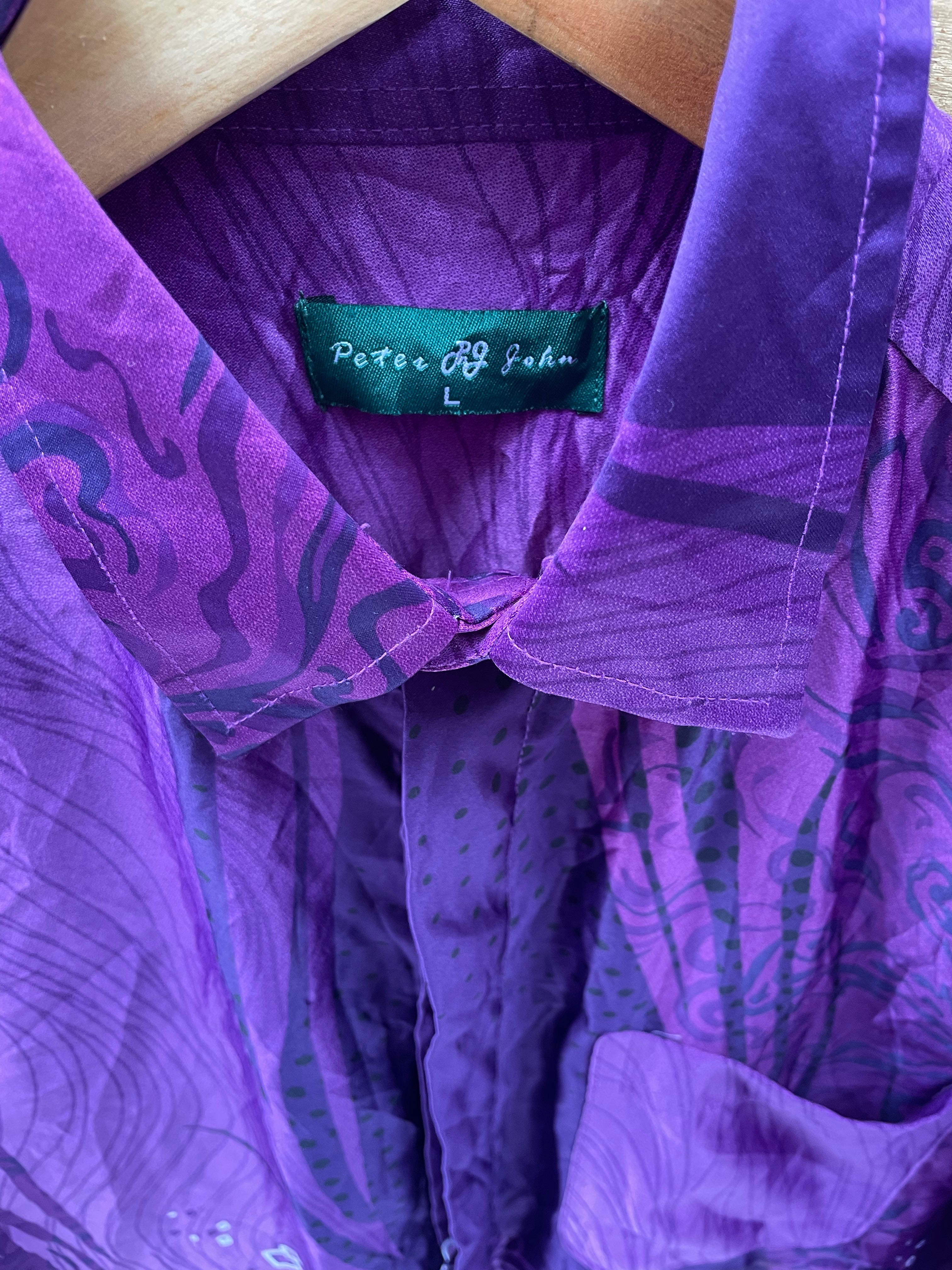 Peter John long sleeve button up shirt. Size L. Purple with eccentric abstract print. Long sleeves, collared shirt. Polyester Color: Purple.