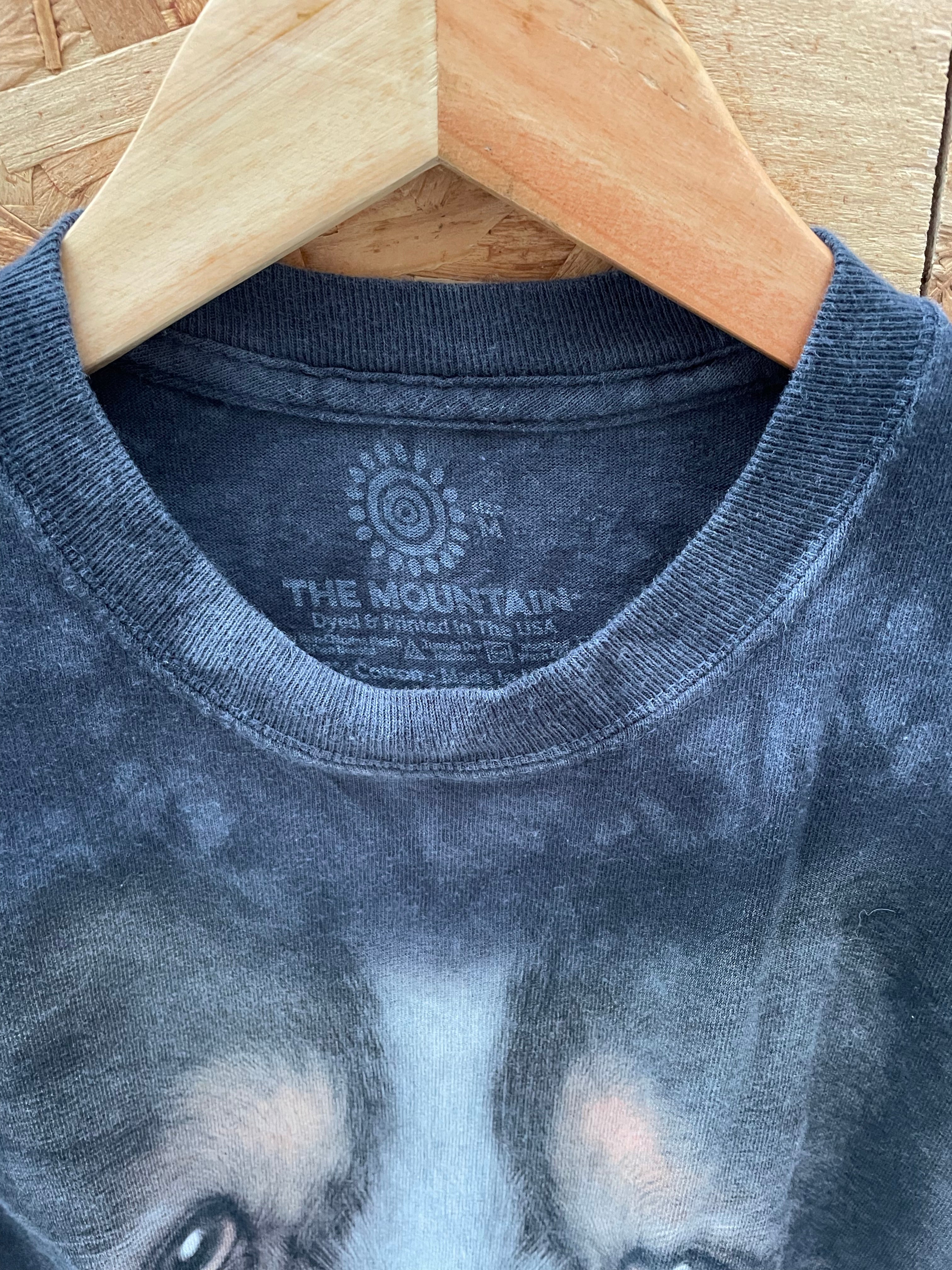 This is a unique tie-dye t-shirt from The Mountain featuring a realistic dog face graphic. The shirt is a size Large and has a comfortable, relaxed fit. Perfect for animal lovers and fans of graphic tees. True vintage condition, small hole on sleeve hard to notice.