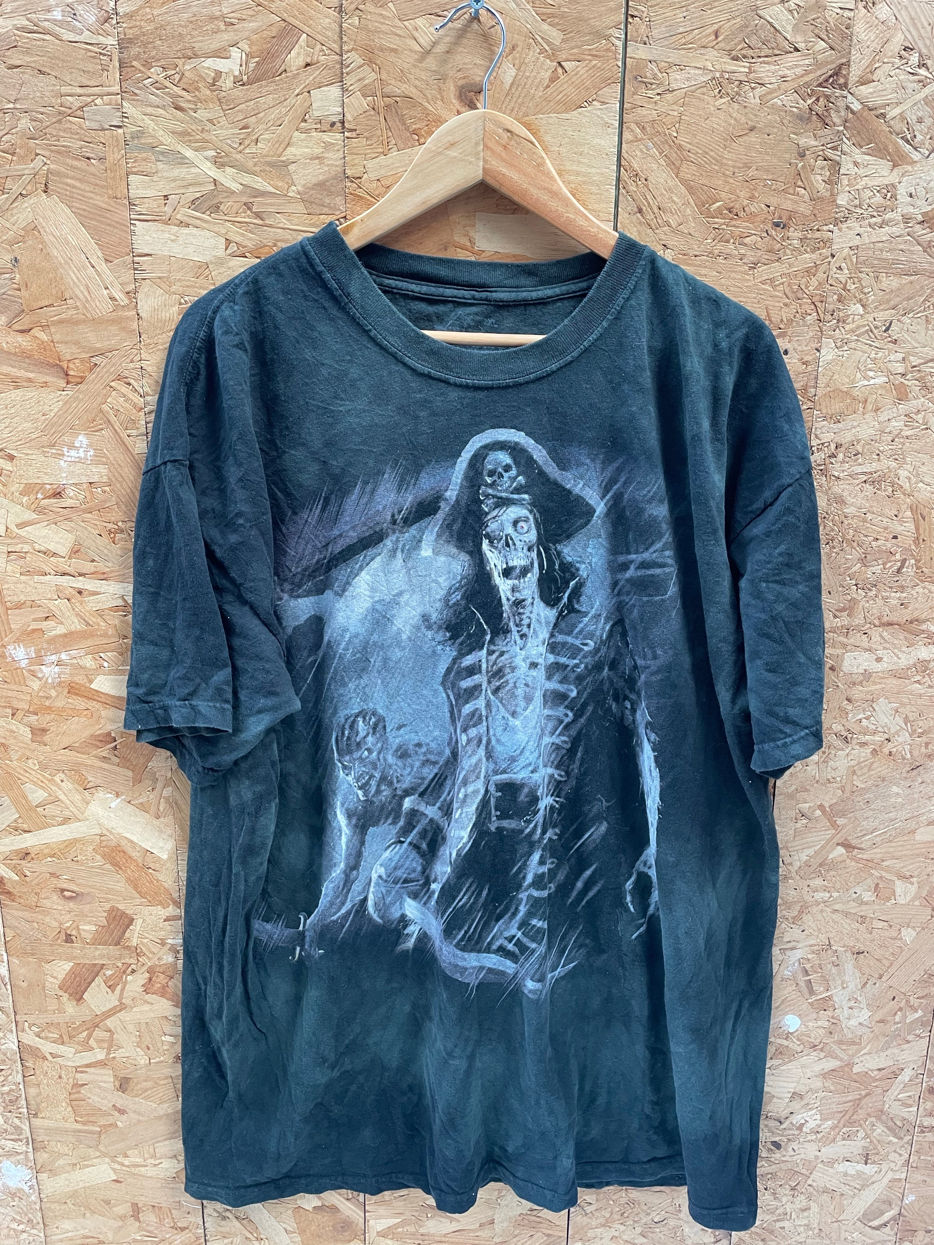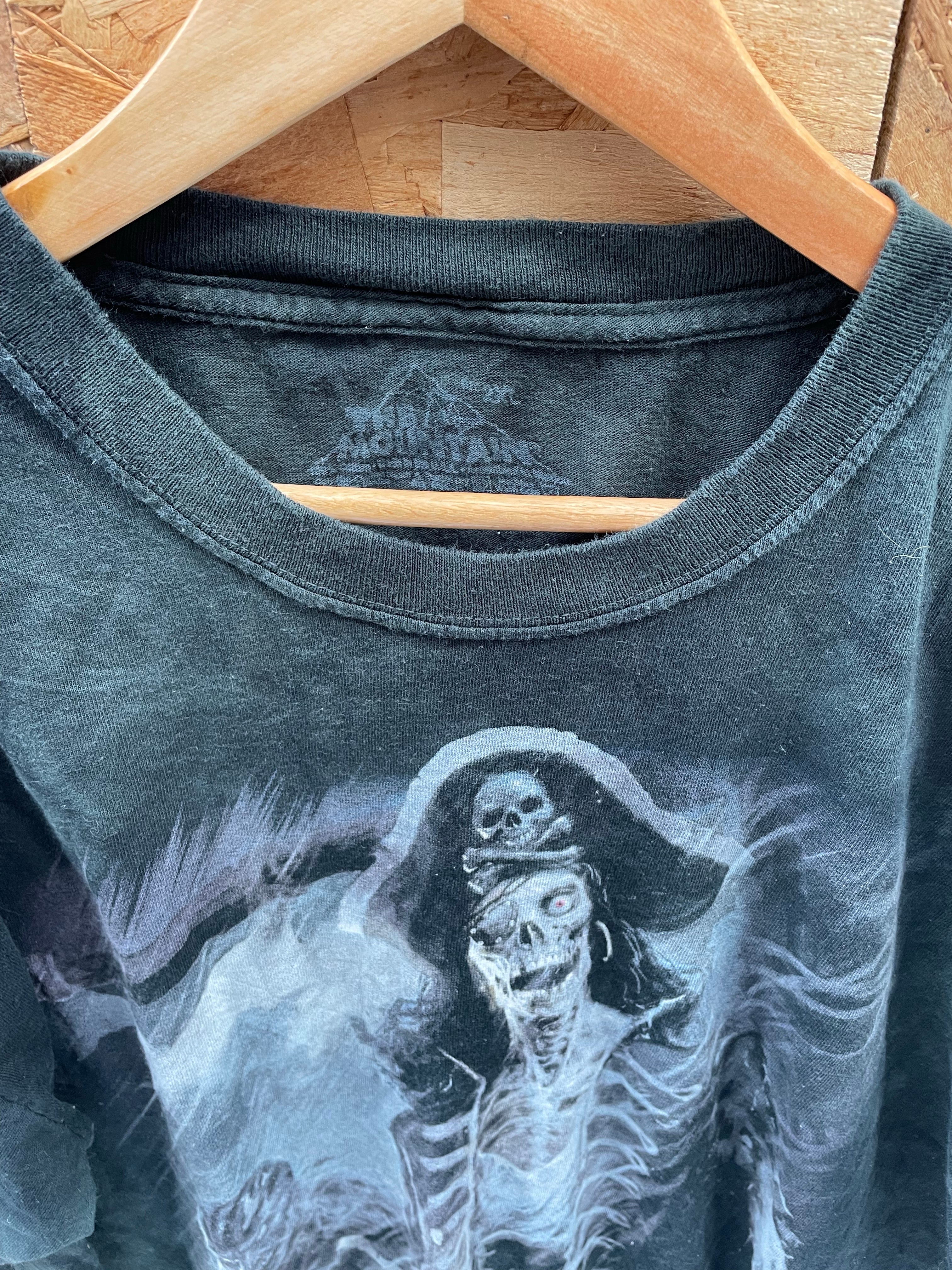 Vintage The Mountain dark green t-shirt featuring a cool pirate graphic. Great Smokey Mountains Tennessee on sleeve. The shirt is in excellent condition and shows minimal wear. Color: Black.
