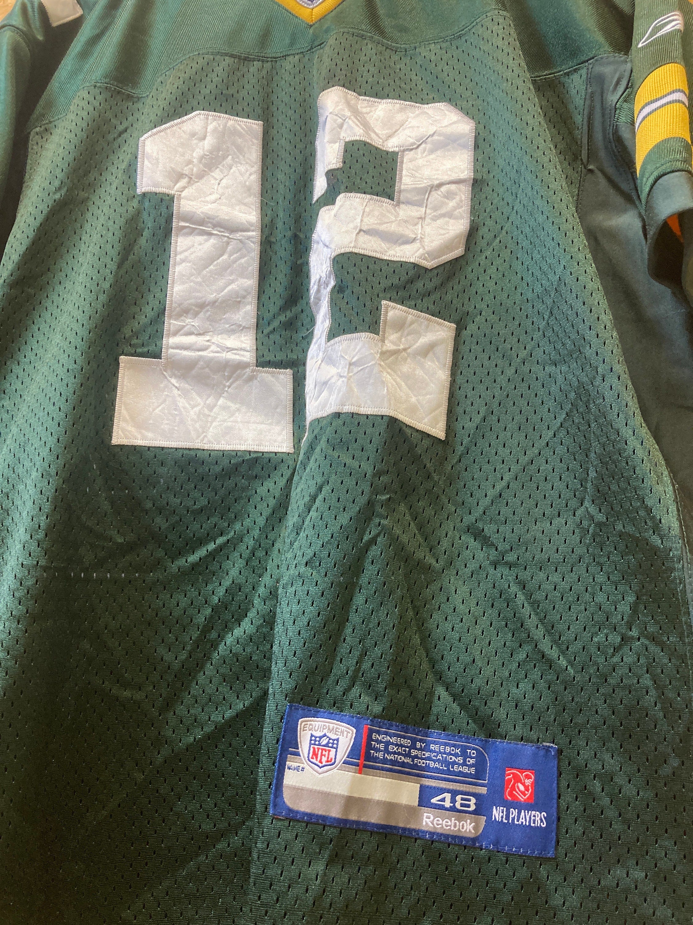 Vintage USA NFL Green Bay packers Aaron Rodgers 12 player jersey green yellow white size 48 by Reebok