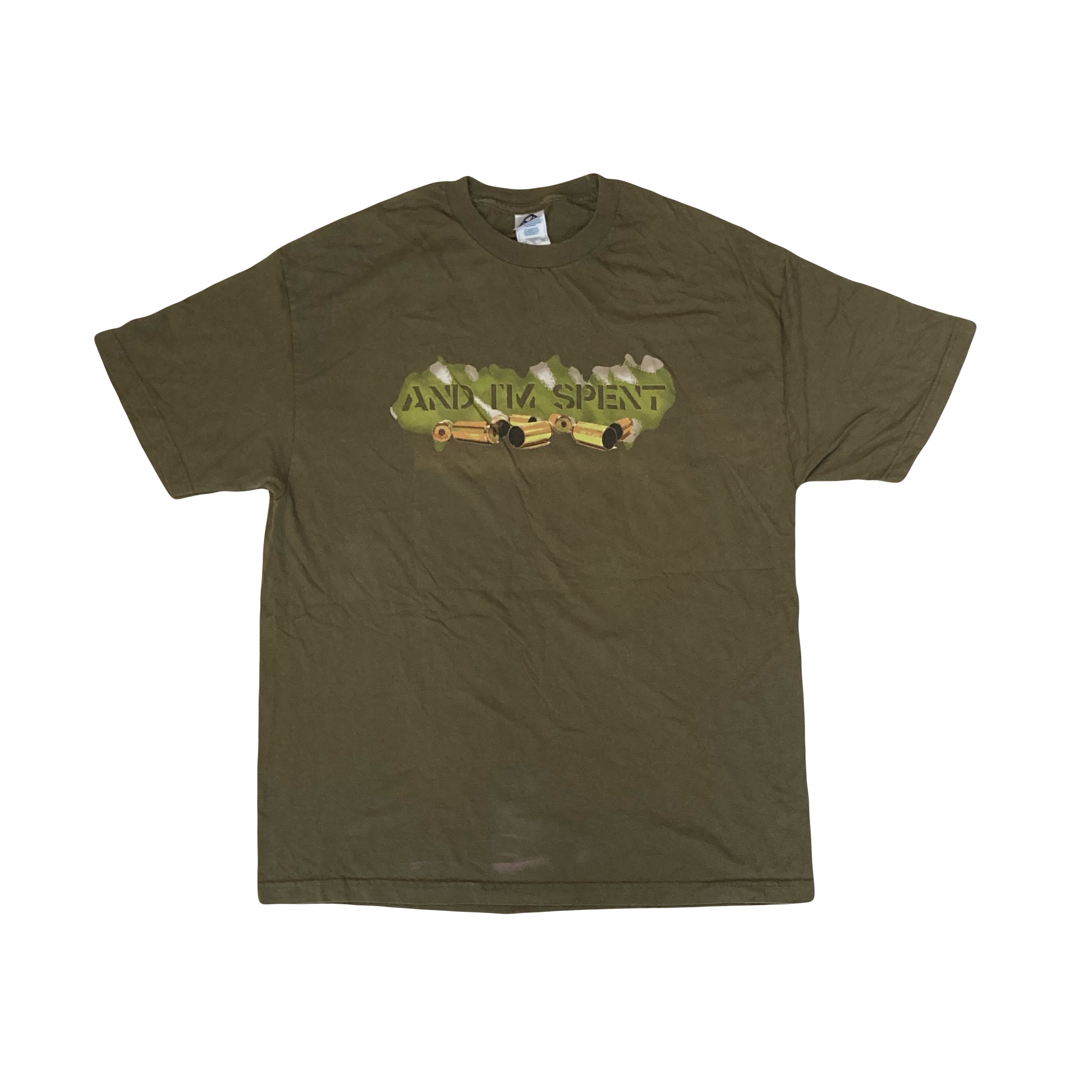 Vintage Y2K And Im Spent olive drab green ammo souvenir t-shirt size XL by Alstyle - sun bleaching/fading on hem