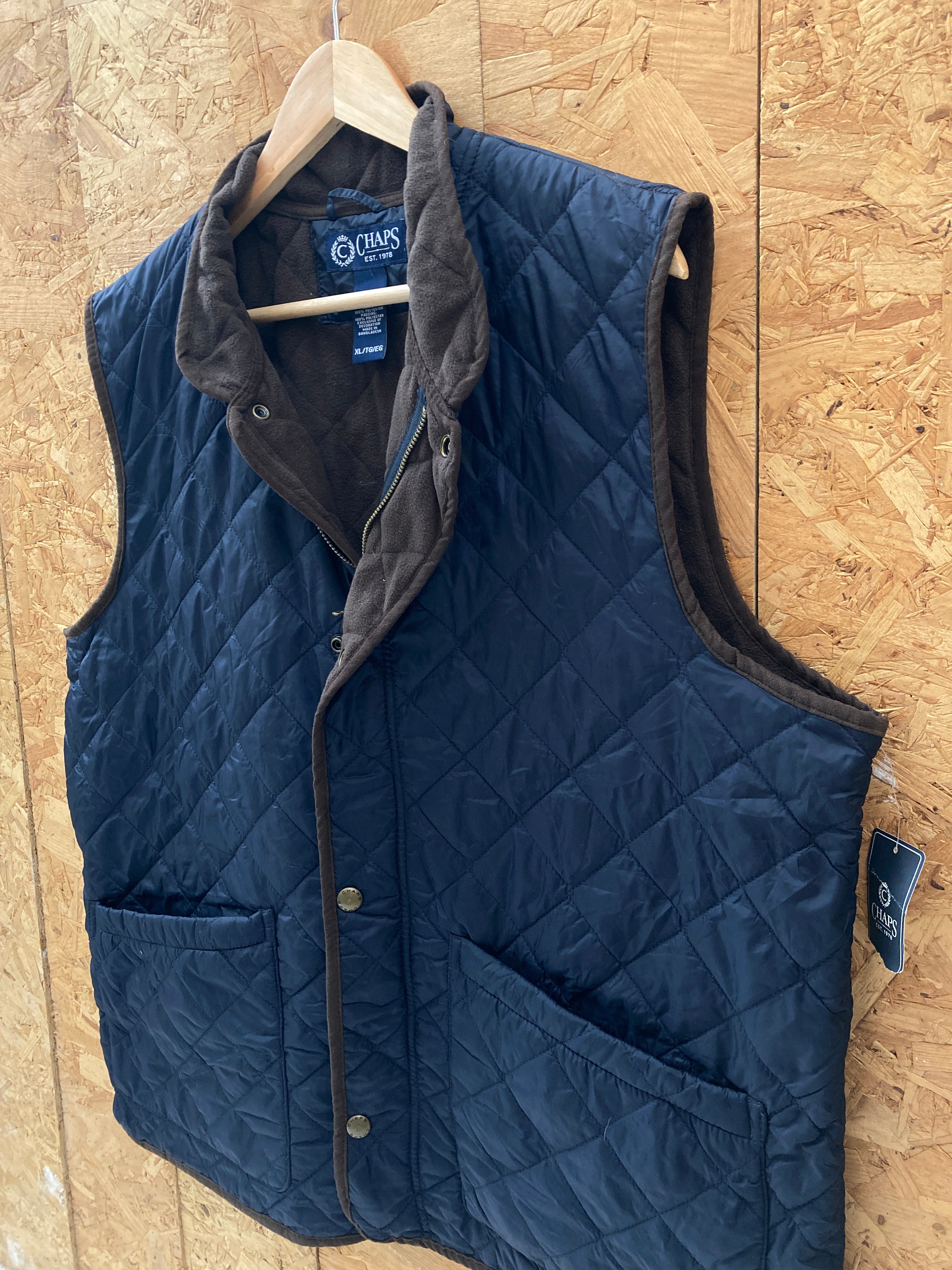 Vintage Y2K Chaps Ralph Lauren quilted fleece lined blue vest gilet size XL