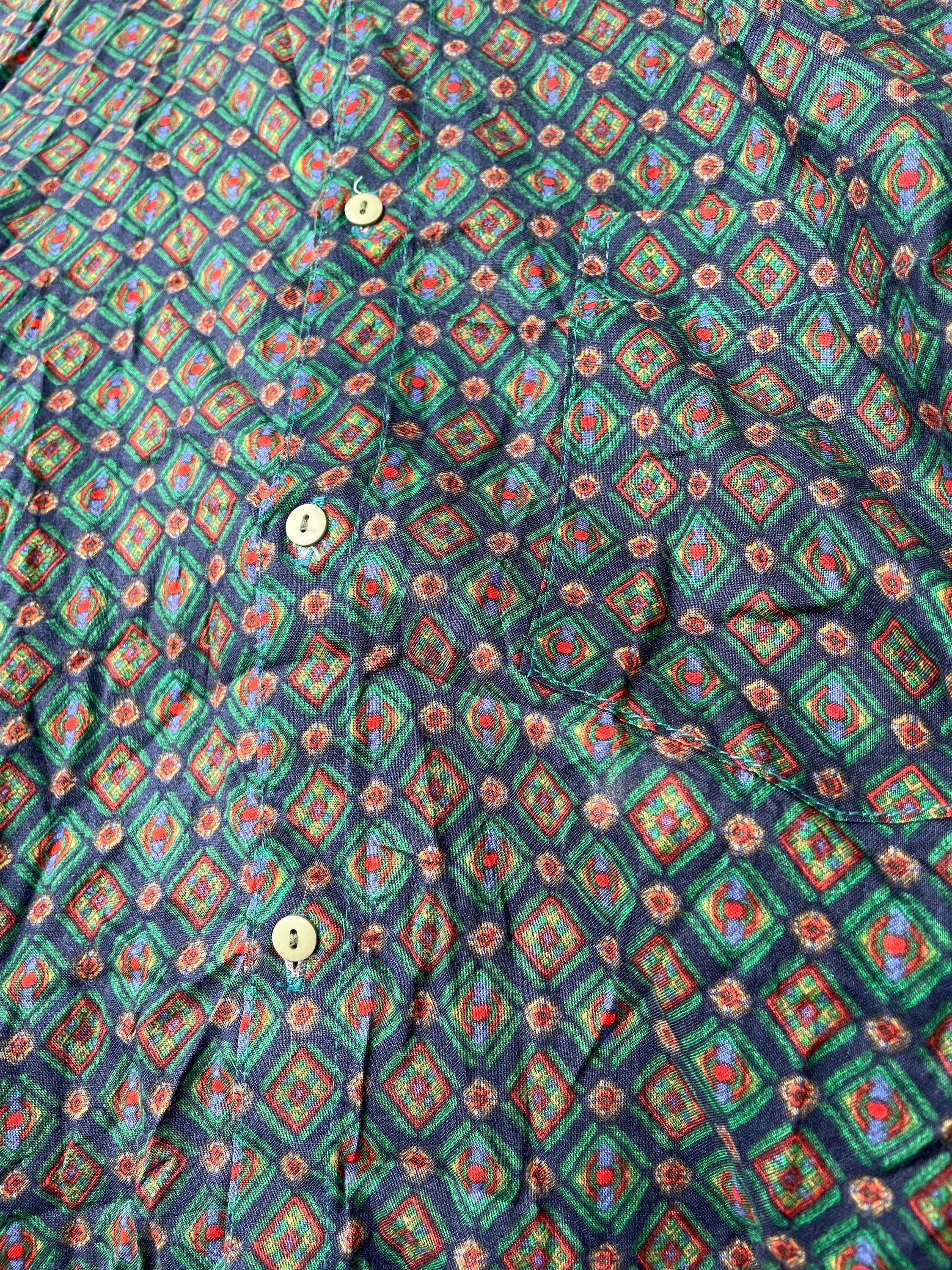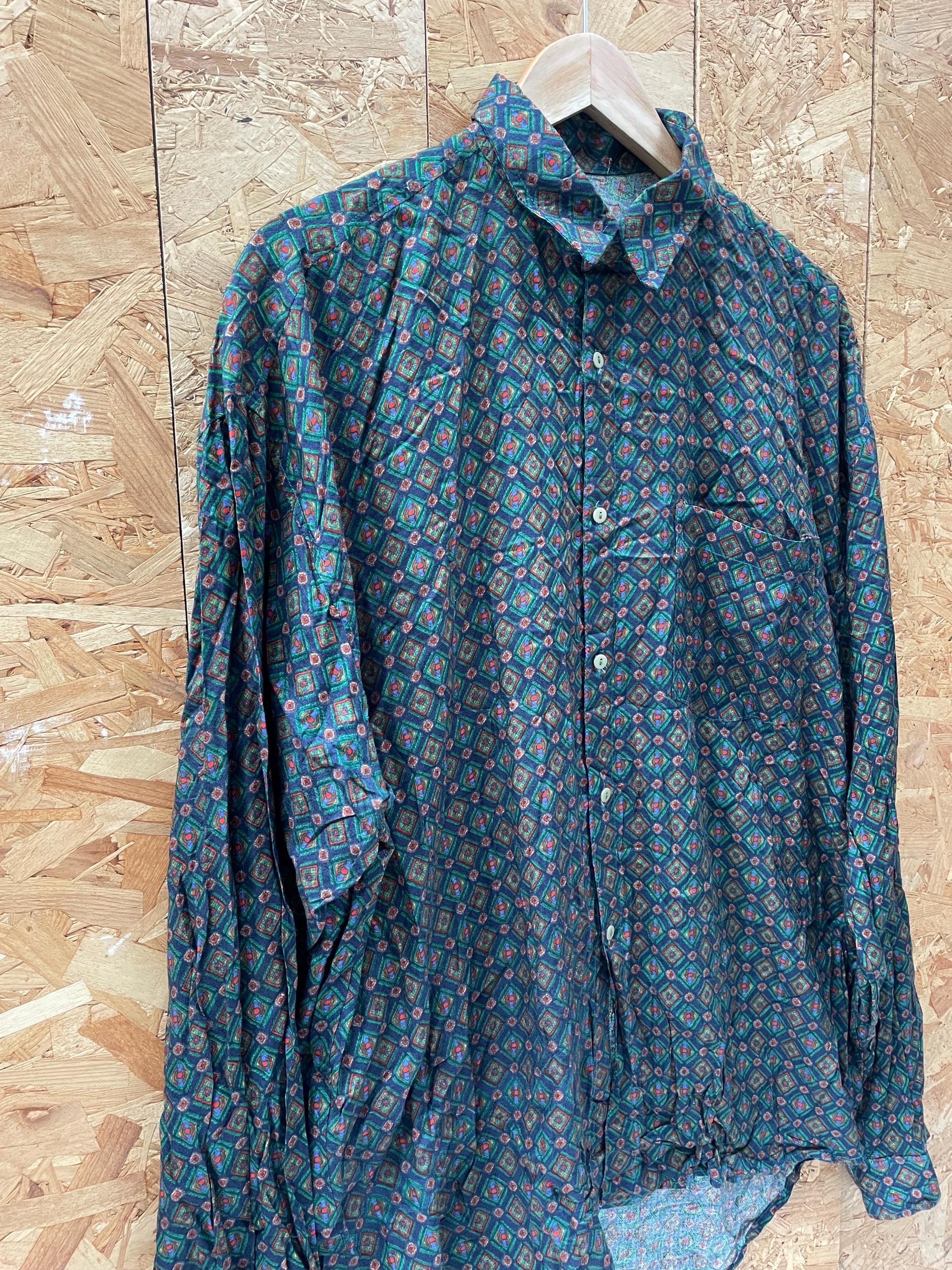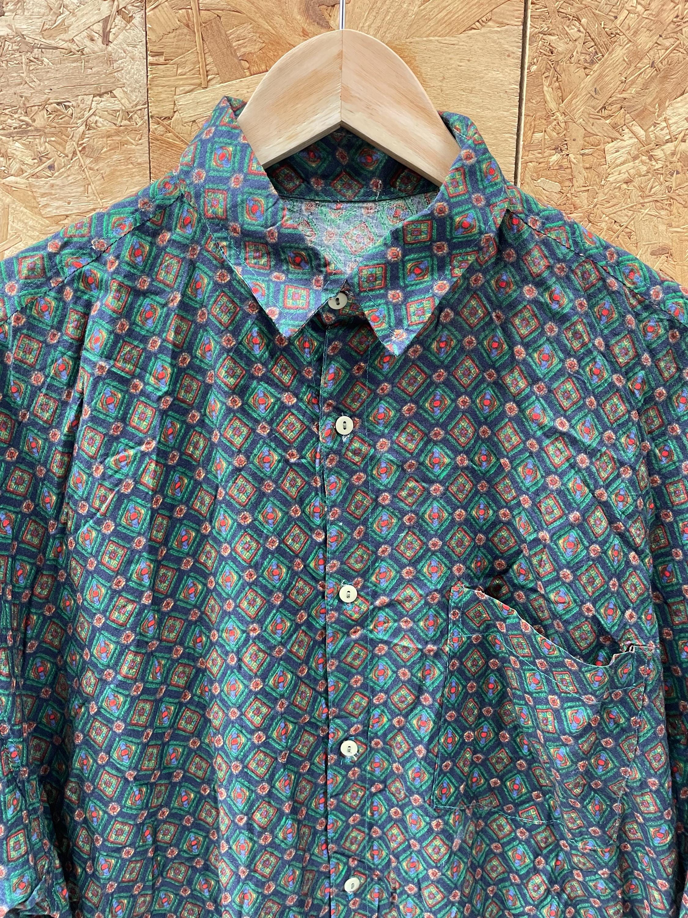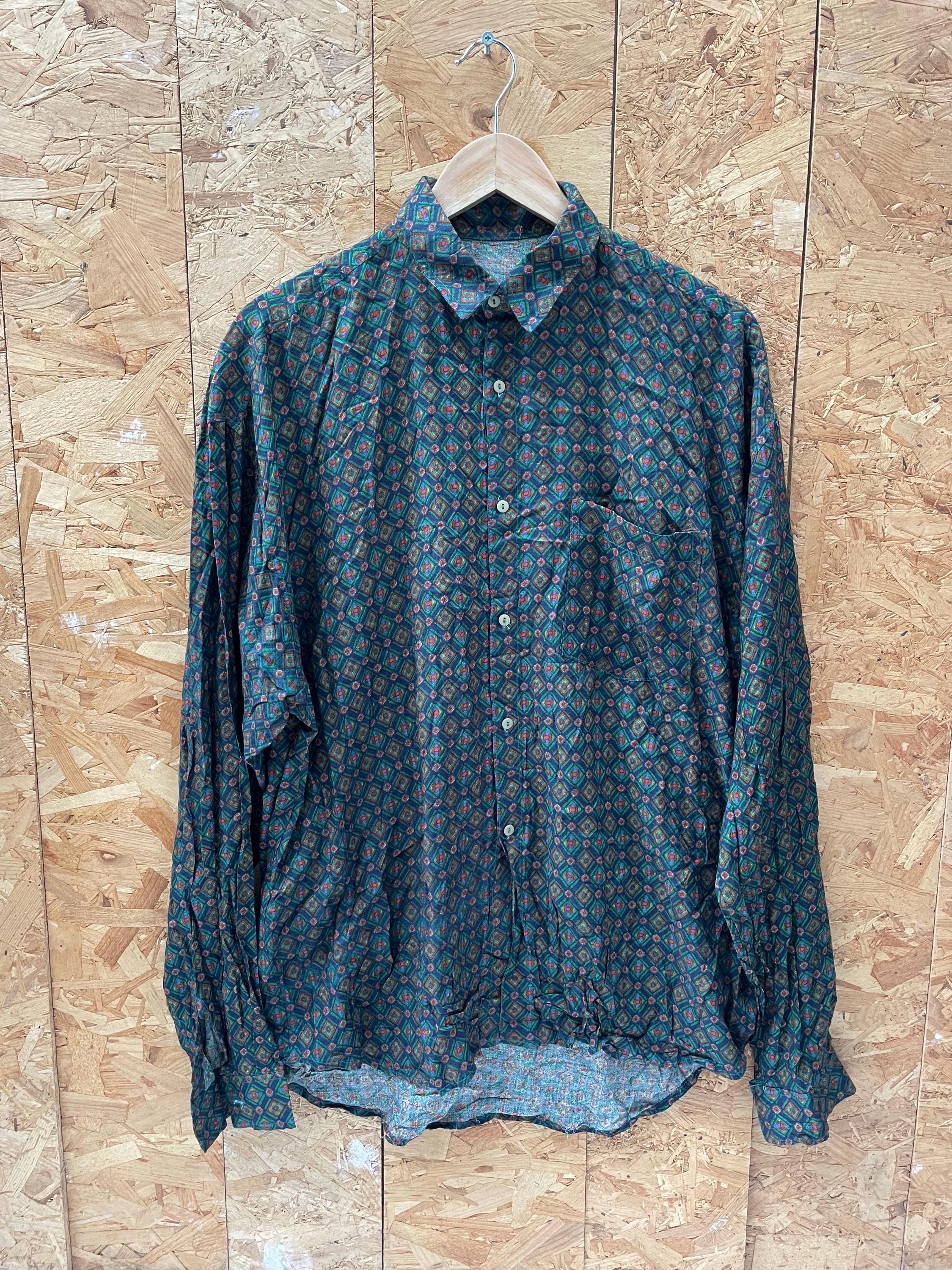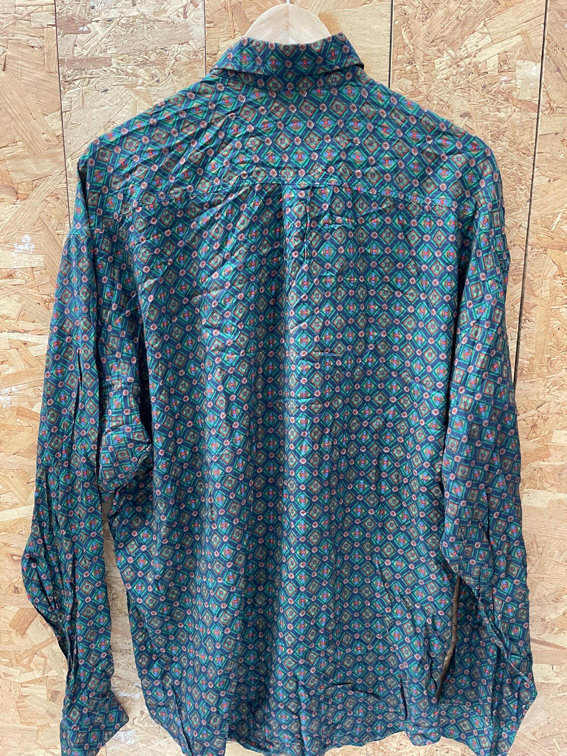 Vintage Y2K dark green red paisley monogram chequered pattern long sleeve 100% viscose shirt size XL