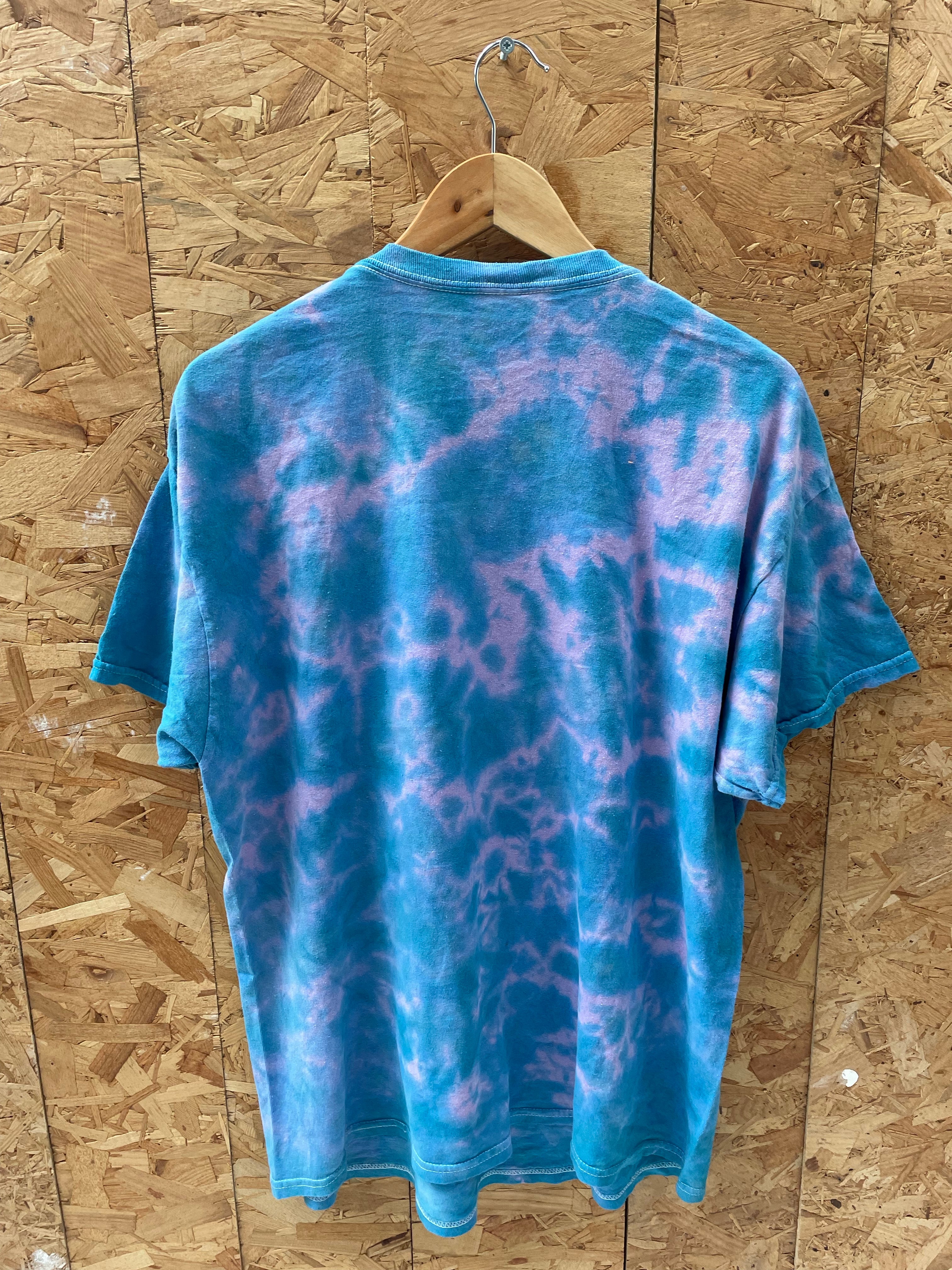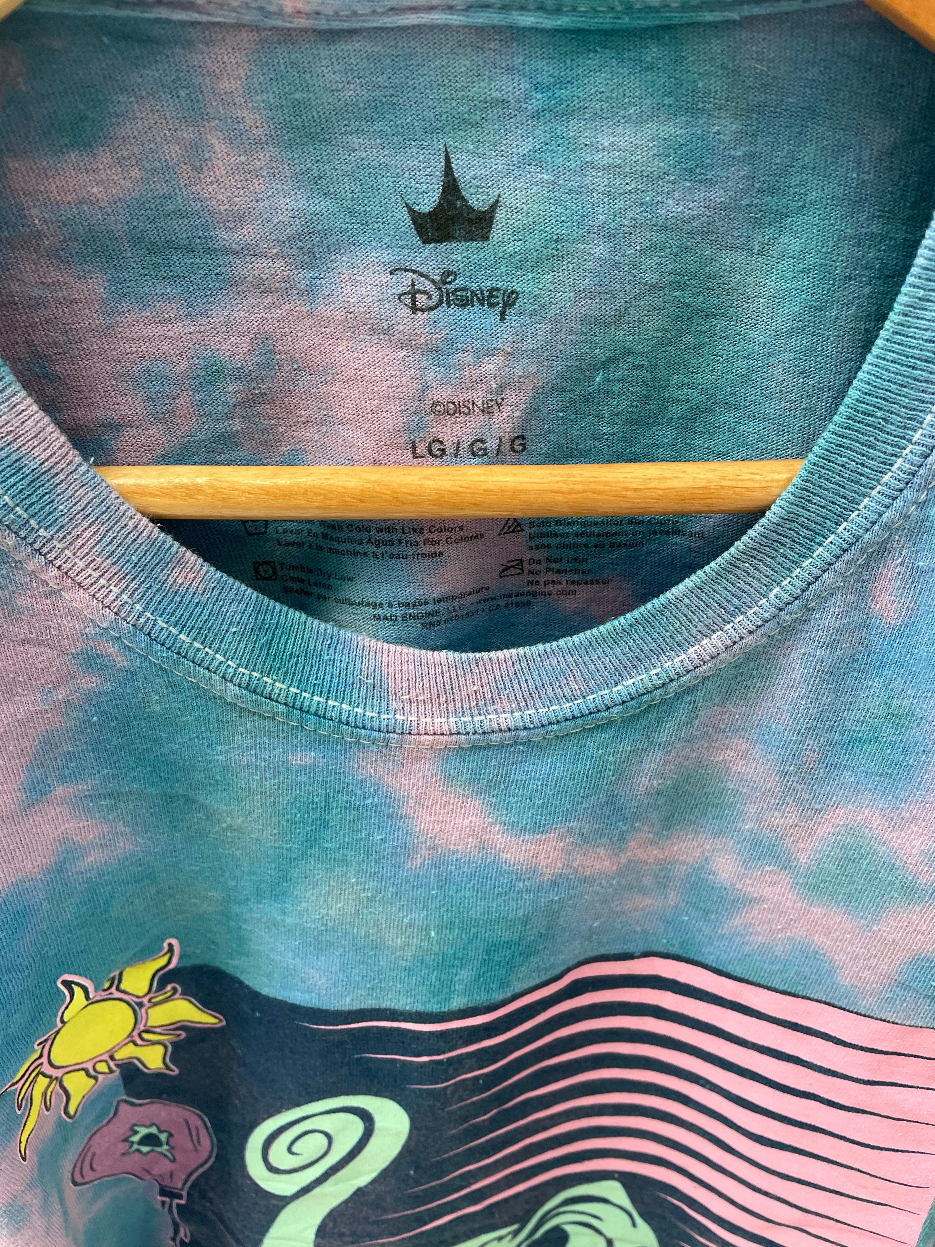 Disney Tangled Pascal tie-dye T-shirt. Features a graphic of Pascal the chameleon. Blue and pink tie-dye pattern. Great condition.