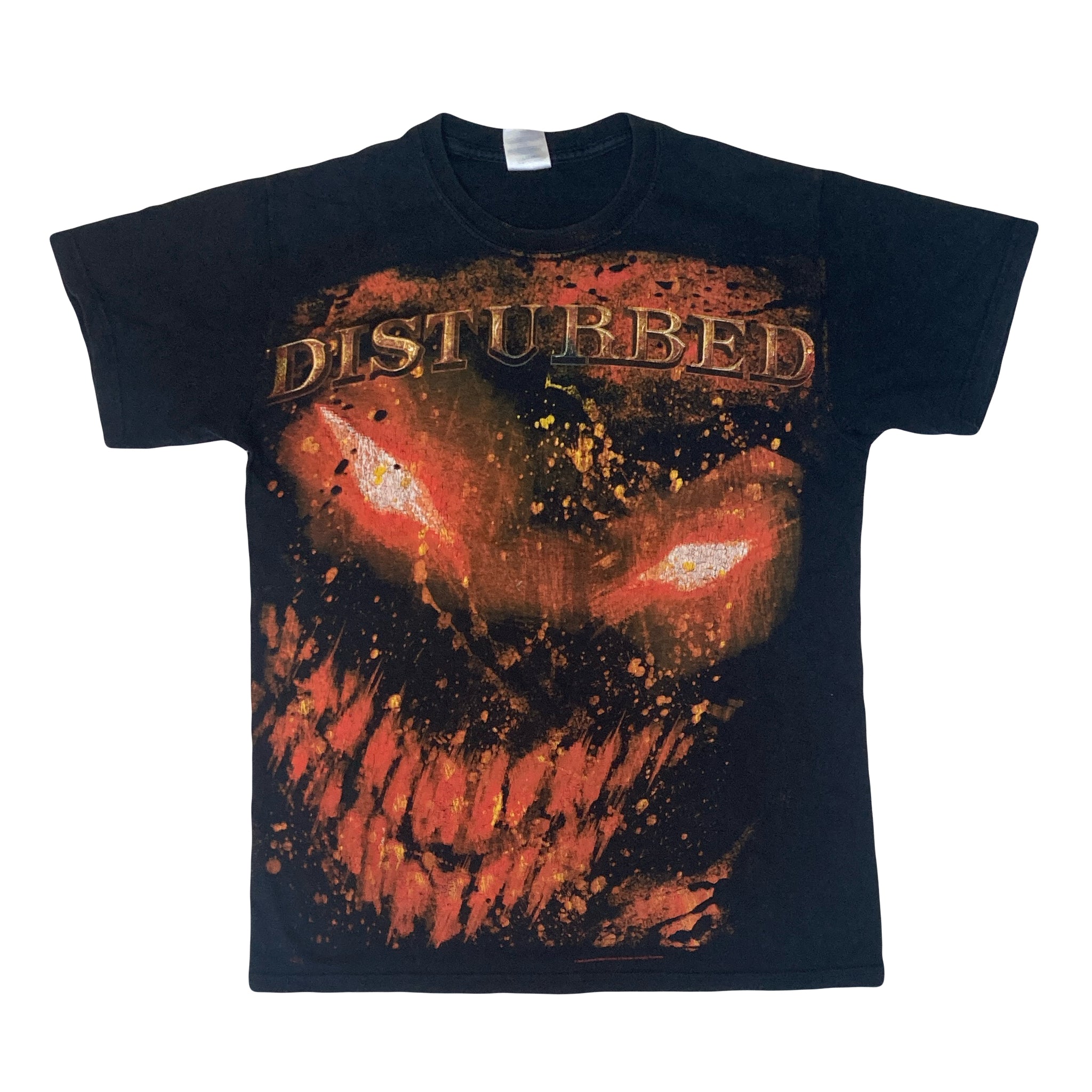 Vintage Y2K Disturbed large skull print rock metal band t-shirt size small by Gildan, fits oversized as a medium