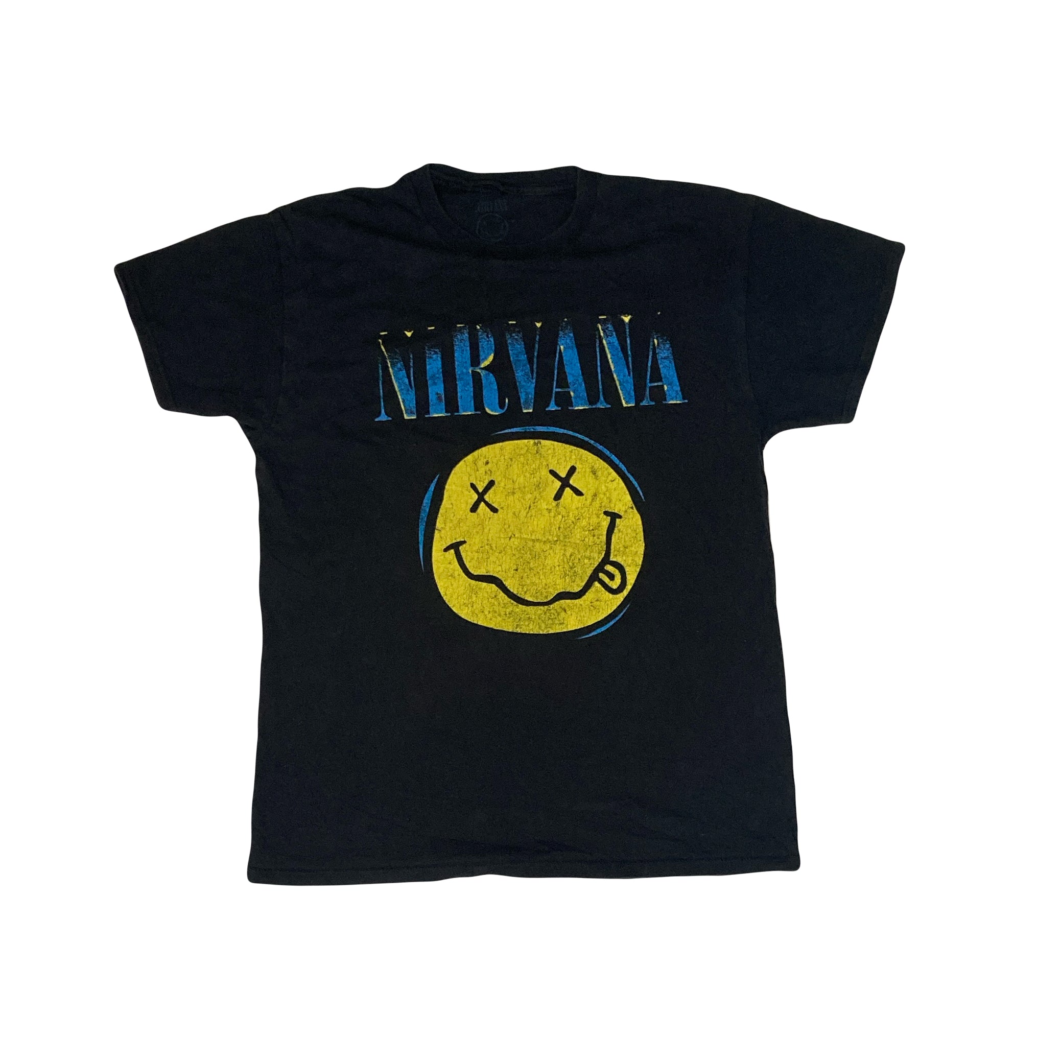 Vintage Y2K Nirvana smiley face black yellow band t-shirt size medium