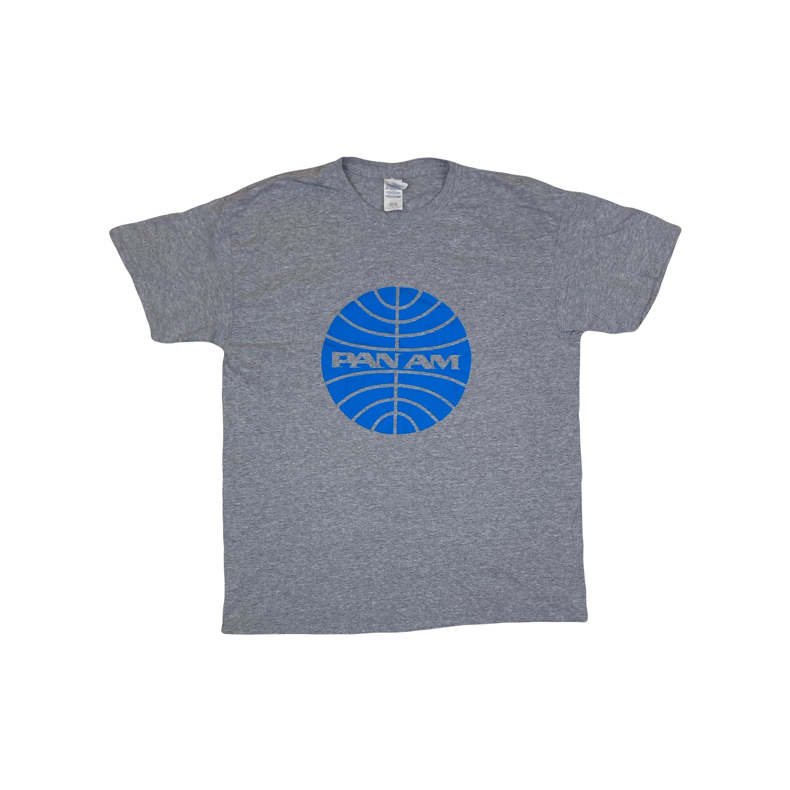 Vintage Y2K PanAm aviation aeroplane souvenir grey blue t-shirt size large