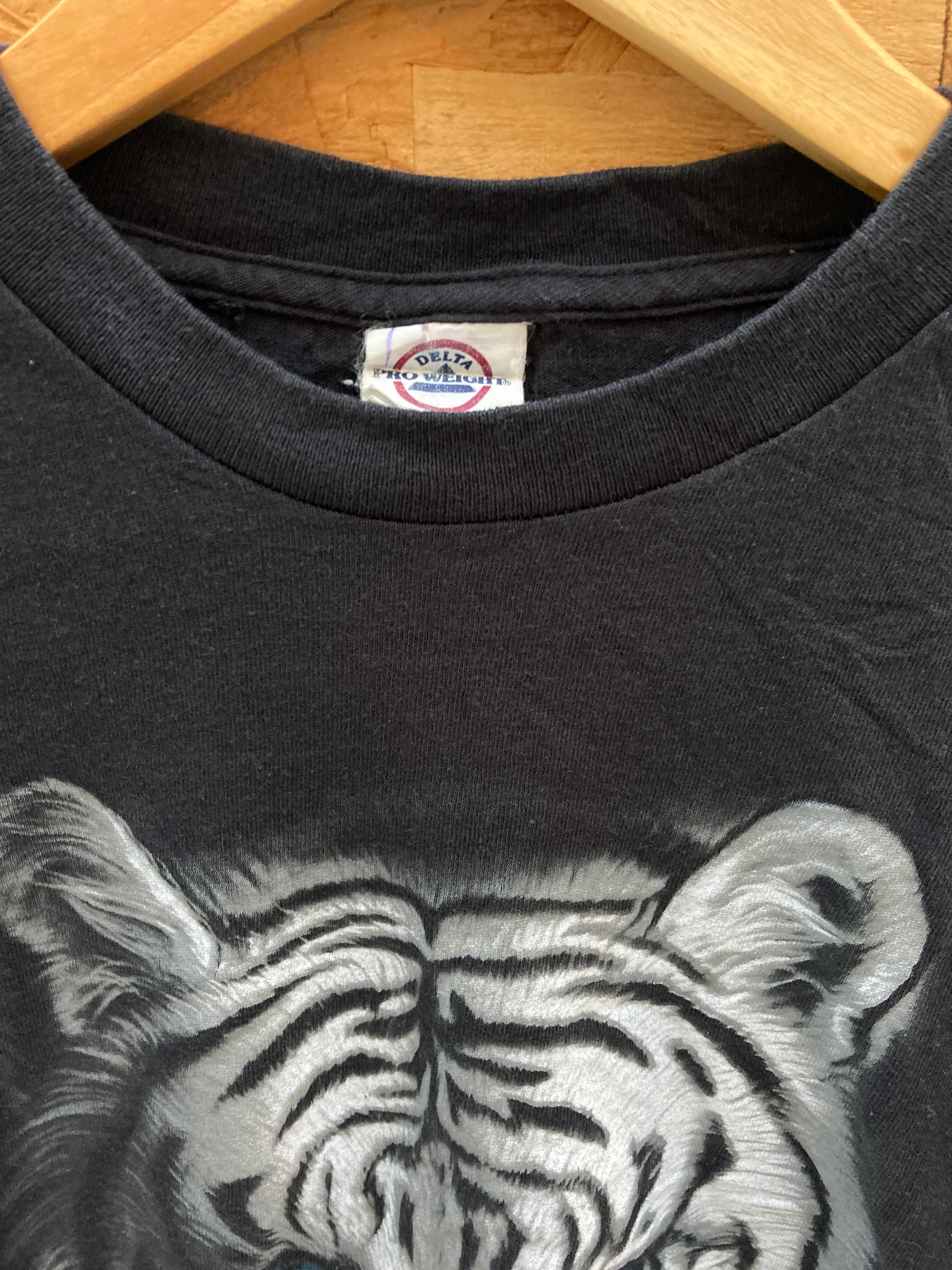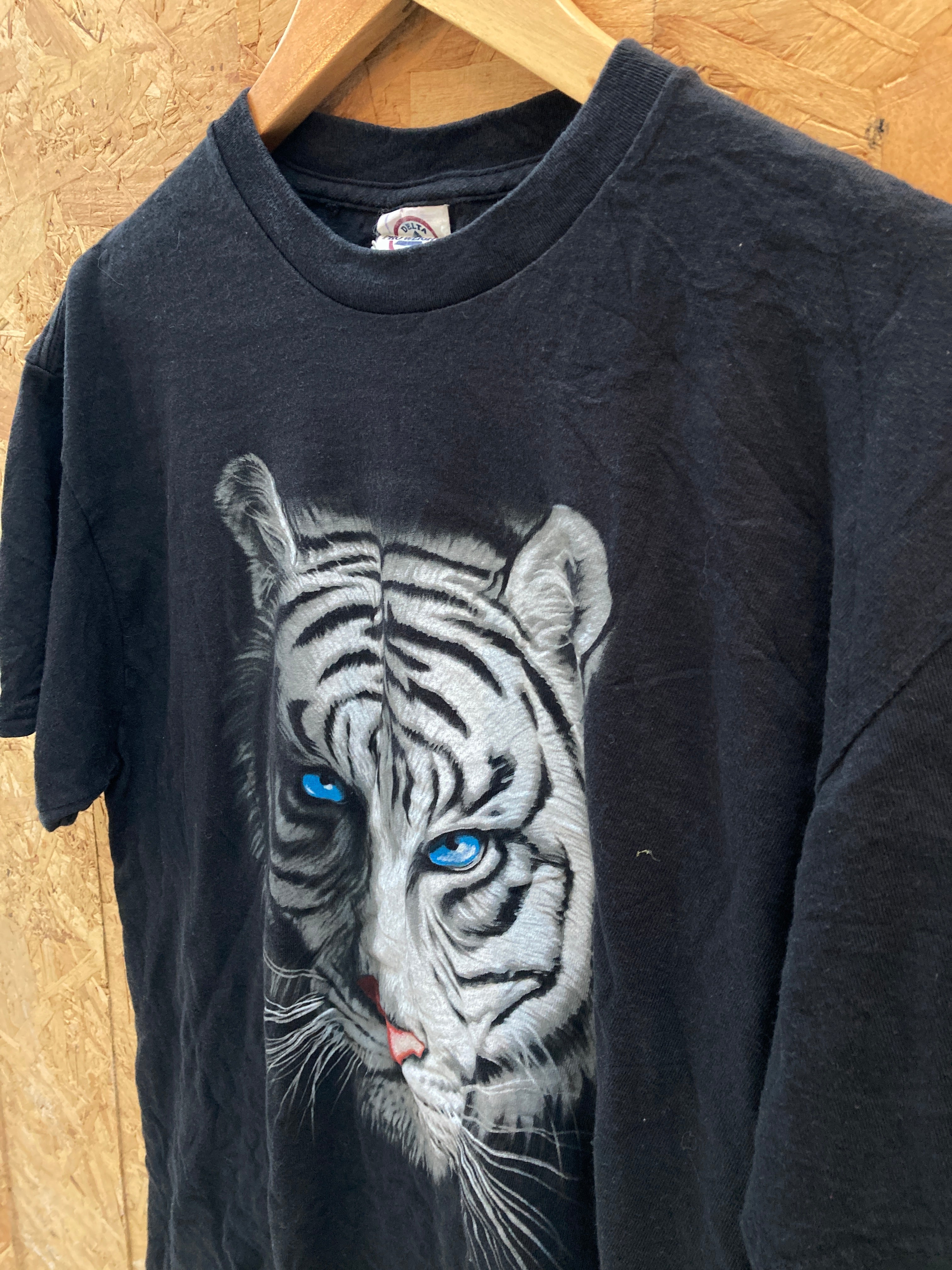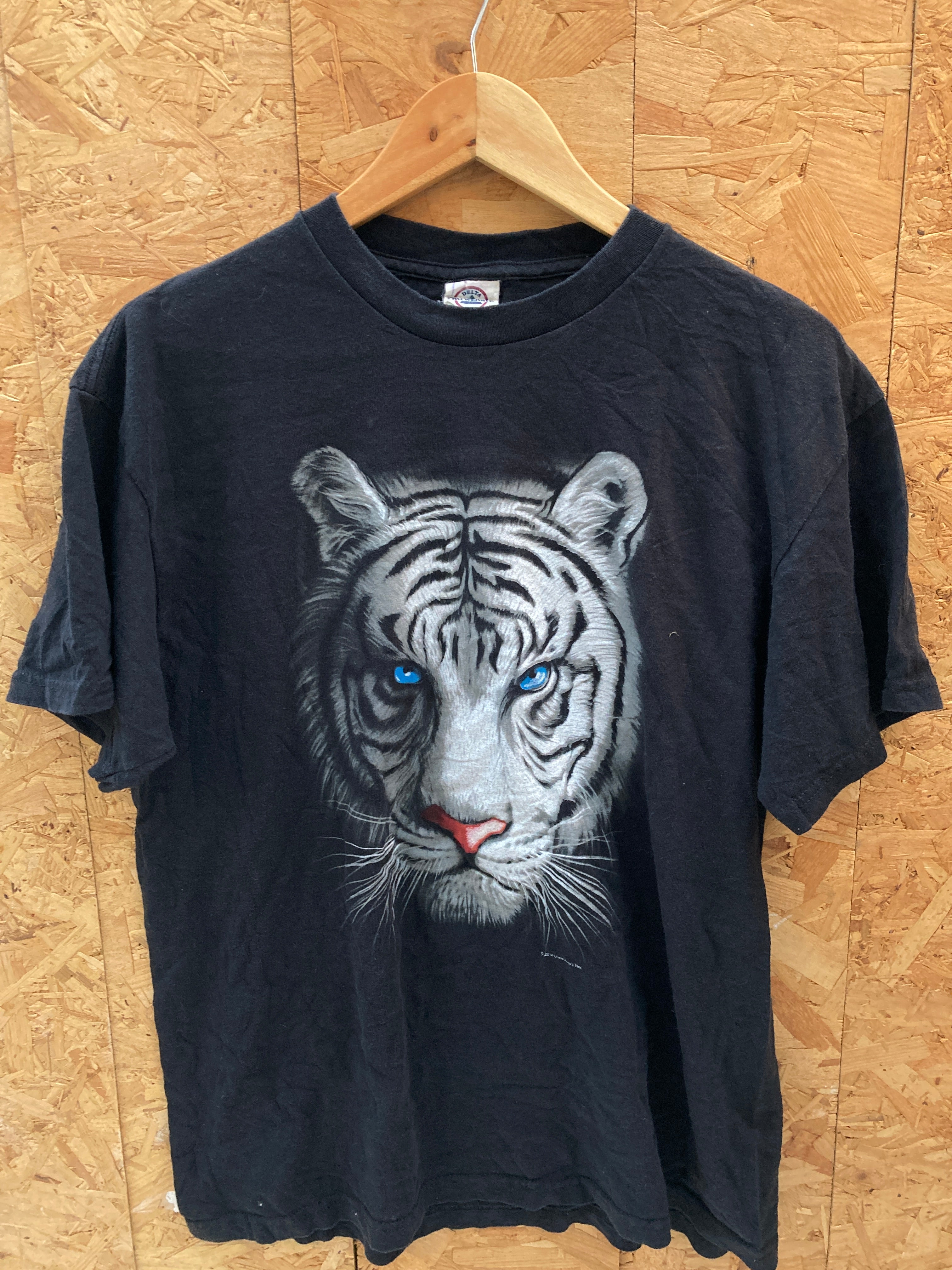 Vintage Y2K white tiger face animal print souvenir t-shirt size large by Delta